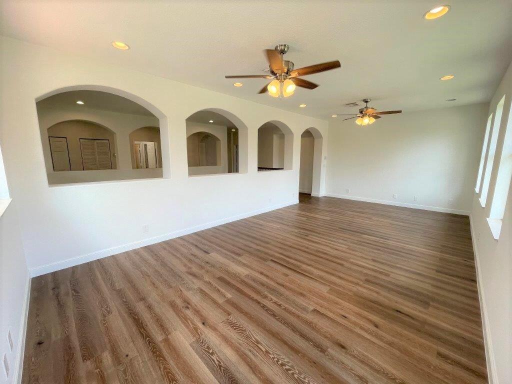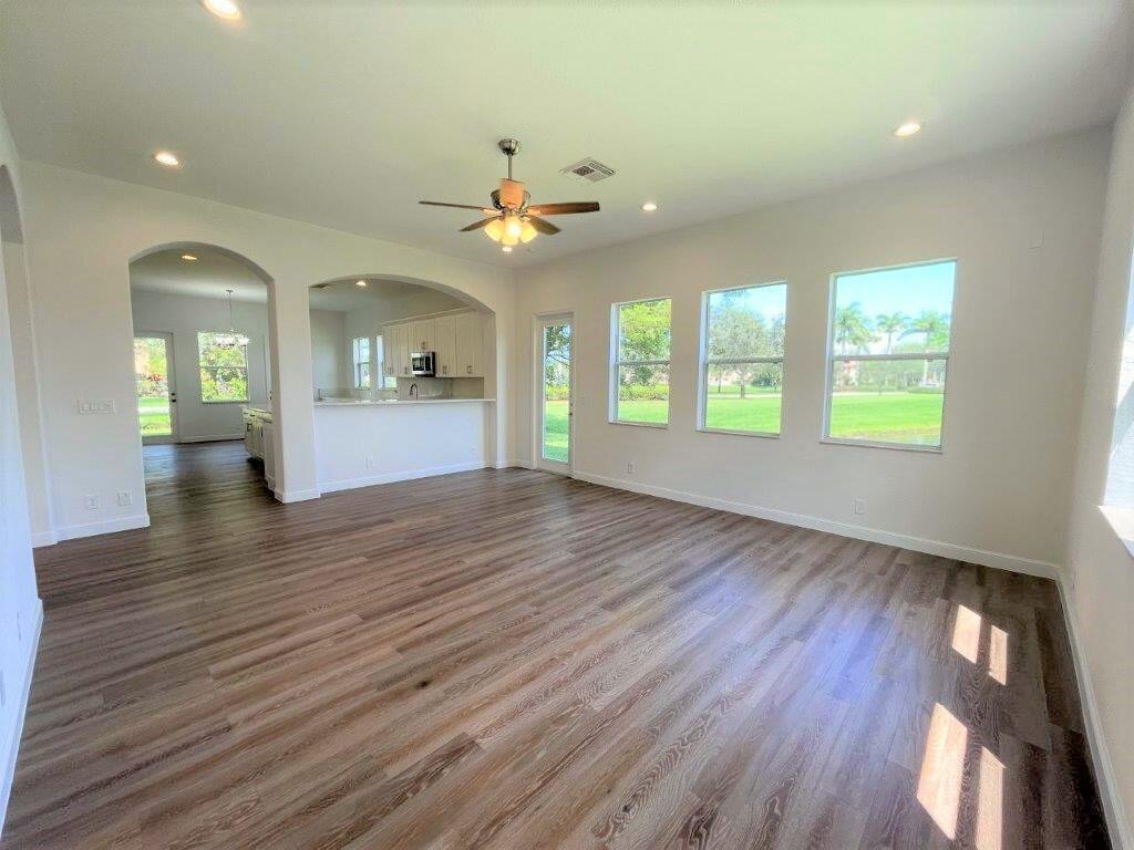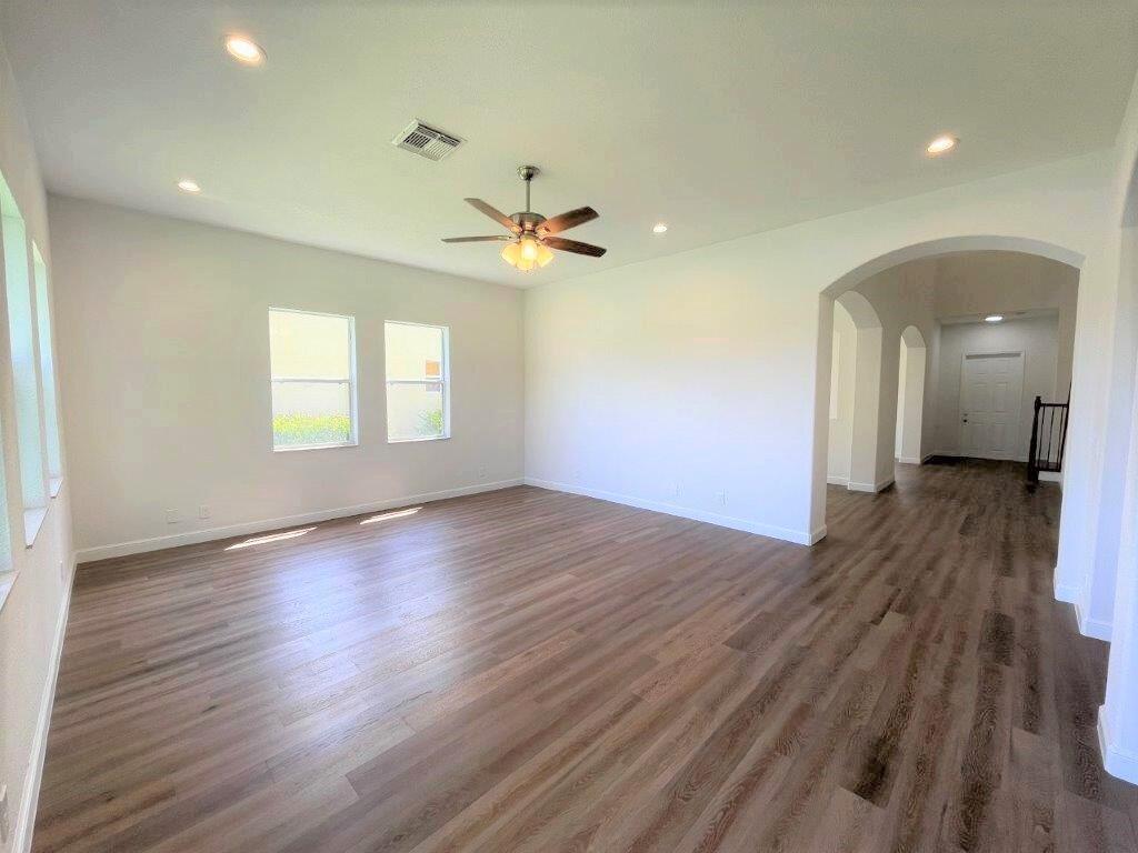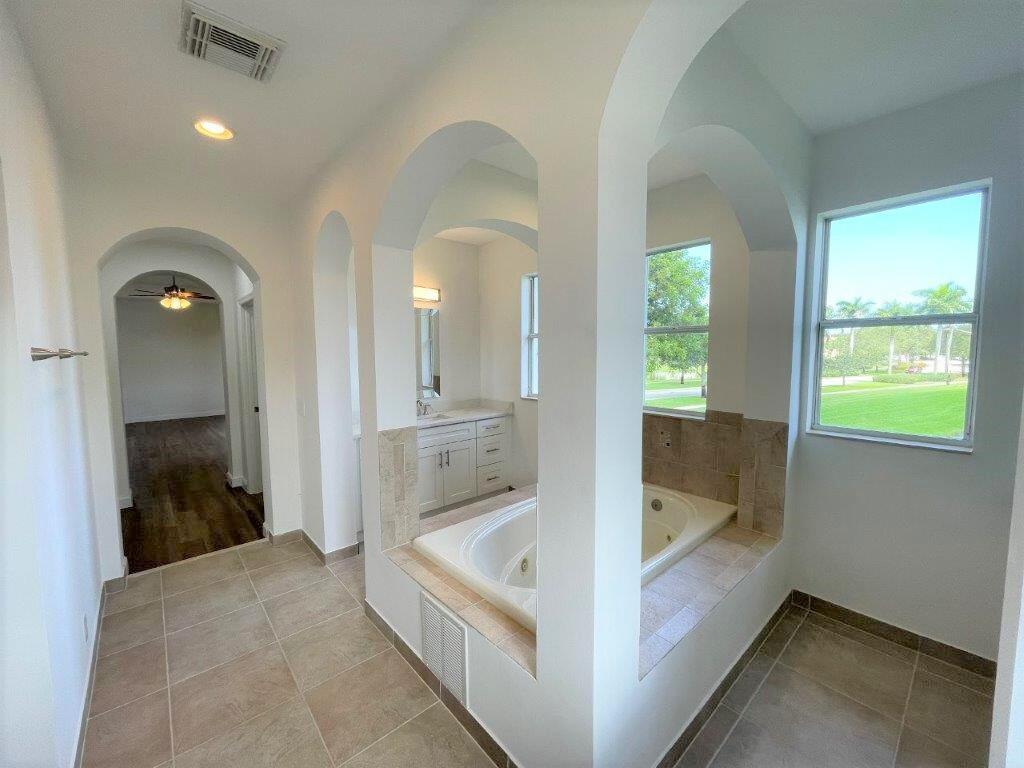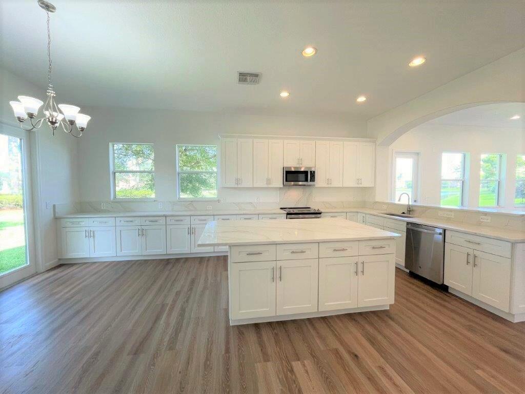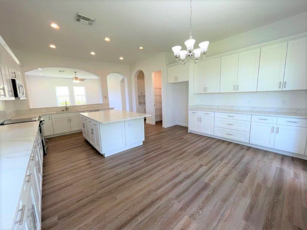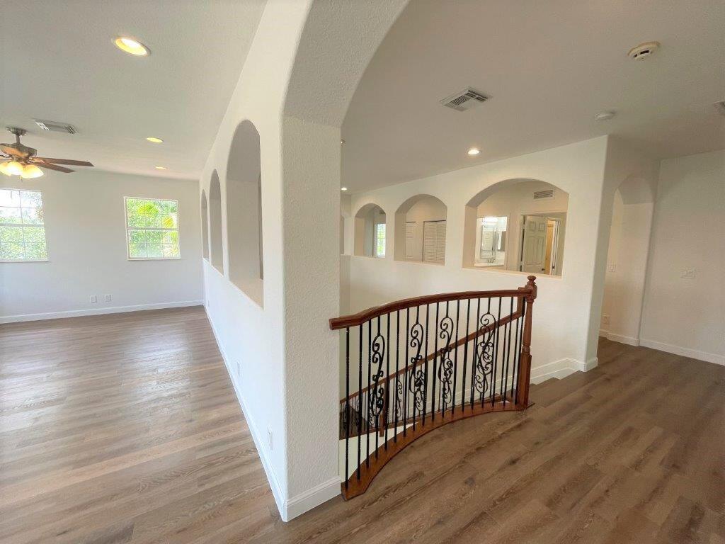 LARGEST MODEL, COMPLETELY RENOVATED. Stunning 5 Bedroom, 4.5 Baths, 3 Car Garage single family home nestled on a corner lot offering serene lake view. Located in the gated community of Terracina, this majestic home features new hardwood floors throughout all living areas, upstairs main bedroom, and great room. New carpet in downstairs ensuite bedroom and all upstairs secondary bedrooms. The kitchen boasts new 42'' white shaker cabinets, gorgeous quartz countertops and SS range, microwave, and dishwasher. New sink, faucet. Center island, and Butler's pantry. New fixtures throughout. All baths have new white shaker cabinetry, quartz countertops, sinks and faucets. The floor plan includes a formal living room, formal dining room and large great room upstairs.