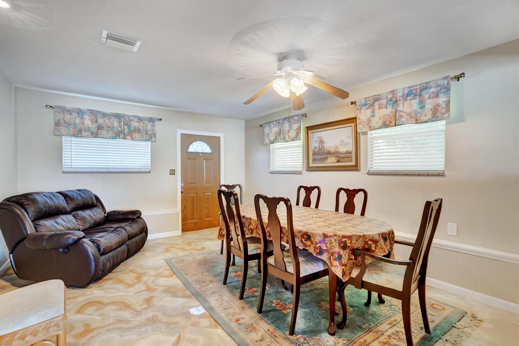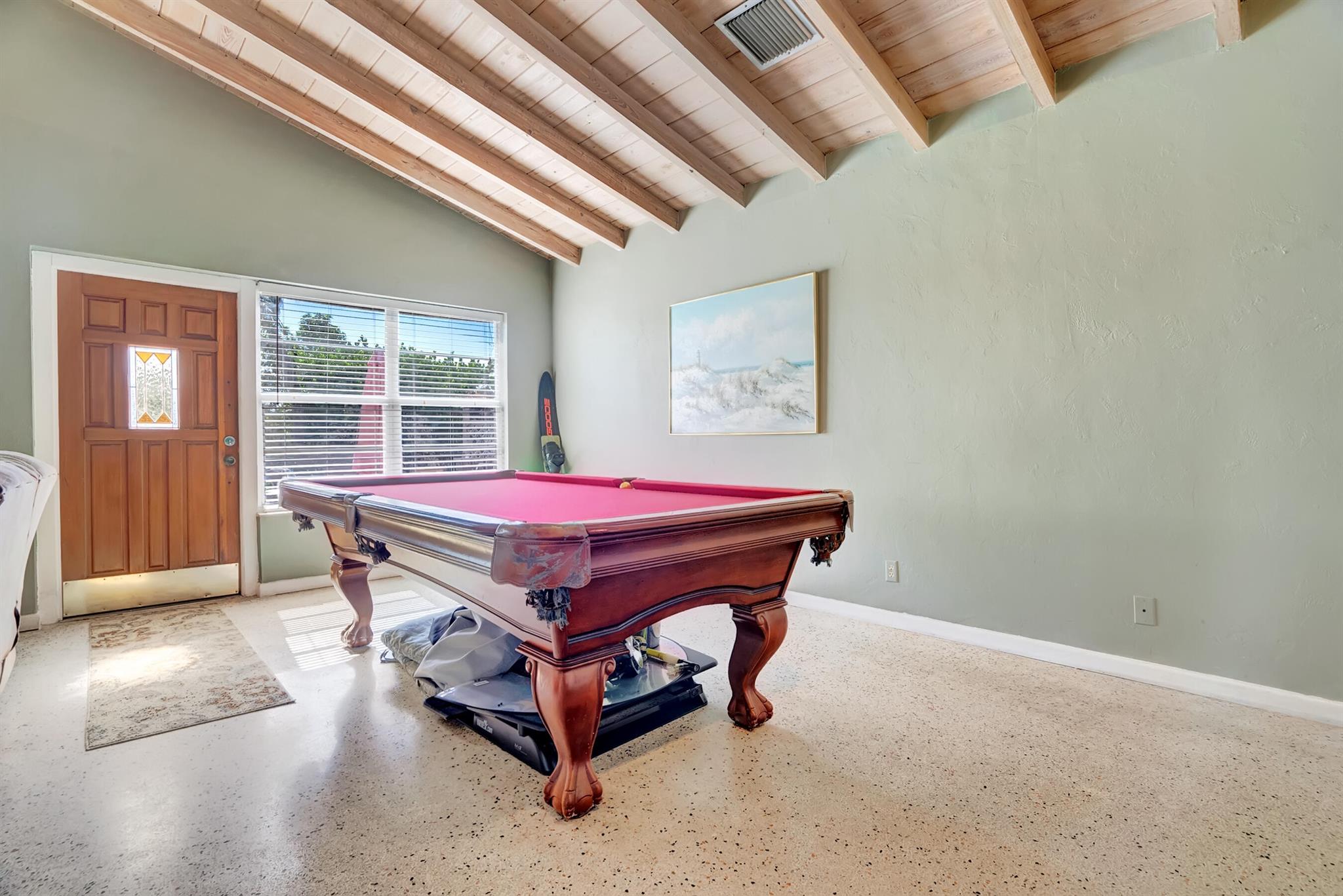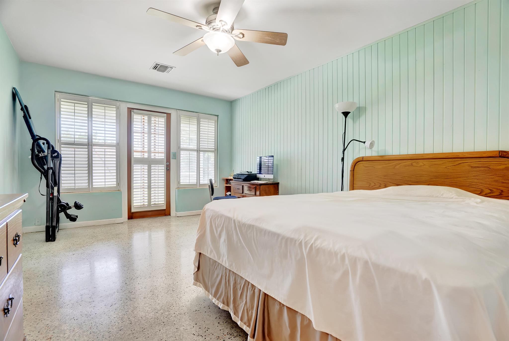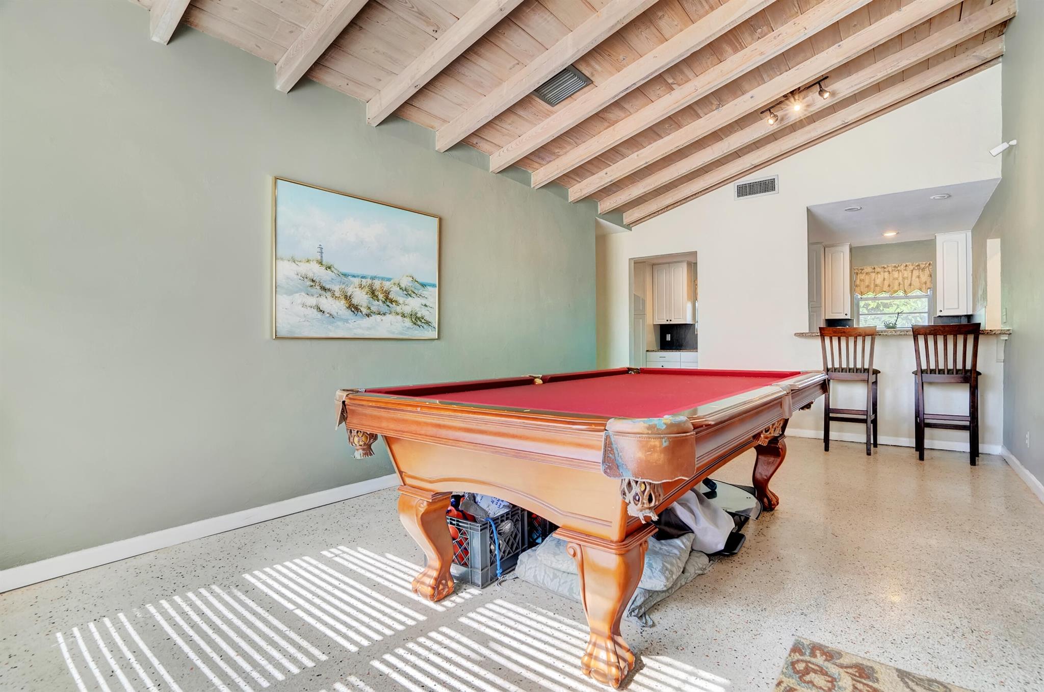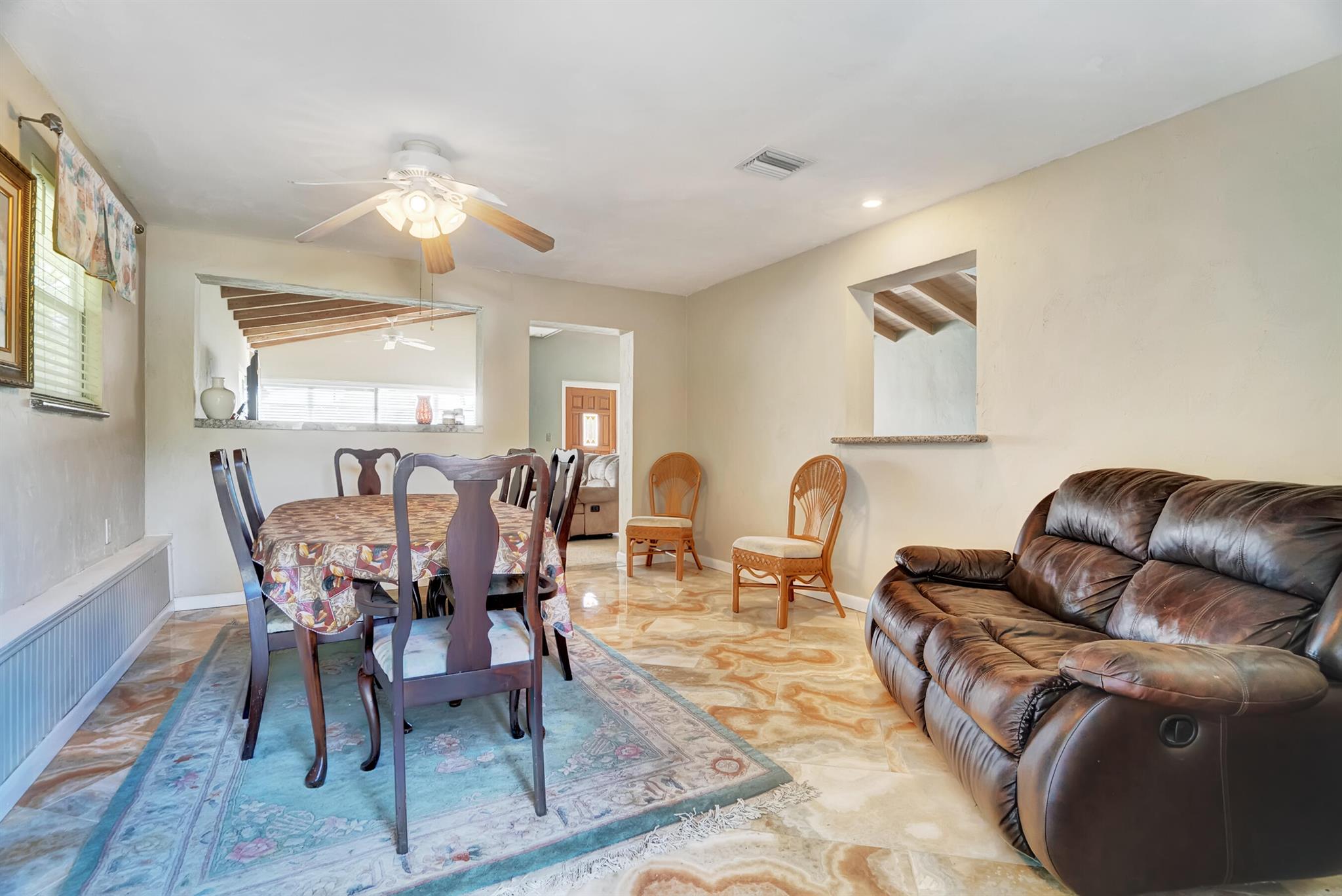 Boaters dream home. Rare waterfront property on NAVIGABLE canal with access to Clear Lake; Lake Osborne, Lake Ida and canal systems throughout Palm Beach. Open bright and spacious 3 bedroom 2 bath home. Updated kitchen with granite counter tops. Beautiful terrazzo flooring throughout living space with volume ceilings. Large exposed ceiling beams add character to this modernized home. 3 large bedrooms. Massive open living space for entertaining with walk-out to large deck with hot tub and barbeque station. A large fenced yard leads to custom dock on wide canal. Recent complete exterior painting. Oversized 2 car garage - room for boat. This home is centrally located with easy access to schools; shopping; beaches and highways. All of this in a lovely neighborhood with NO HOA