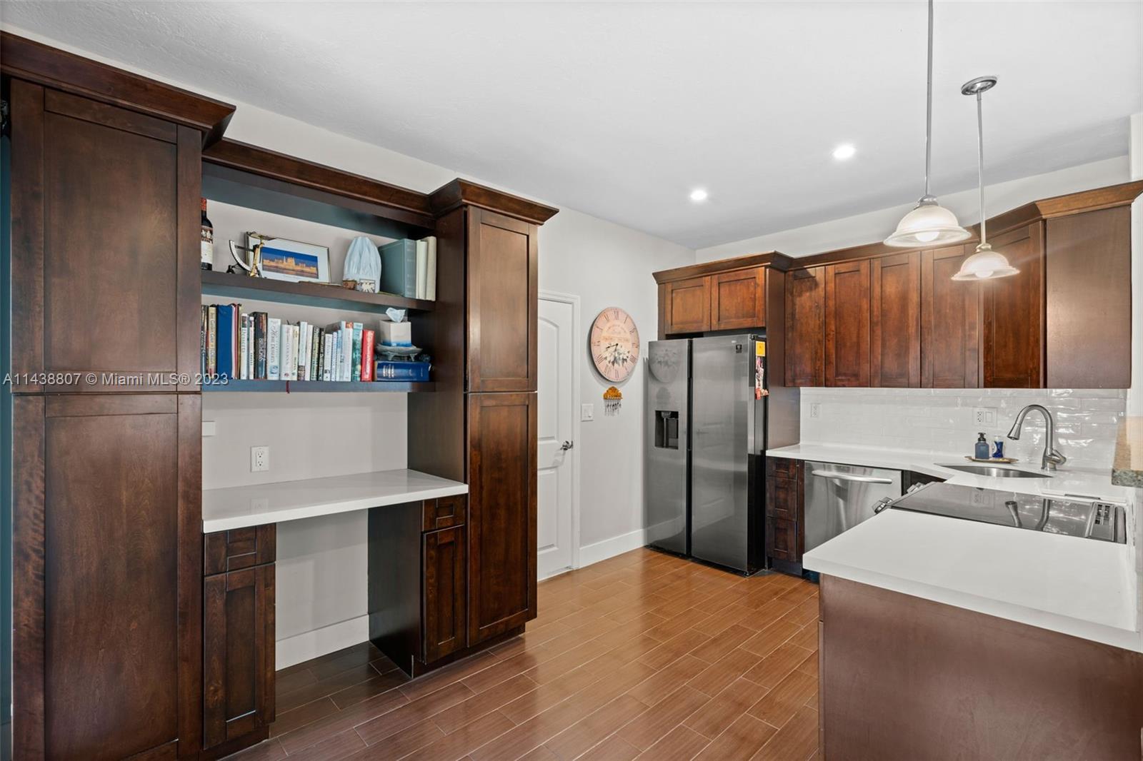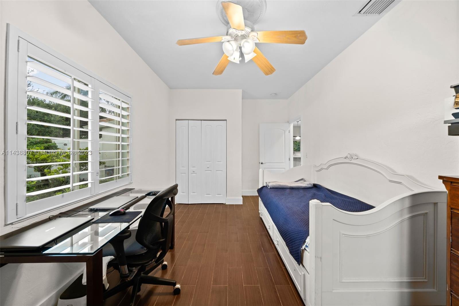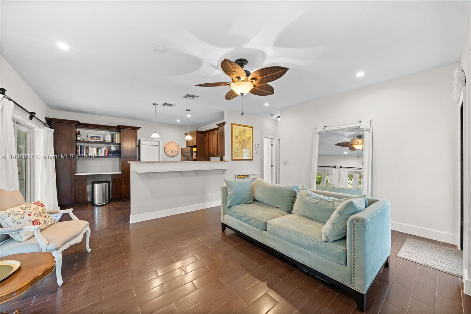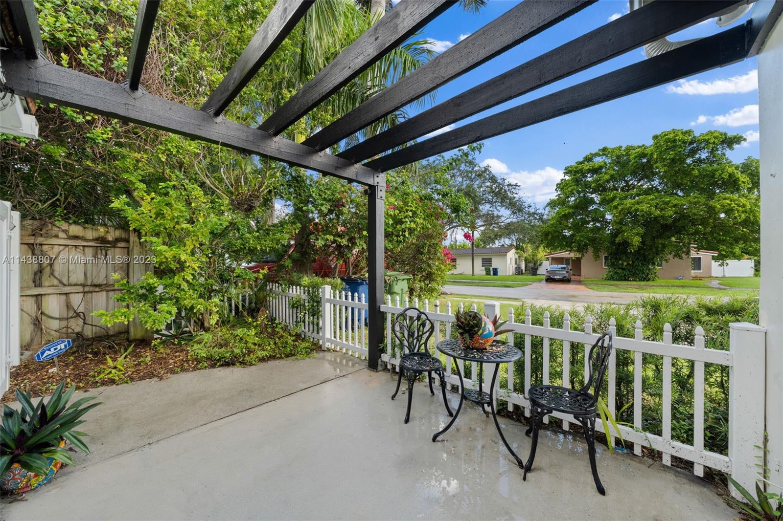 1,389 sq foot, 3-bedroom, 2-bath corner home in NE Hallandale Beach. well-maintained home with a circular driveway, a barrel tile roof, and beautiful landscaping. Once you enter this home, you will notice all the natural light through the plantation shutters and two French doors open to a covered porch overlooking the backyard with a she-shed. The primary bedroom has a full bathroom and a patio with French doors overlooking the front yard. The home is a split-bedroom floorplan with an open kitchen to the living and dining area. Other improvements are the exterior freshly painted in 2022, a new PVC fence, and beautiful landscaping. The she-shed has A/C, lighting, and two lofts, permitted on a concrete slab. Easy to show; appointment required. Attachments are included on the MLS.