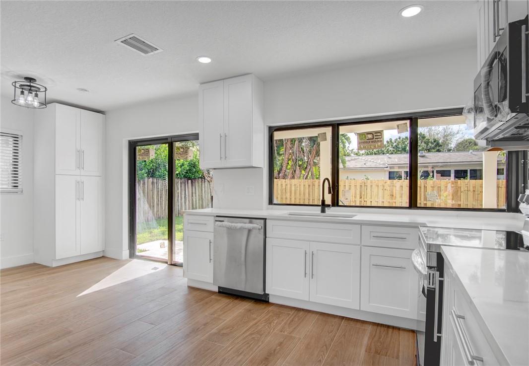 Welcome Home To This AMAZING 3 Bed, 2 Bath Single Family Pool Home in the Heart of East Boca! Upon entering, you'll be greeted by the spacious & open living area w/"wood look" tile flooring thruout. The natural light streaming in from the large windows creates an inviting &airy ambiance. The living room seamlessly transitions into the dining area. The modern kitchen is a chef's delight, w quartz countertops, top-of-the-line SS appliances, &le cabinet space, it's both functional & stylish. One of the highlights of this property is the backyard paradise. Step outside onto the covered patio, where you can enjoy alfresco dining, lounging, or simply basking in the Florida sunshine. The patio overlooks the inviting pool & fully fenced extra large yard! 1 CG, Close to Boca Regional Hospital