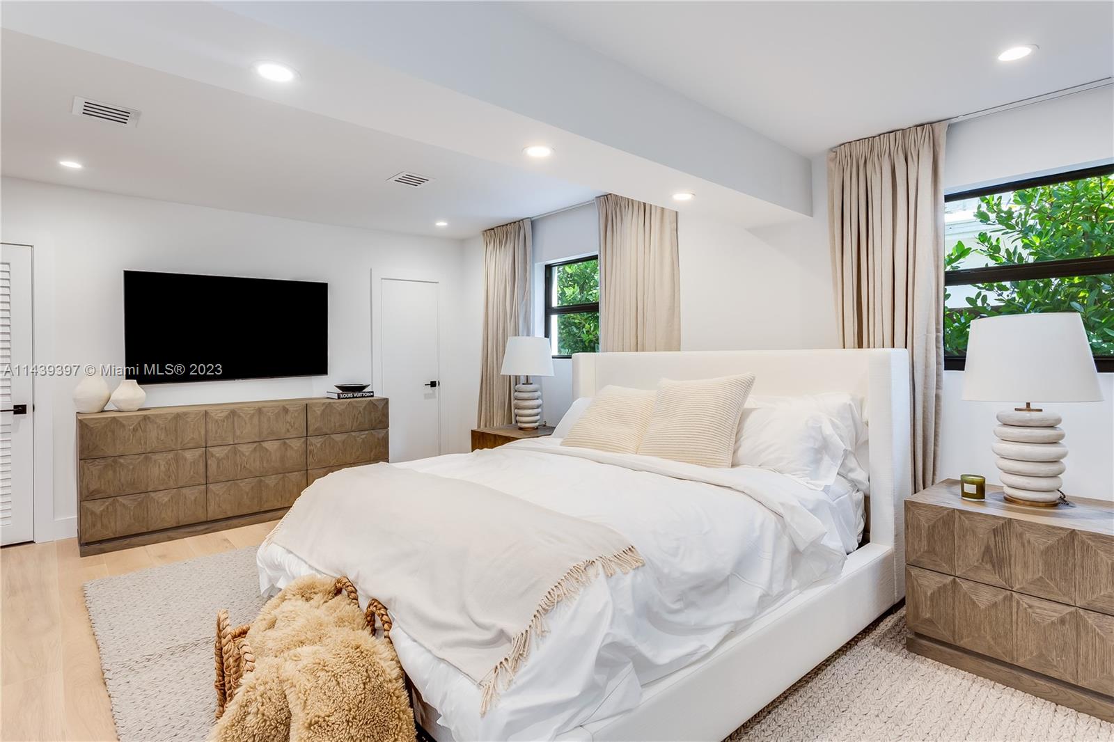 Located on the prestigious North Bay Rd this gated 4 bed/4.5 bath newly renovated turn key house will wow you with its overall attention to detail. Beautiful new light wood oak floors run throughout the entire home. All 4 spacious light filled bedrooms have full en-suite bathrooms and great closet space. The house also has two separate living areas perfect for Miami Beach entertaining and/or family use. The kitchen features all top of the line appliances, plenty of counter space and generous storage. Outside you will find a beautiful oversized pool, large turfed backyard, full summer kitchen all surrounded by fully matured landscaping with all new landscape lighting. This is the North Bay Rd house you've been looking for to call home.