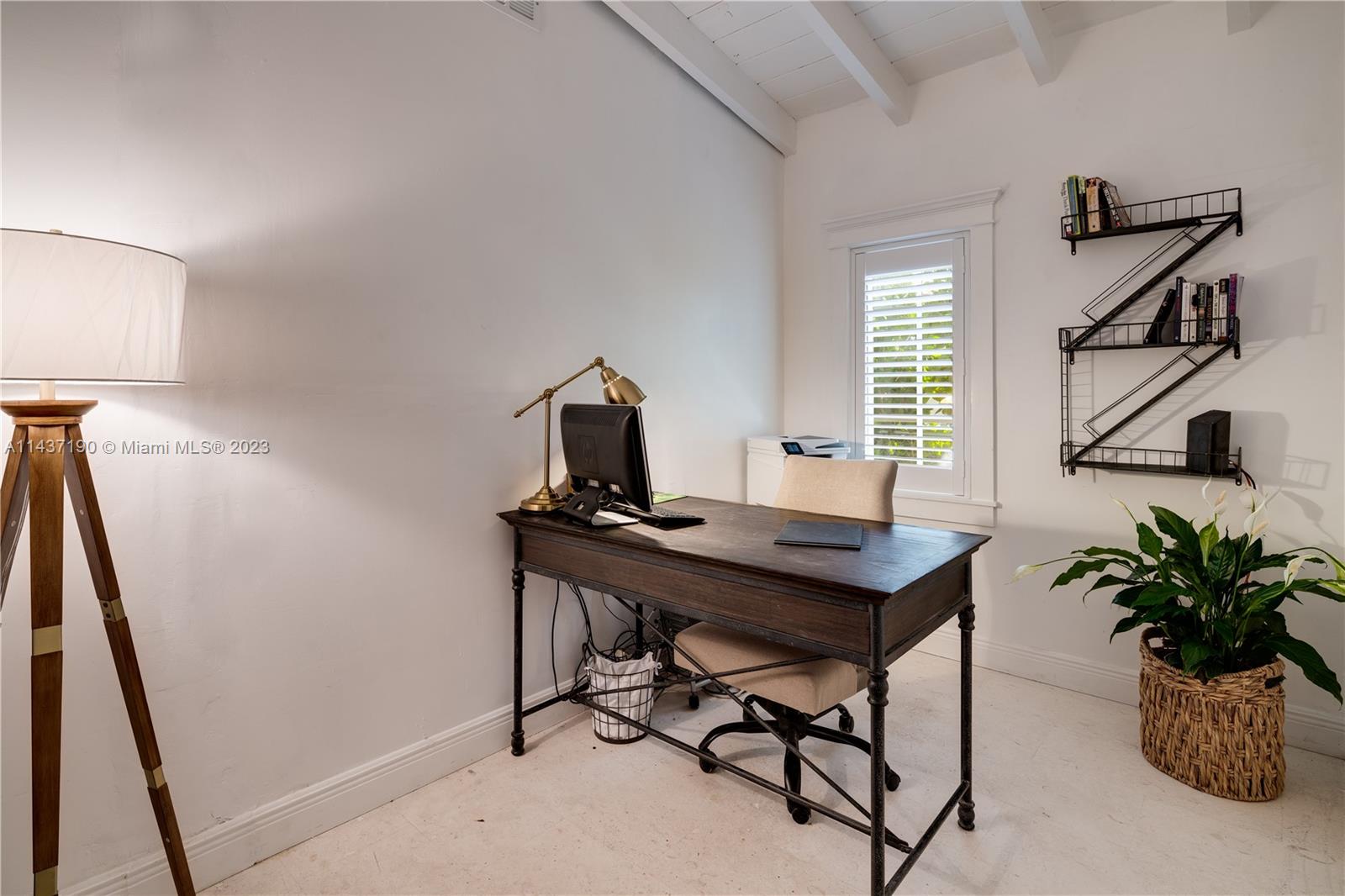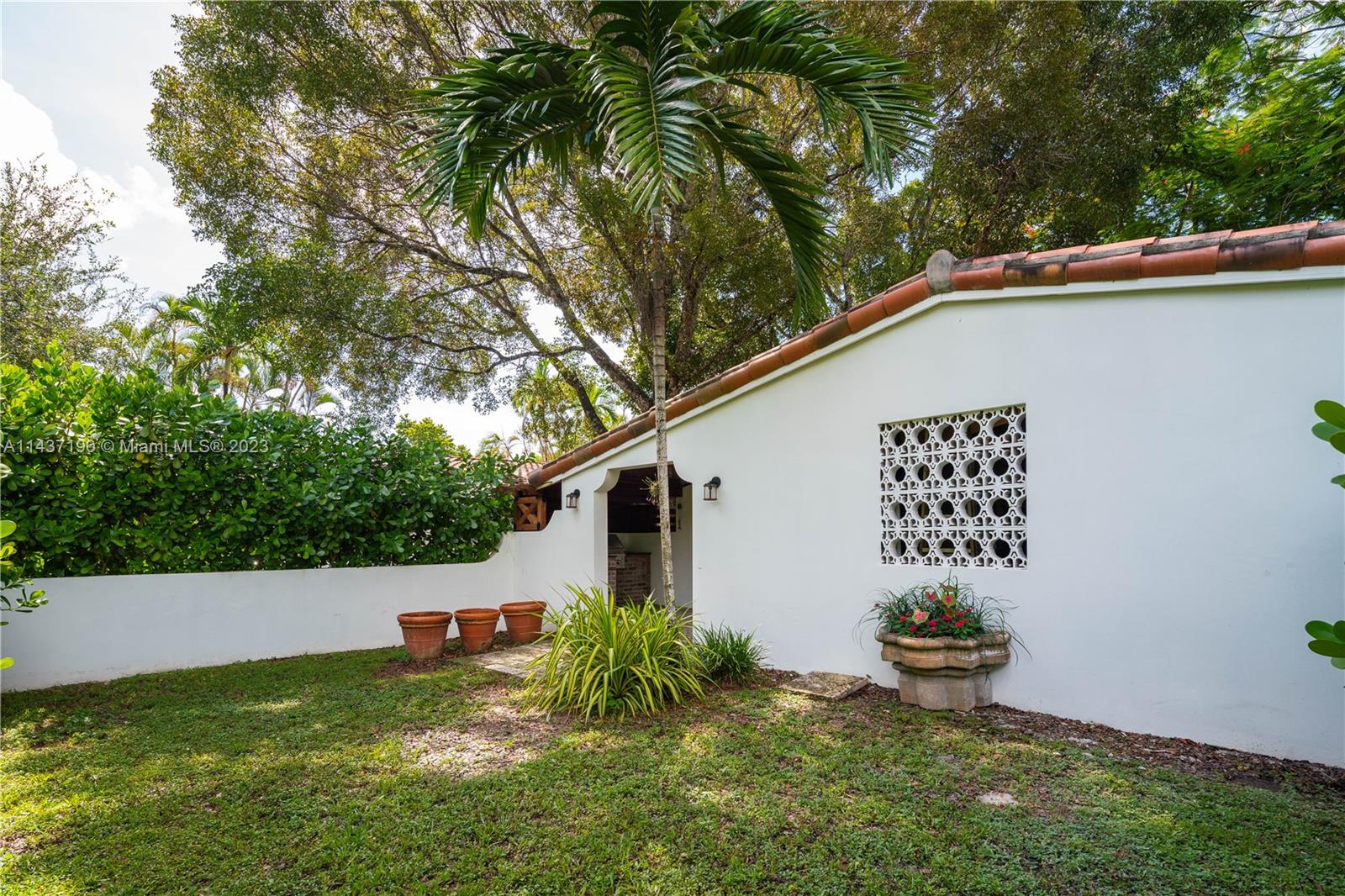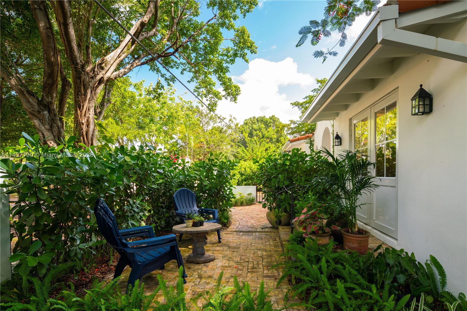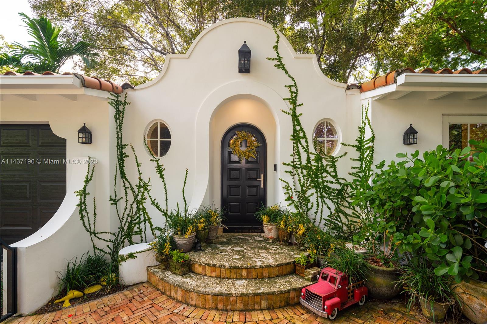 An enchanting fairytale home awaits its new chapter with a new homeowner. The allure of the corner courtyard entrance, moves you to peek inside & enjoy all the charm. From the limestone floors below, to the eye-catching exposed wood ceiling above, to the arched details, you are captivated. Fully remodeled, with PVC plumbing, impact doors & windows, updated electrical, beautiful kitchen, and spa-like bathrooms—all waiting for you to move right in! There are 2 spacious bedrooms plus a home office, and a garage. Built in BBQ area in patio for gatherings. There is even room for a small pool in the private yard! Blocks from the Granada Golf course. Sq footage larger than tax roll per seller. A true, Very Special Home.