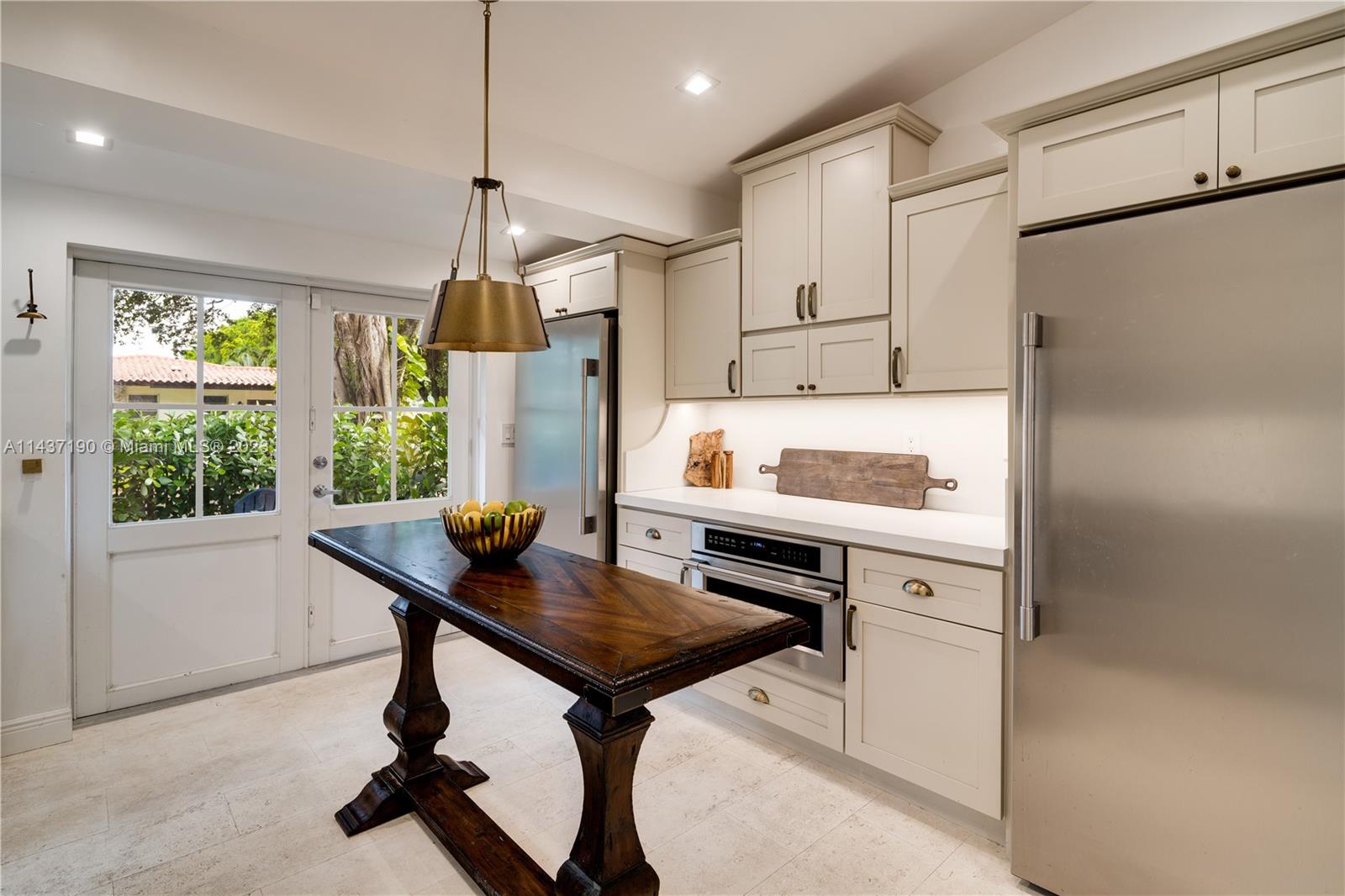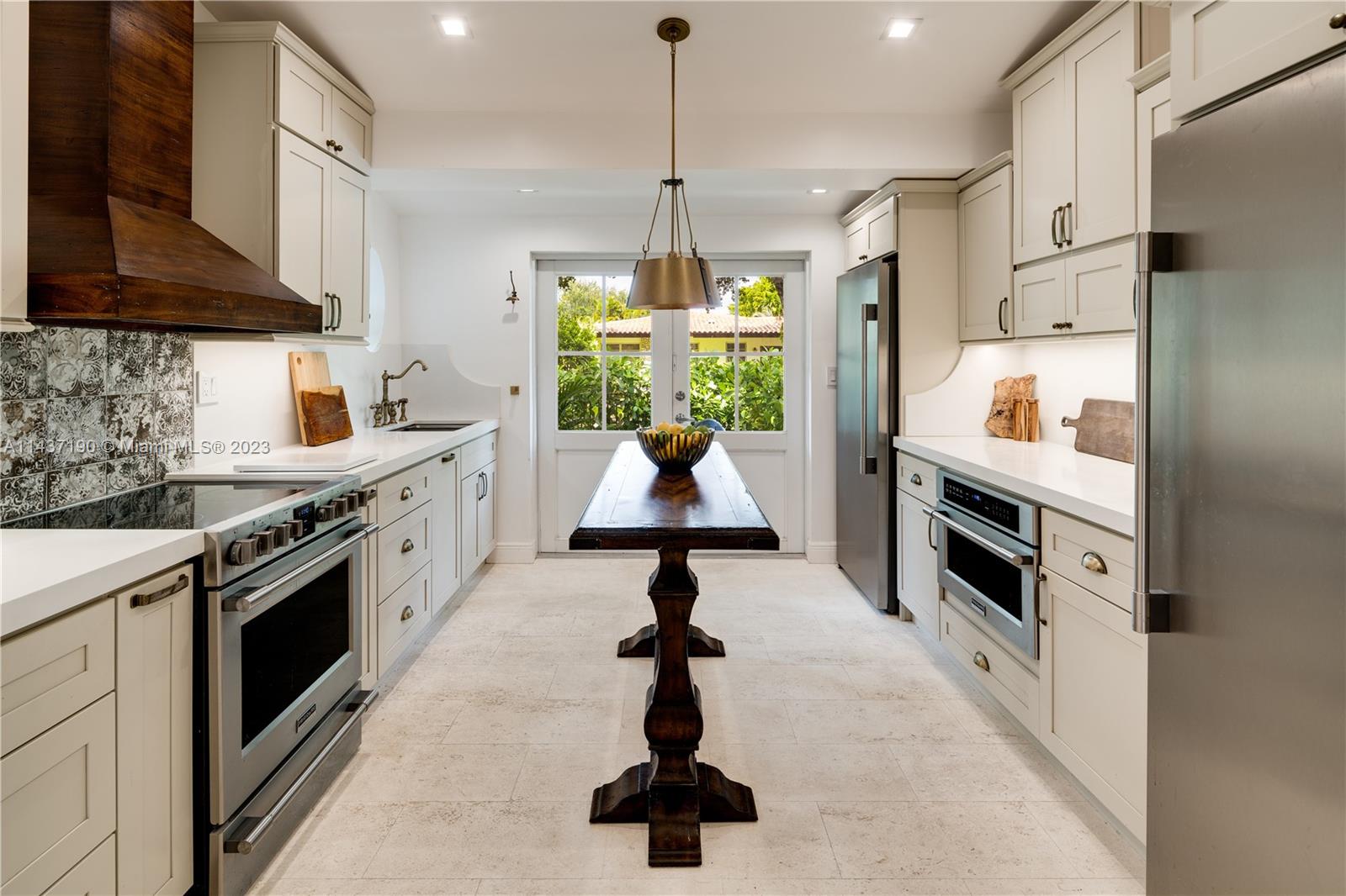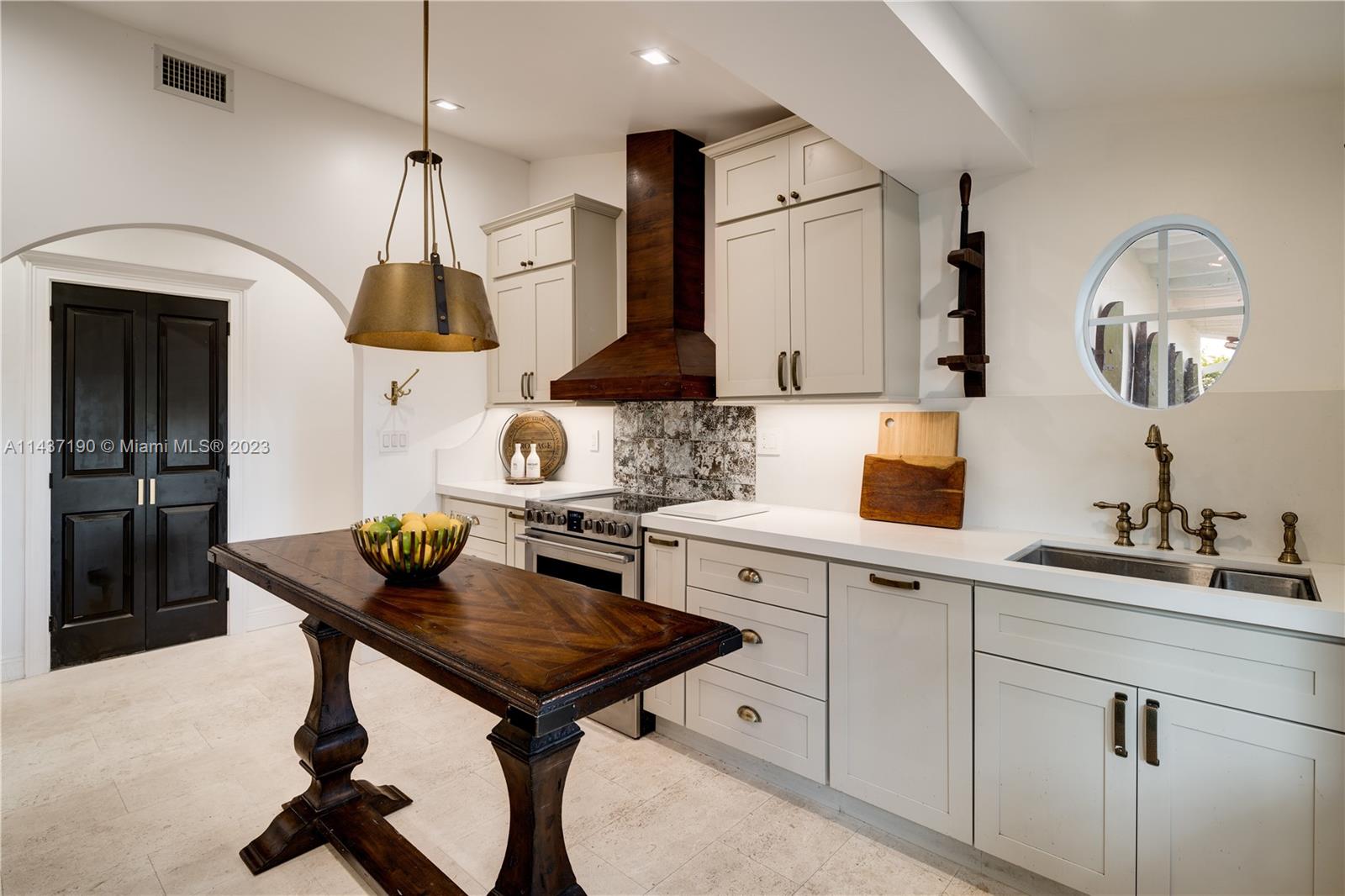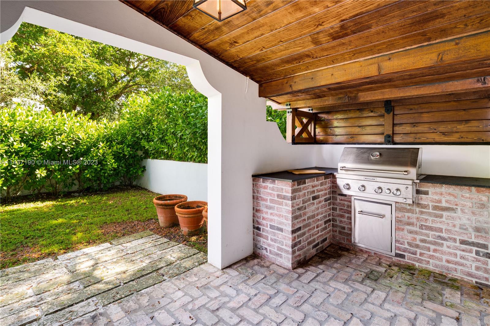 An enchanting fairytale home awaits its new chapter with a new homeowner. The allure of the corner courtyard entrance, moves you to peek inside & enjoy all the charm. From the limestone floors below, to the eye-catching exposed wood ceiling above, to the arched details, you are captivated. Fully remodeled, with PVC plumbing, impact doors & windows, updated electrical, beautiful kitchen, and spa-like bathrooms—all waiting for you to move right in! There are 2 spacious bedrooms plus a home office, and a garage. Built in BBQ area in patio for gatherings. There is even room for a small pool in the private yard! Blocks from the Granada Golf course. Sq footage larger than tax roll per seller. A true, Very Special Home.