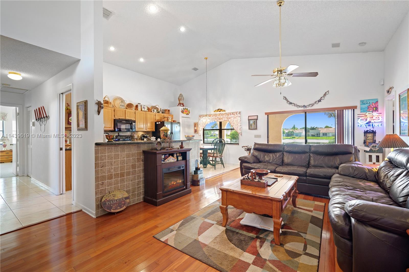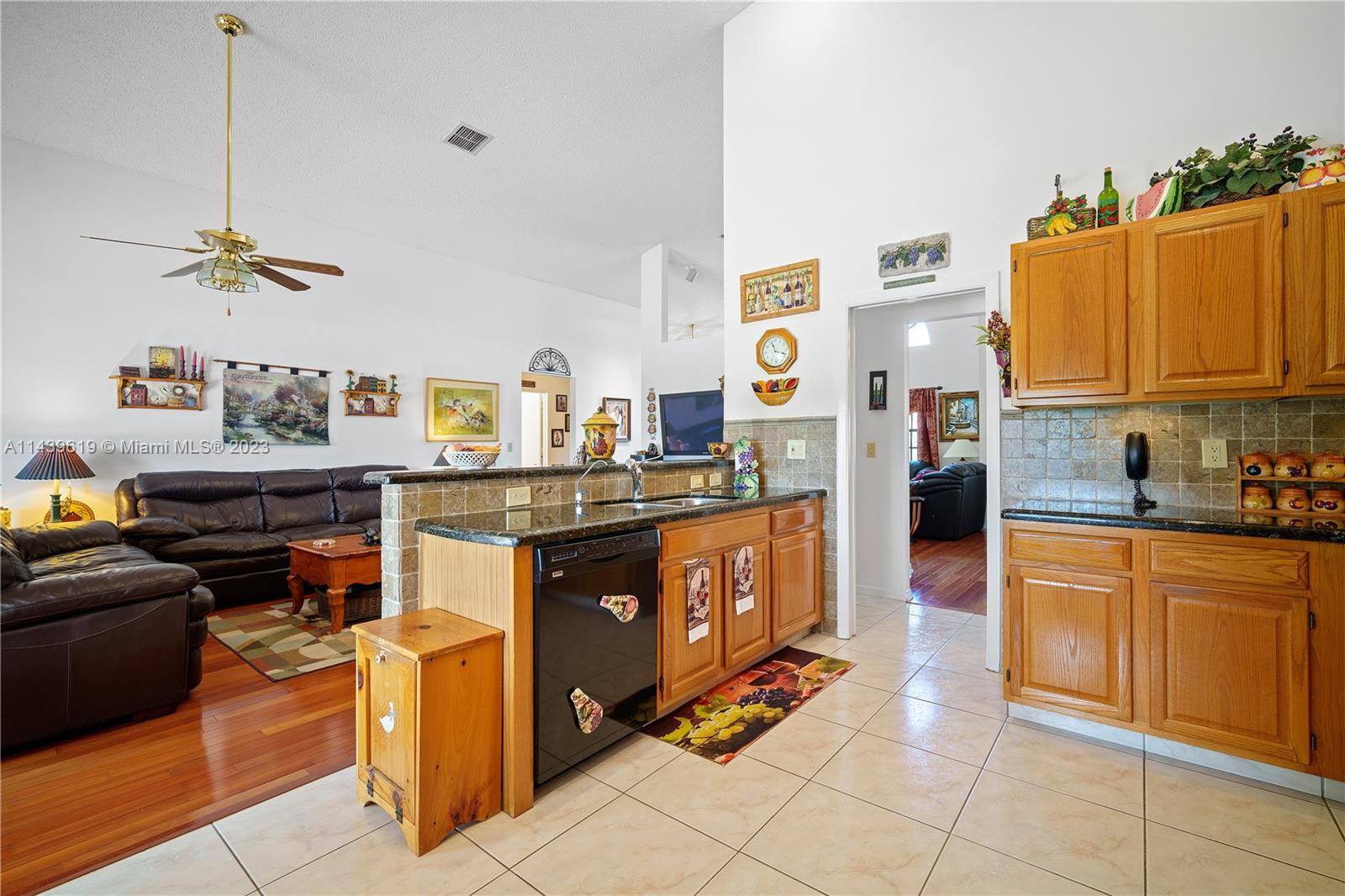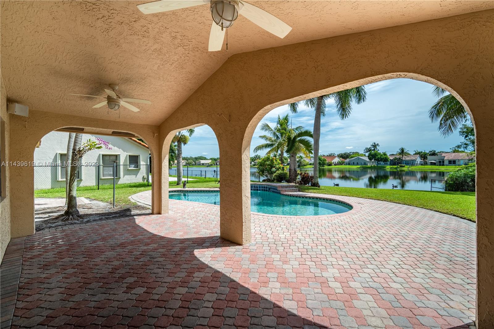 Discover your dream home in the Forest Ridge community! Spacious 4-bed, 2-bath gem offers a 2-car garage, a pool with waterfall feature, an oversized lot perfect for outdoor enjoyment. Stepping inside the home you'll be captivated by the volume ceilings, creating an open & airy atmosphere. The open layout invites you to explore the spacious living areas, with lots of natural light filtering through large windows. The heart of the home boasts a large open kitchen with sleek countertops, The living room offers a cozy ambiance for gatherings, while the formal dining offers an elegant setting for guests. Glass sliding doors connect the indoor & outdoor spaces, leading to the patio & pool. With a lakefront view adding to the charm, this property combines comfort, with a picturesque setting.