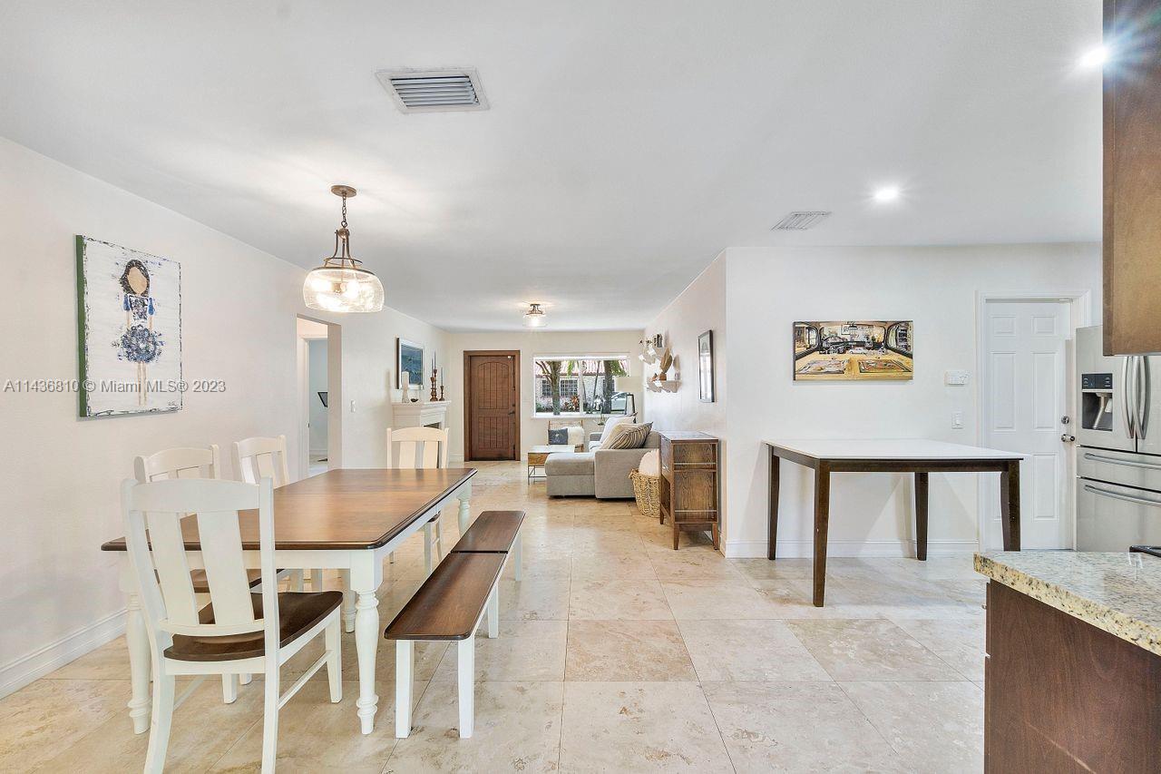 Enjoy Coral Gables lifestyle in this beautifully renovated three bedroom, two bath, one car garage single family home steps away from Country Club Prado. This turn-key home features spacious living areas, an open kitchen with dark wood cabinets, granite countertops and stainless steel appliances and a bright family room with exposed wood ceiling and oversized windows overlooking the backyard, making it ideal for entertaining. The primary bedroom features a walk in closet and primary bath with glass bowl sink and shower. This home has travertine floors throughout, impact windows, updated plumbing and space for a pool. Ideally situated with easy access to shops, restaurants and golf course. A must see! Tour it this Sunday 8/27 12-2 pm.