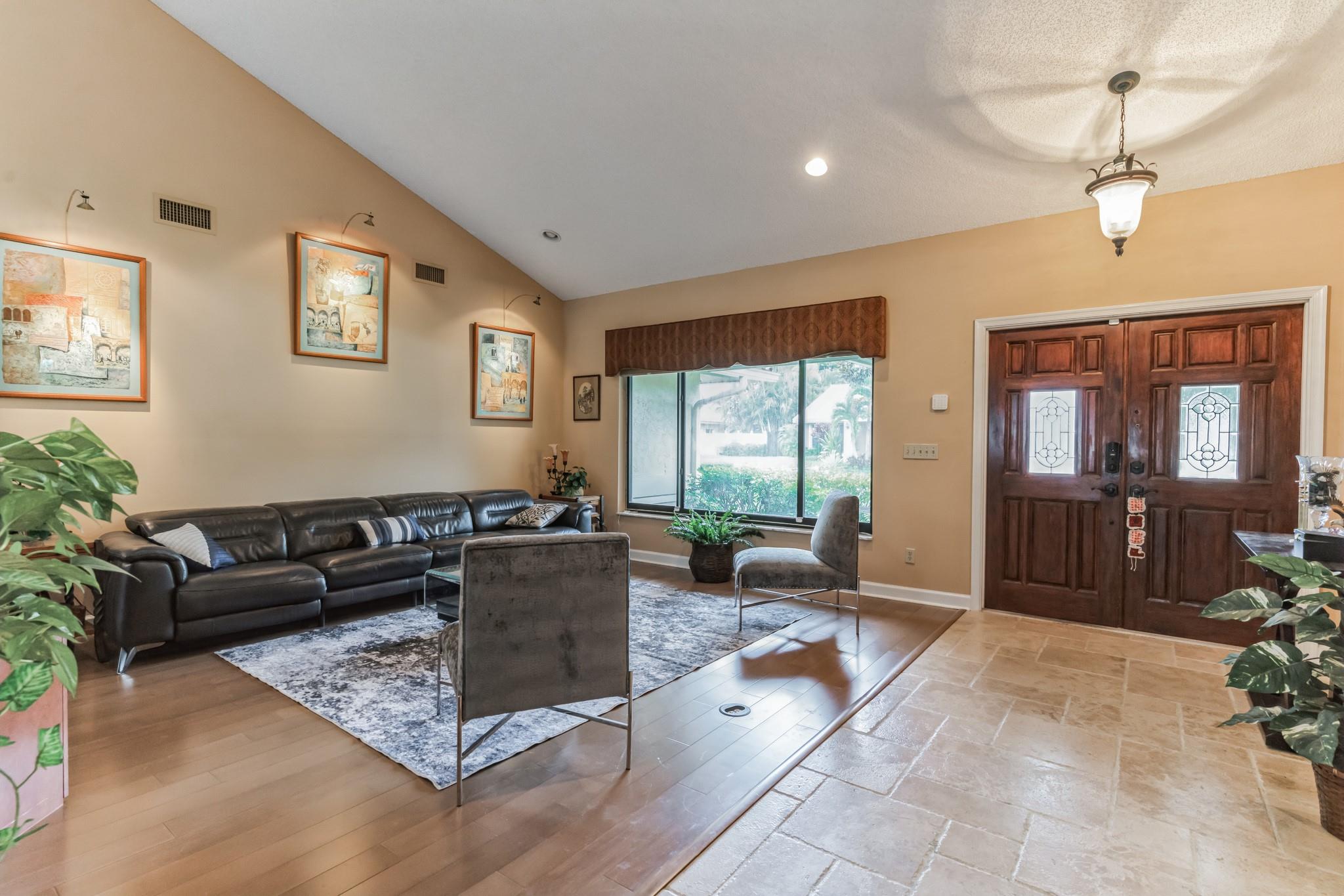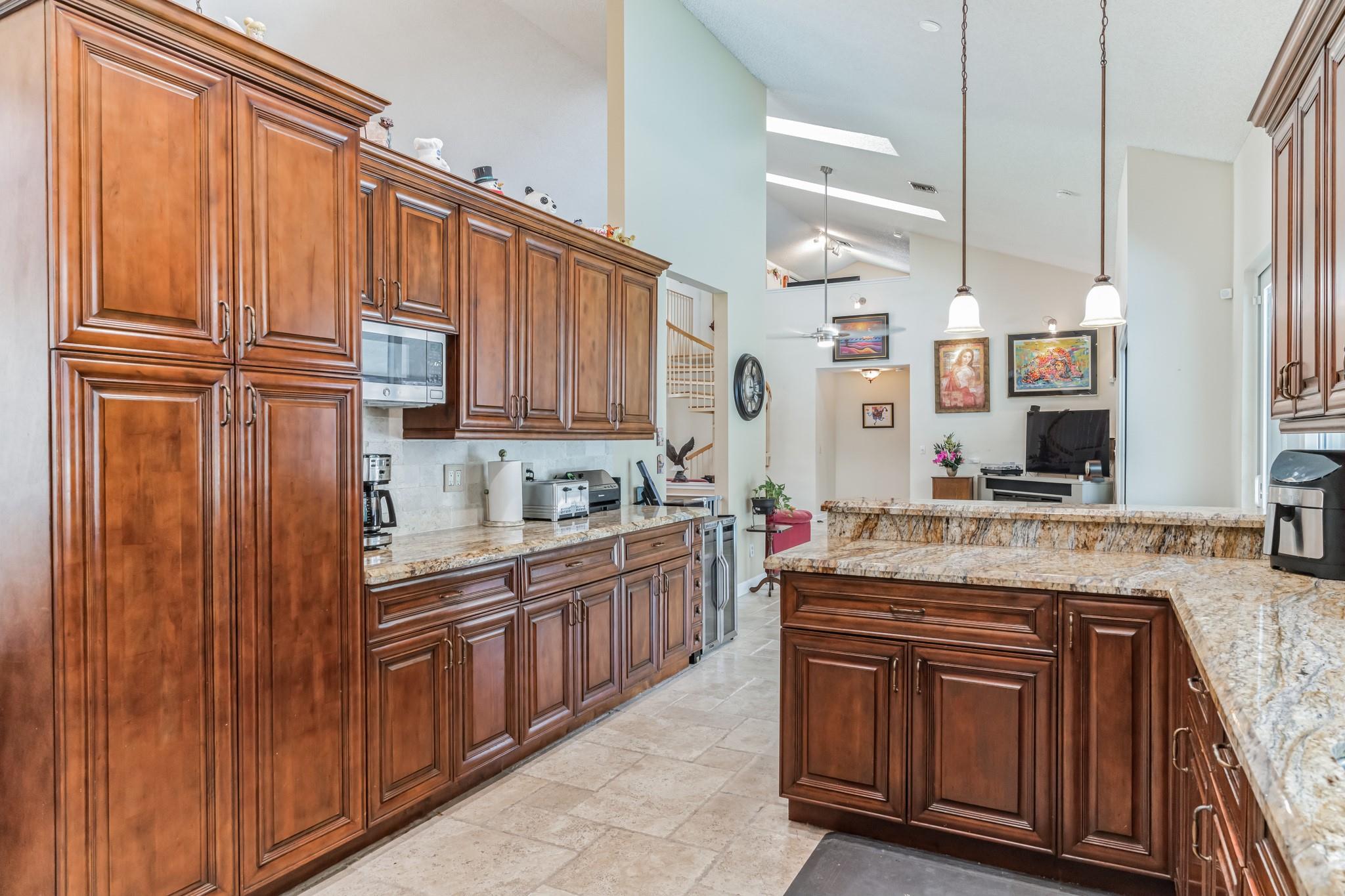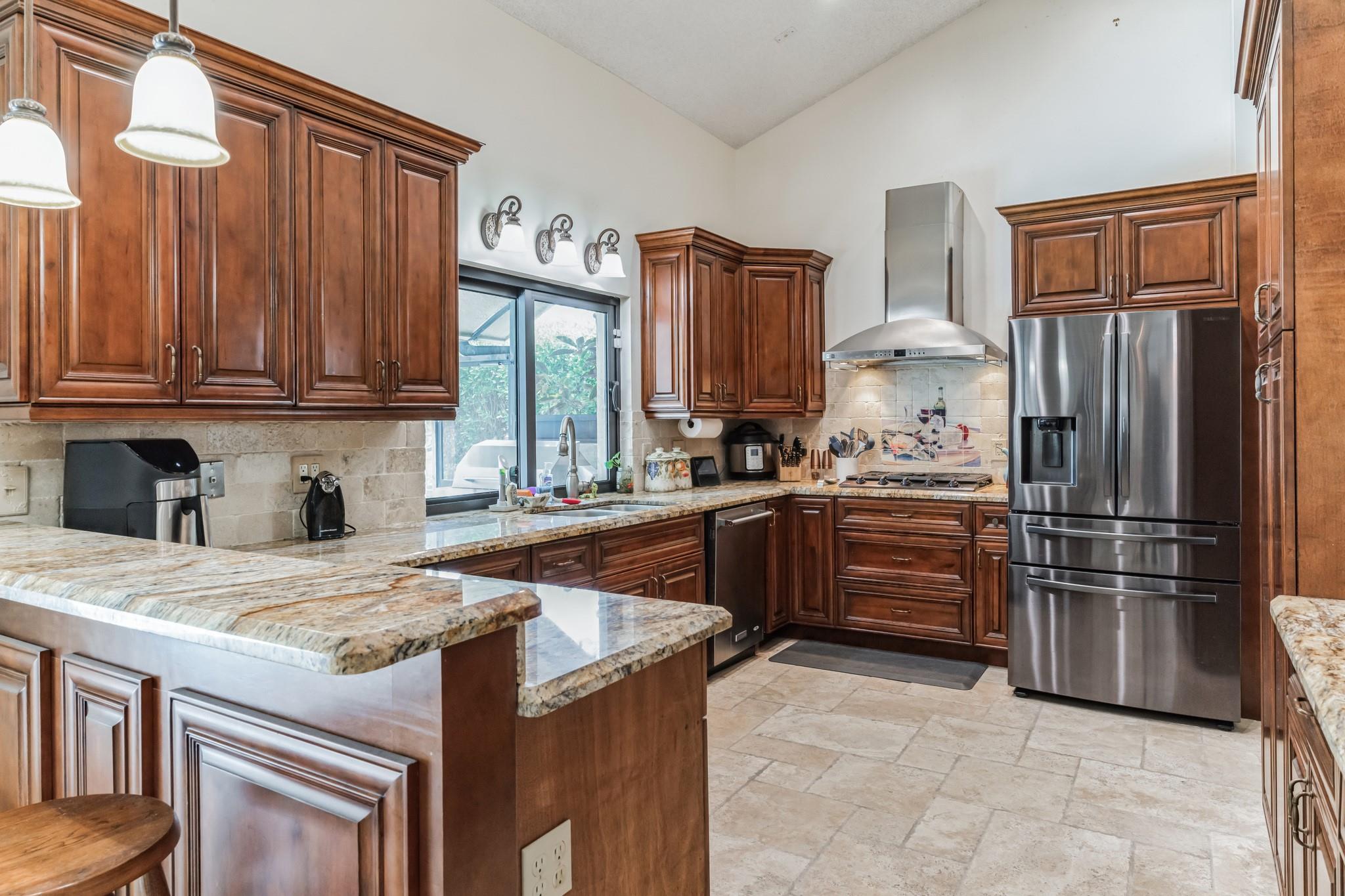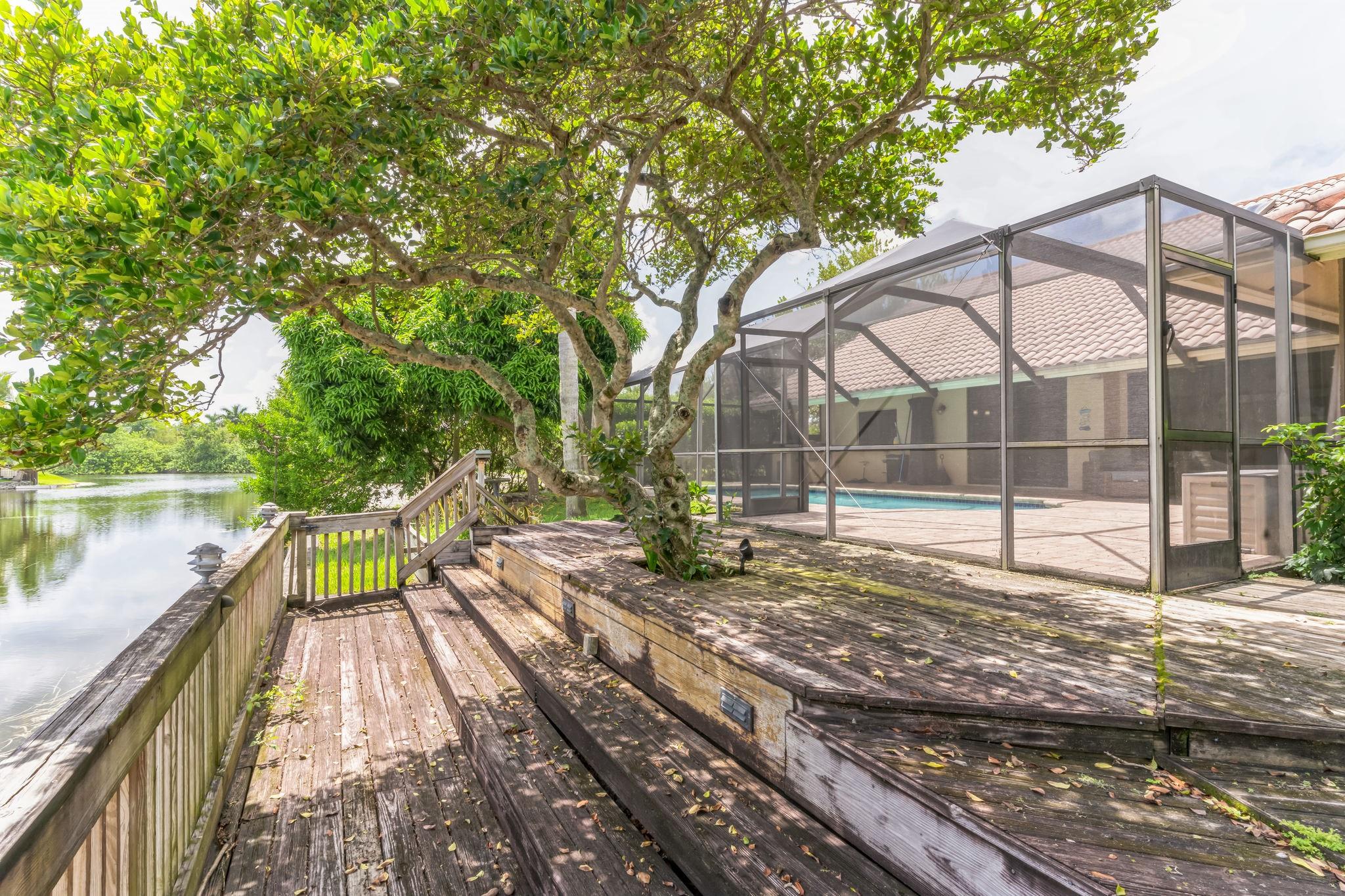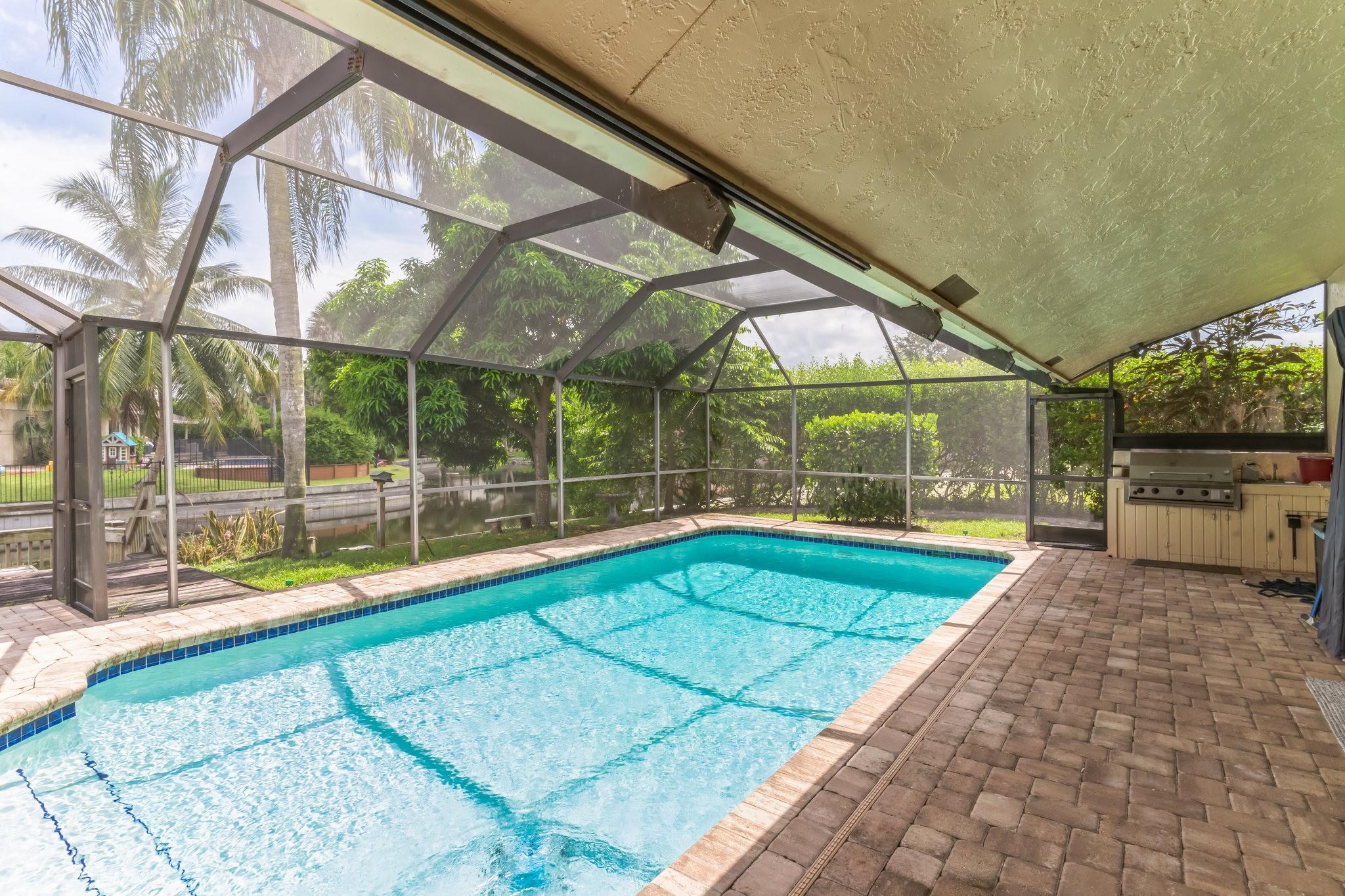 Beautiful four bedroom and 2 and a half baths water-view home located in Jacaranda Cay. This home offers a Gourmet kitchen with gas stove, stainless steel appliances, double oven, water filtration system and granite countertops! Open floor plan with vaulted ceilings along with travertine and hardwood floors throughout the home. Impact windows and doors. Extra loft area can be used as a 5th bedroom or multi-purpose room. Separate temperature controlled 500 bottle wine cellar located in the loft area. Enjoy the water-view on the back patio or on the dock surrounded by lush landscaping.