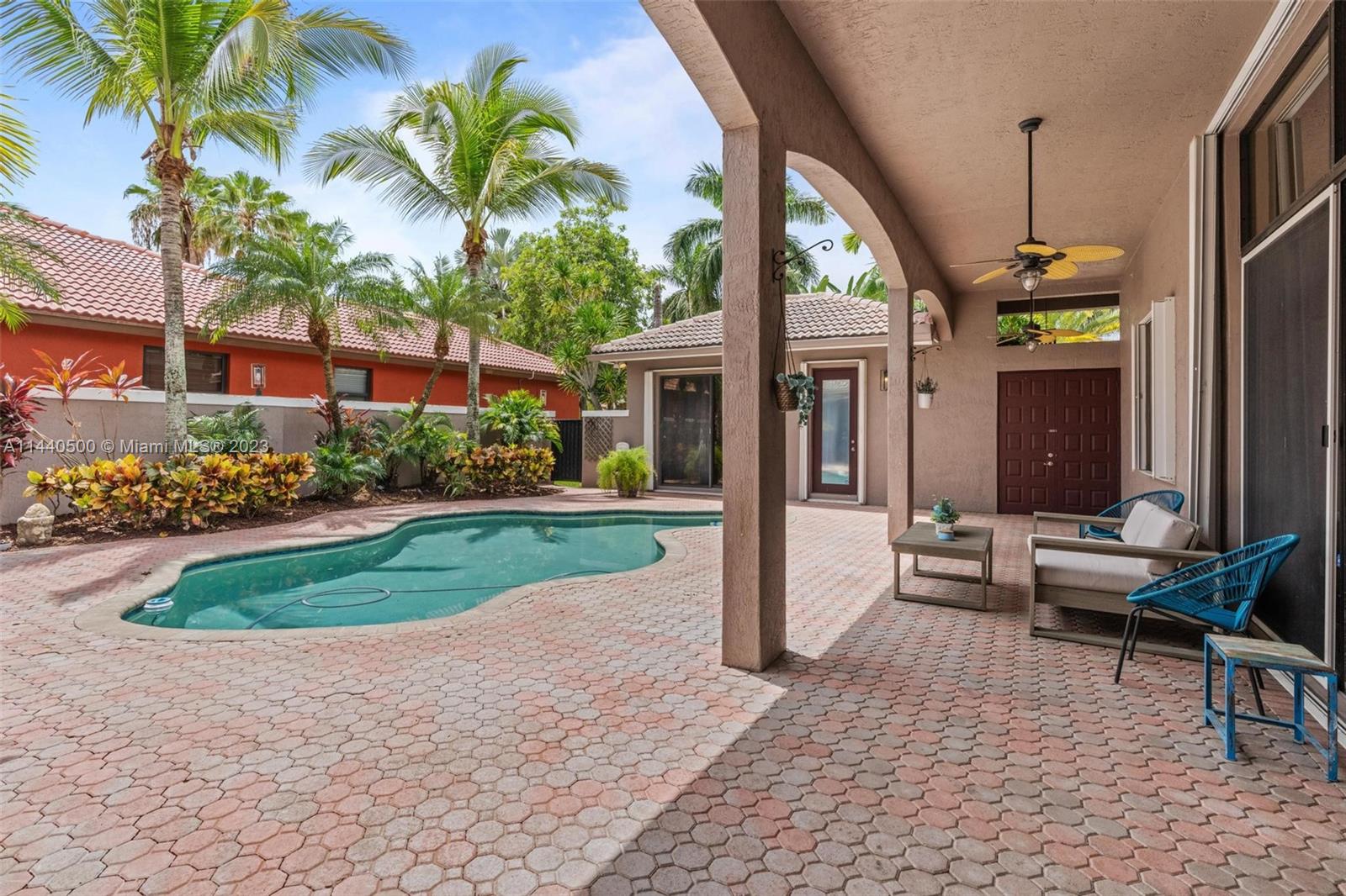 Welcome to a truly MAGNIFICENT courtyard estate in the highly desired Sunset Lakes! The most sought-after model in the subdivision for its unique design! As you walk through the main doors you are greeted by an open courtyard, which features a newly resurfaced pool & covered patio! An ideal + impressive setting for outdoor entertaining & S Fl living! Fantastic floor plan w 6 BR/4 BA including a separate guest quarters! BRAND NEW ROOF + PARTIAL IMPACT WINDOWS being installed! 2 NEW A/C units! Triple split floor plan where every room organically flows into the other. Gourmet kitchen w white wood cabinets, beautiful tile backsplash, stainless steel appliances & granite countertop. Accordion shutters throughout the house. Resort style community w/ many amenities and amazing fitness center!