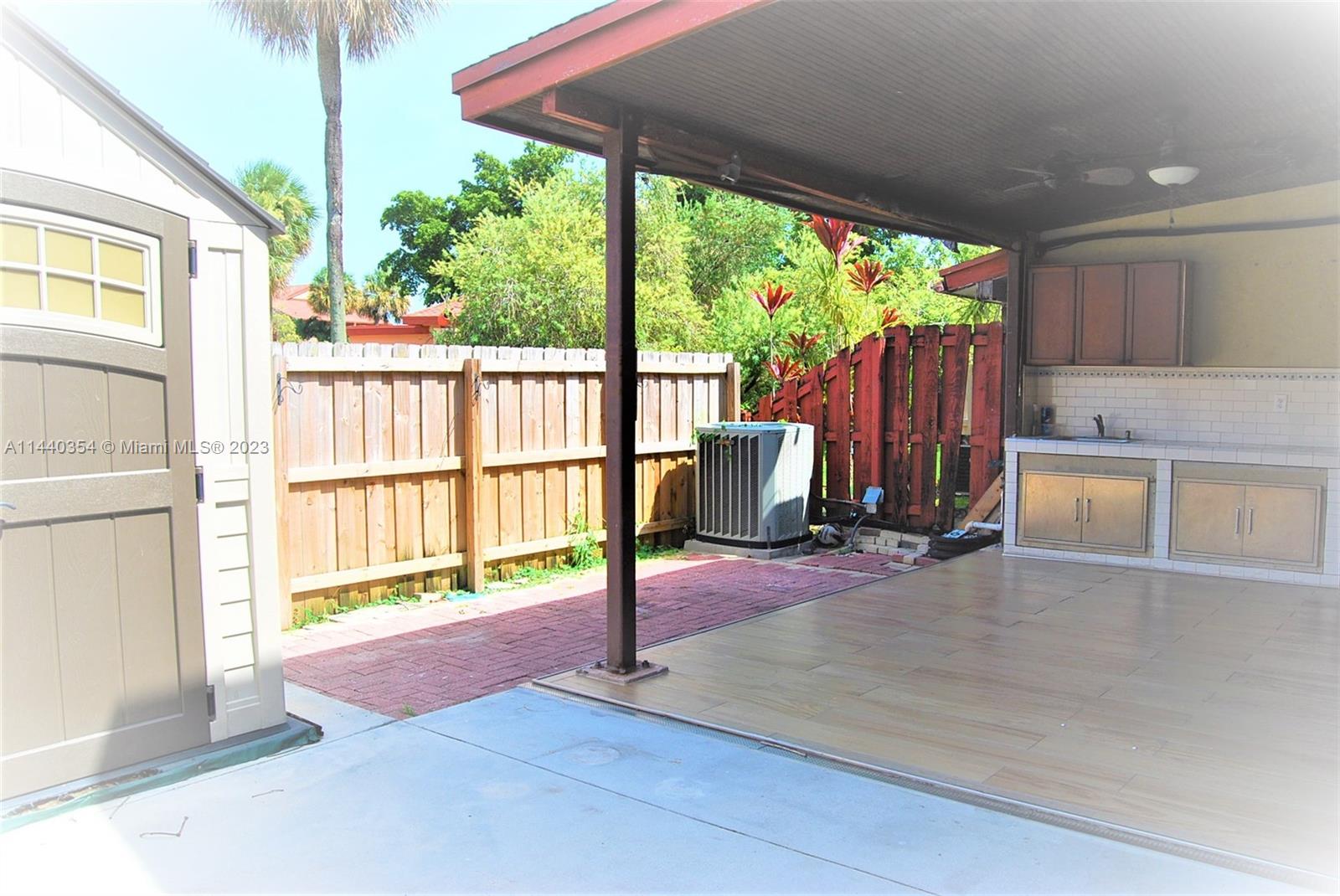 Are you looking for privacy without emptying your bank account? This is the property you were looking for. This townhouse is sitting on the corner lot and behind it has an open space with direct access to the community pool and no Neighbors behind , unit feature more than 1700 square feet, spacious living and dining room well-lit , on the first floor has a bedroom with a full bath, well-prepared patio with covered terrace and counter for cooking outside, loundry room with washer and dryer inside. Side entrance with wide door. Parking for two cars and a larger number of visitor parking spaces in the community. Don't wait for tomorrow, call the listing agent directly now. All info regarding HOA, taxes and the property must be verified by the buyer.