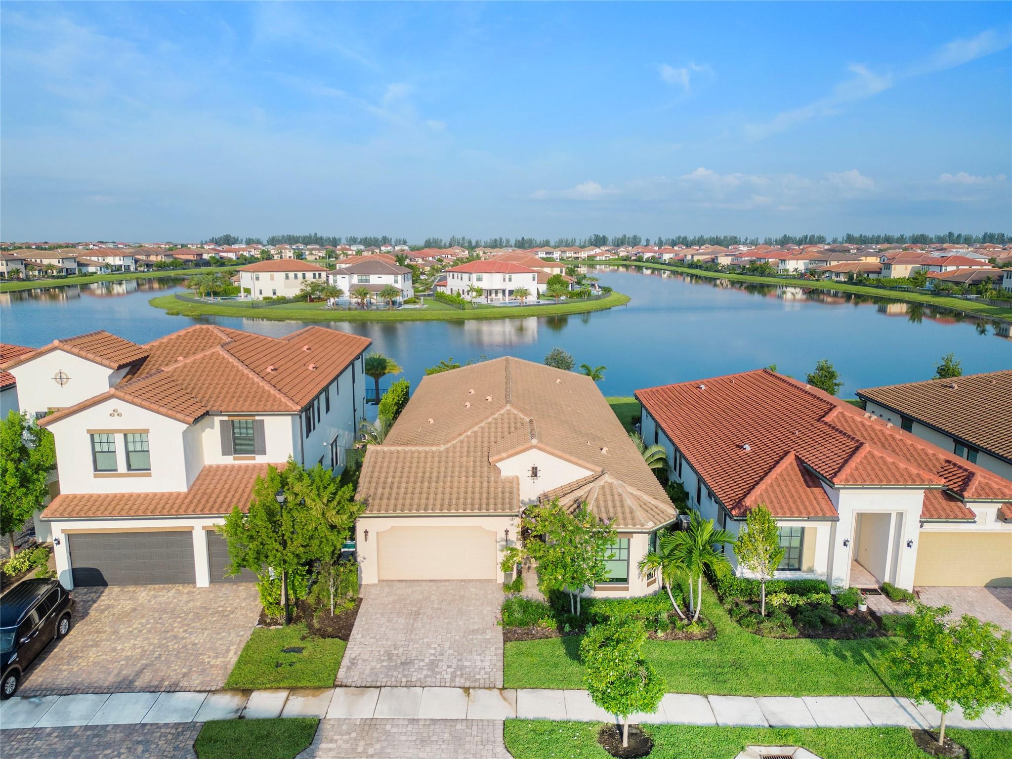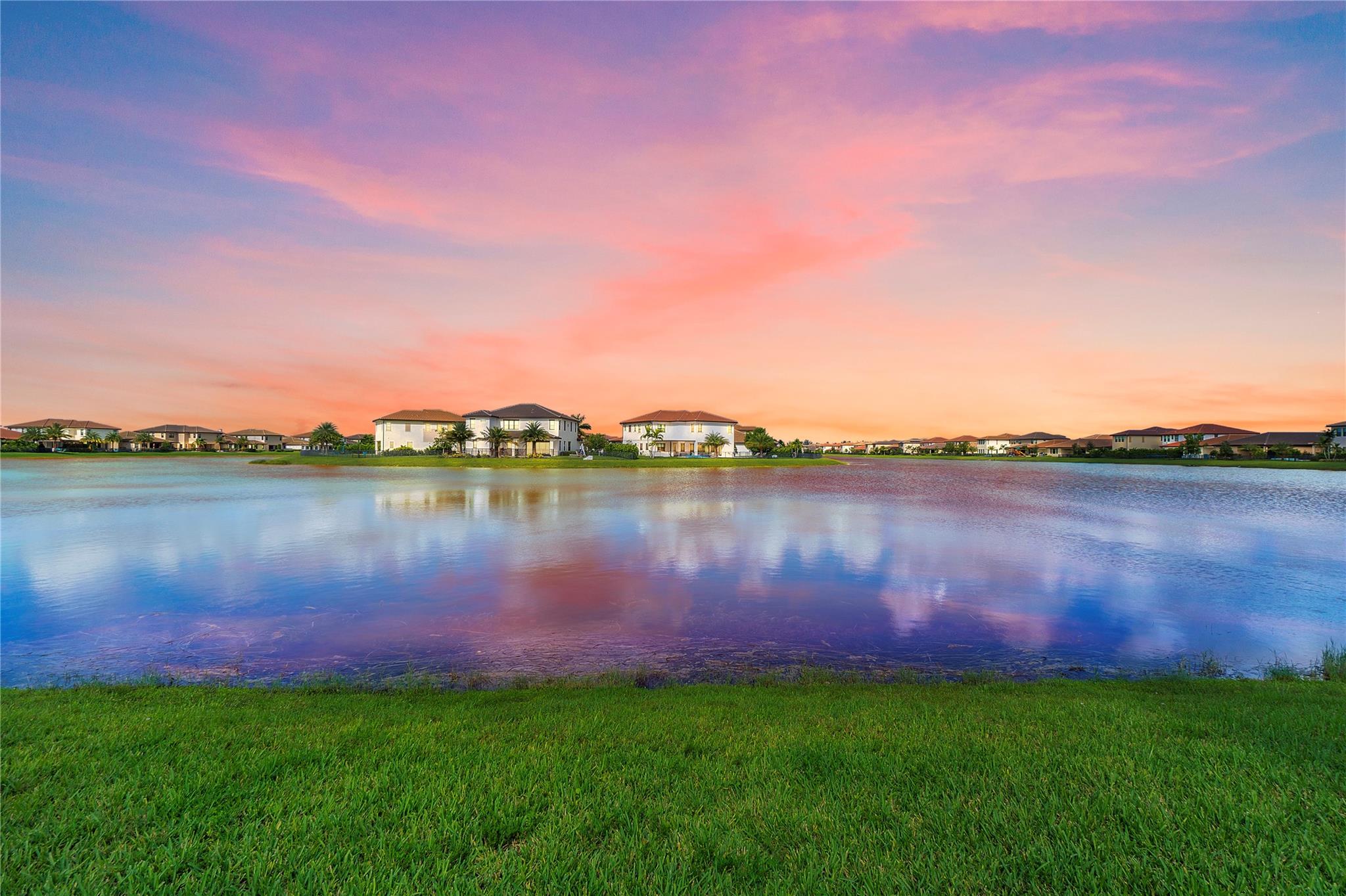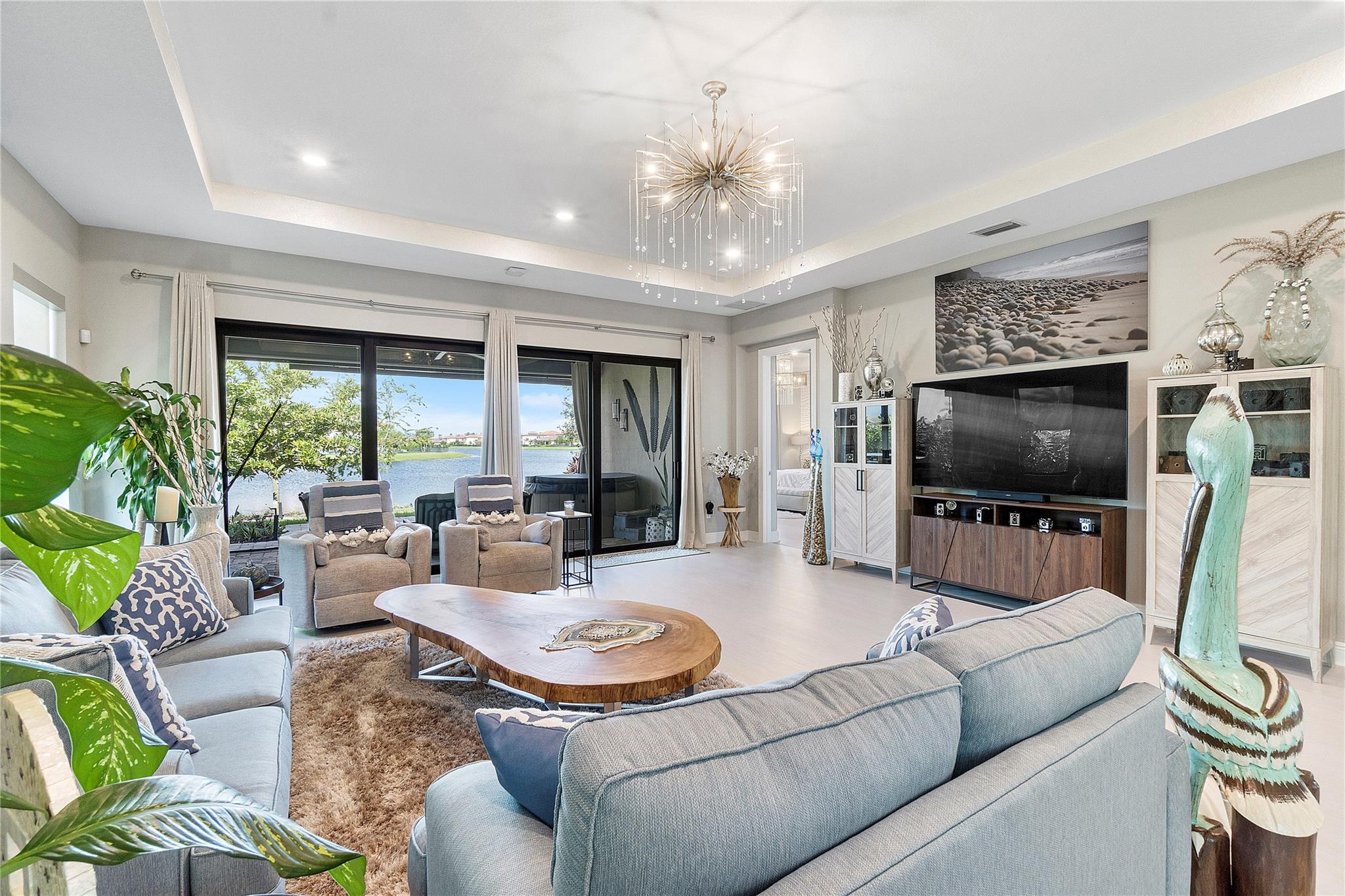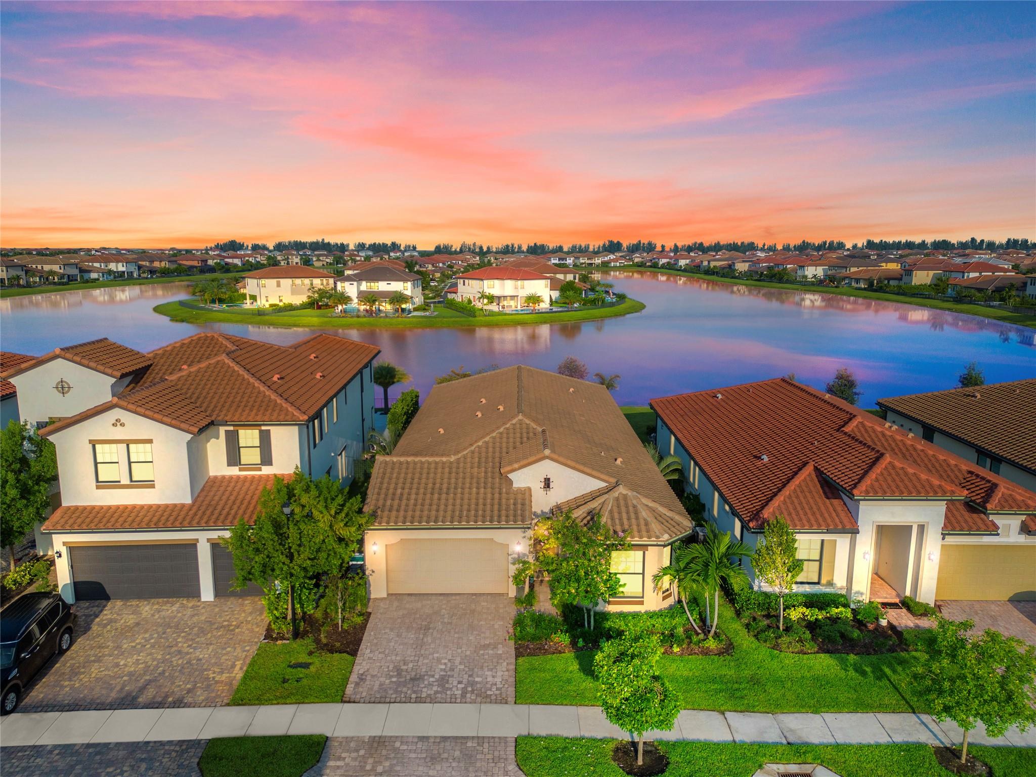 Magnificent lakefront home owned by a professional decorator who spared no expense. 10" ceilings throughout. Exquisite lighting and chandeliers will remain. The perfect home to entertain. The great room flows out onto the covered screened patio. Enjoy the postcard-perfect sunset views while you restore, relax and rejuvenate in your tropical paradise, featuring an outdoor Kitchen, AC system for the screened lanai, a hot tub and fire pit. A sculptured wall and tray ceilings enhance the main bedroom, along with your tranquil bathroom spa. This is an exquisite living experience community with resort-style amenities, featuring a 16,000 sq ft clubhouse with a fitness center, kids room, banquet rooms, bar, culinary studio, large beach entry pool, tennis courts and a basketball court.