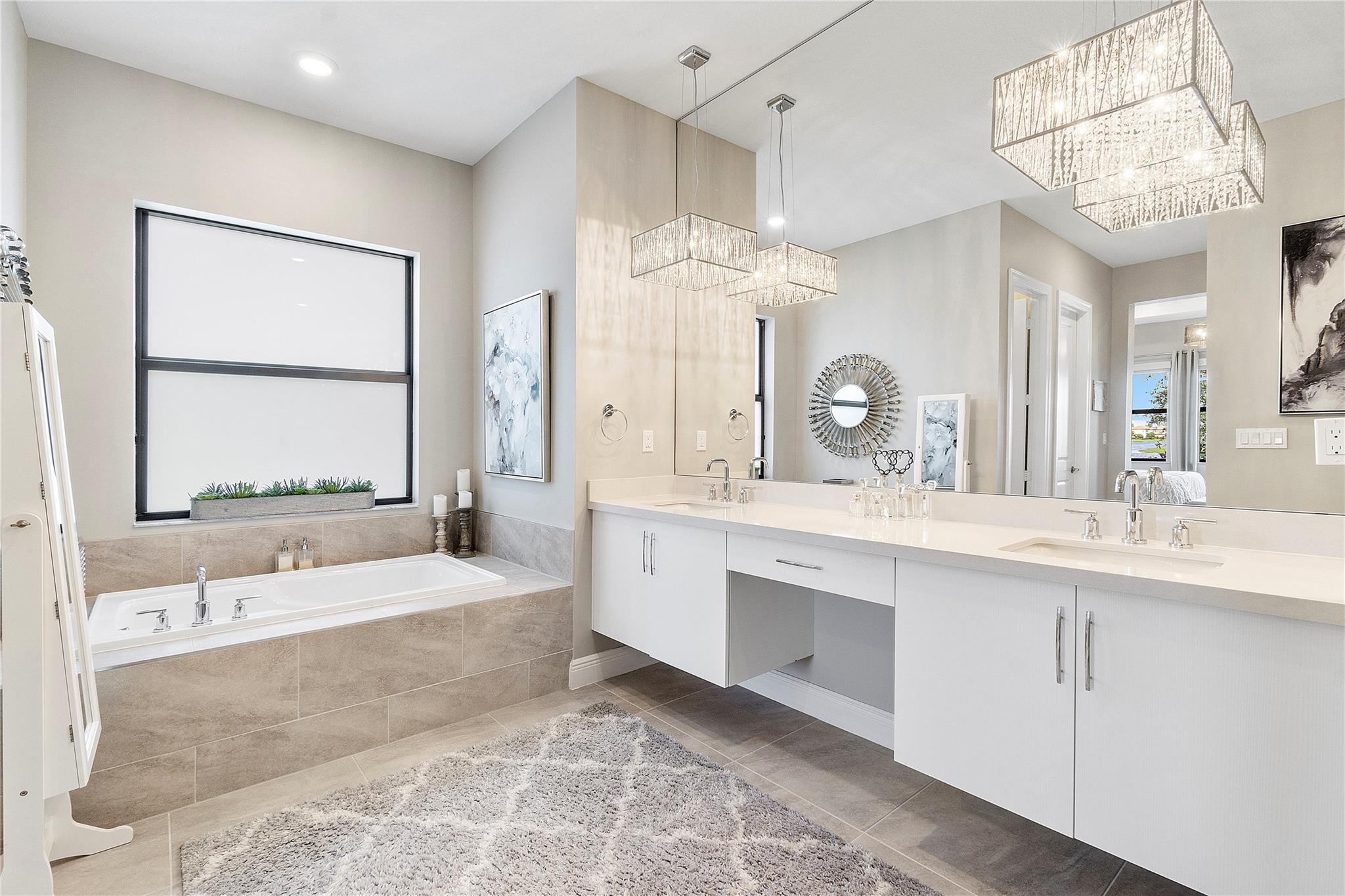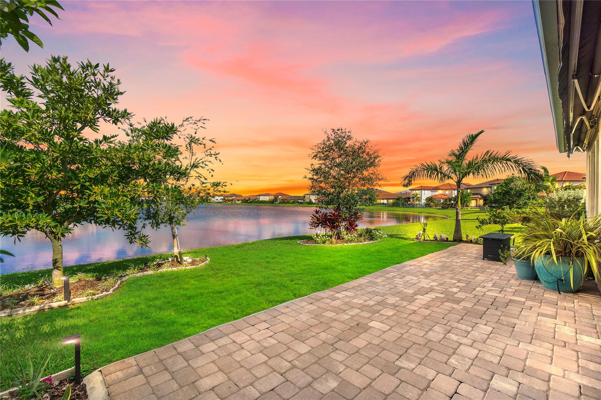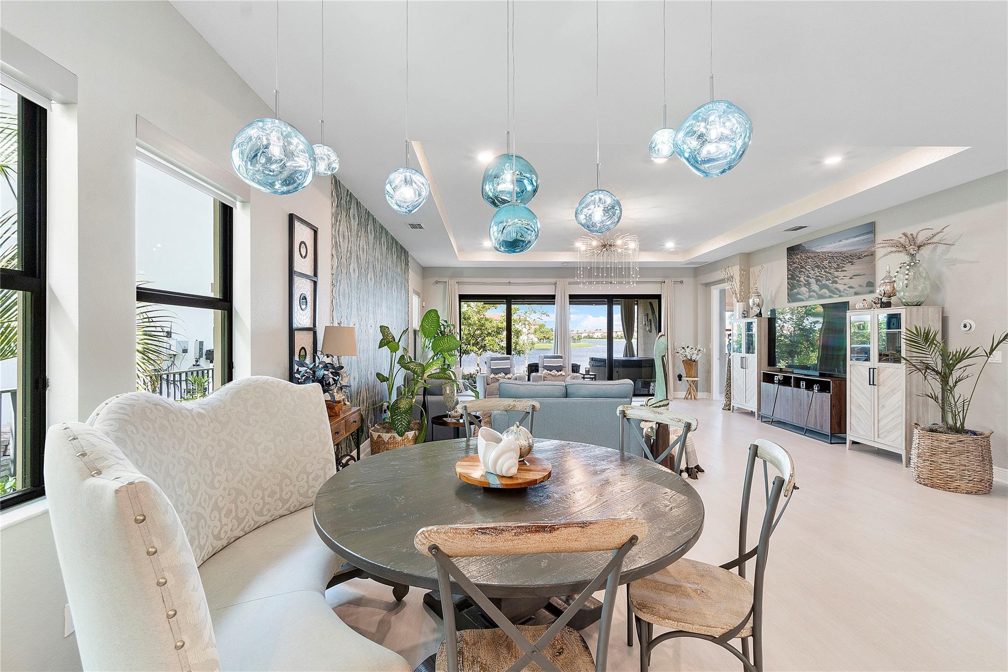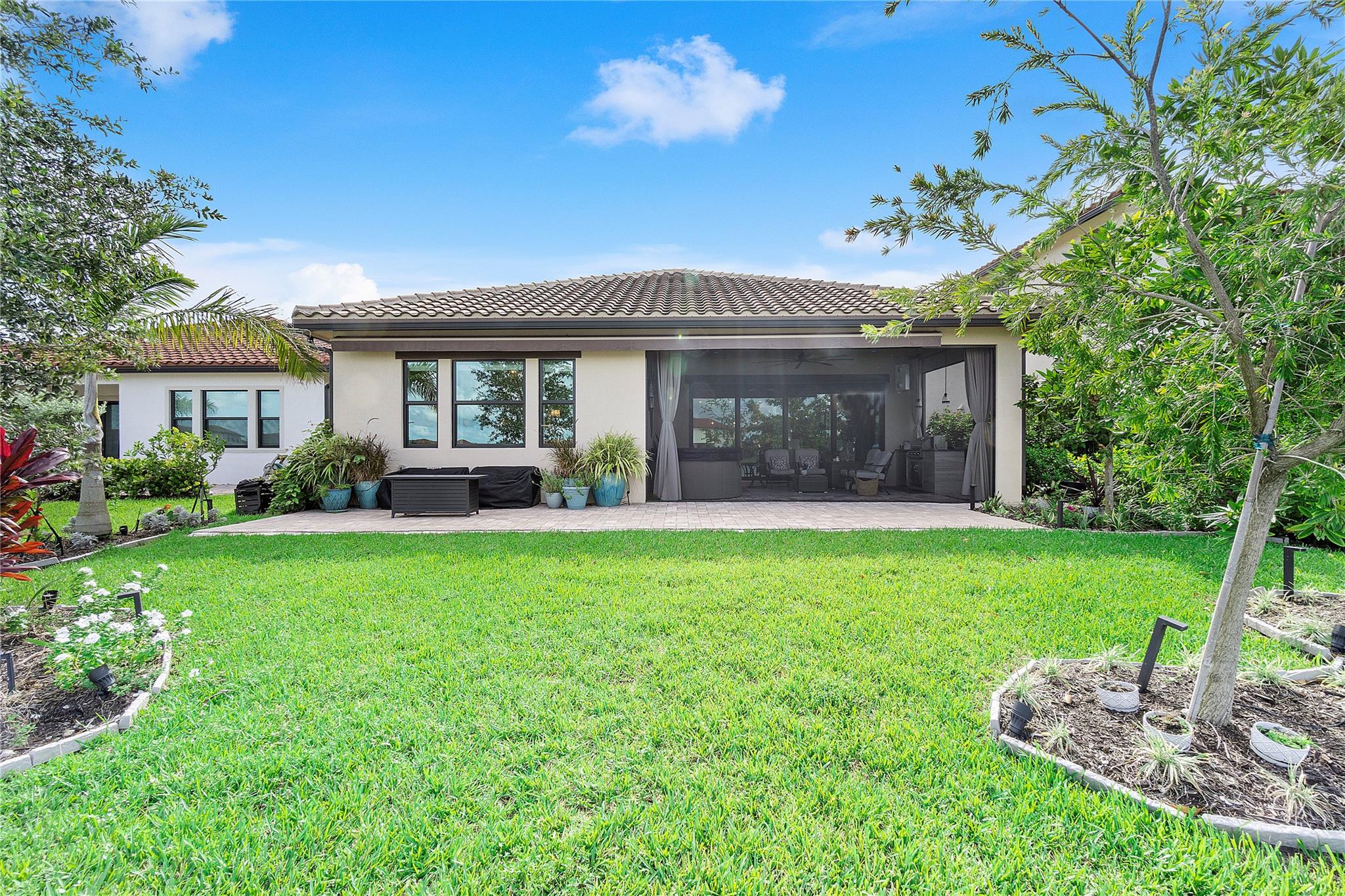 Magnificent lakefront home owned by a professional decorator who spared no expense. 10" ceilings throughout. Exquisite lighting and chandeliers will remain. The perfect home to entertain. The great room flows out onto the covered screened patio. Enjoy the postcard-perfect sunset views while you restore, relax and rejuvenate in your tropical paradise, featuring an outdoor Kitchen, AC system for the screened lanai, a hot tub and fire pit. A sculptured wall and tray ceilings enhance the main bedroom, along with your tranquil bathroom spa. This is an exquisite living experience community with resort-style amenities, featuring a 16,000 sq ft clubhouse with a fitness center, kids room, banquet rooms, bar, culinary studio, large beach entry pool, tennis courts and a basketball court.