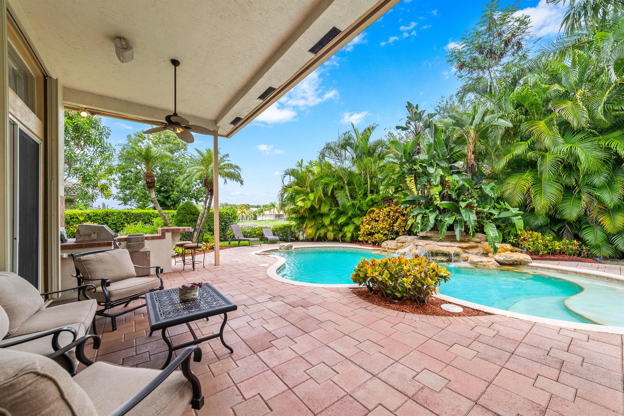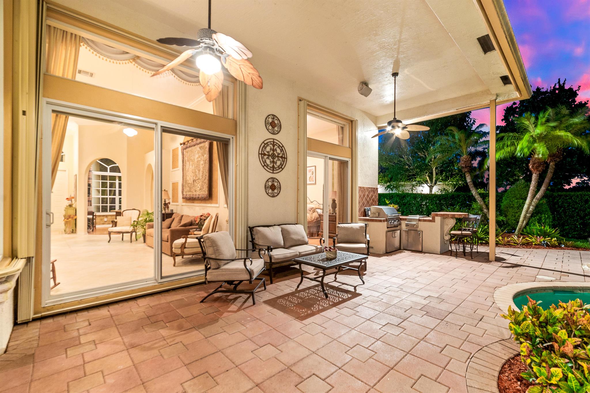 Welcome to this gorgeous 4-bedroom, 3 bathroom former Model Home located in the highly sought after Grand Reserve community of Coral Springs. As soon as you enter, you immediately notice the soaring high ceilings, custom crown molding and abundant natural light. All windows have accordion shutters, impact garage doors, full impact sliding doors and just recently installed ten impact windows. The home features a convenient triple split bedroom floor plan providing terrific privacy to both primary owner and guests. The property has tile-flooring throughout the living areas with engineered wooden flooring in the bedrooms. The Primary suite is enormous with a sizeable walk-in closet, offering custom built shelving and a beautiful view of the pool. The primary bathroom