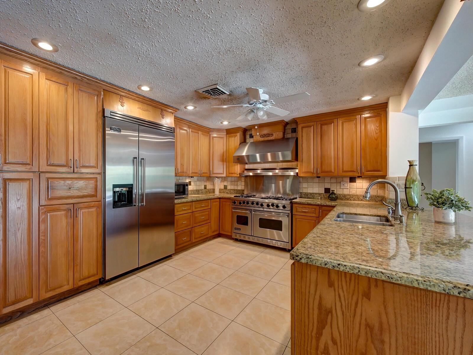 Welcome to this sprawling estate, featuring a spacious split floor plan, 4 bedrooms, 3 full baths, and a private home office off the master bedroom complete with a gas burning fireplace. The huge kitchen is a chef's delight, boasting a Viking refrigerator and gas range, granite countertops, wood cabinets and more! This captivating acre defines South Florida living at its best with outdoor entertainment like no other, including a 40'x20' diving pool, travertine deck, lighted tennis court, oversized covered patio, and wet bar! Garage converted to 5th bedroom/playroom can easily be converted back. Plenty of space to park your boat or RV. Want to play basketball or pickleball - your tennis courts can accommodate either. The possibilities are endless! Bring your horses too! Best of all no HOA!