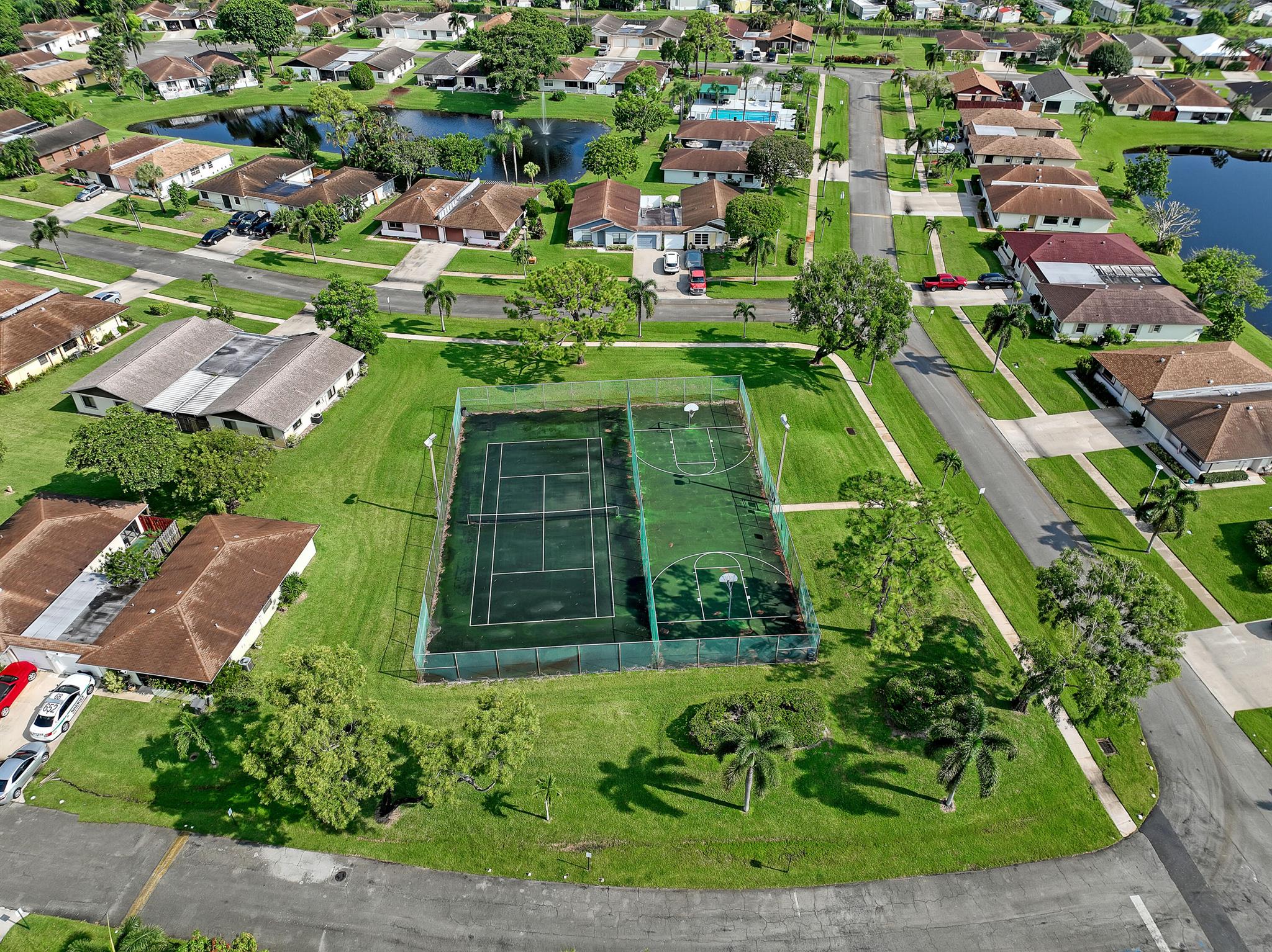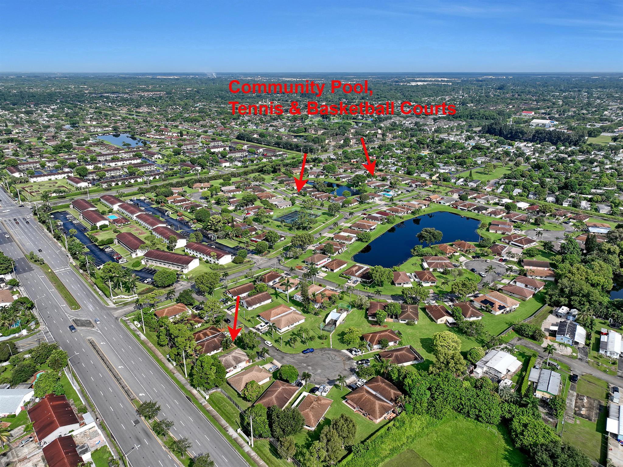 Centrally located, open floor plan 2 bedroom 2 bathroom plus den single family home. Some owner use the Den as a office or 3rd bedroom. Porcelain floors in the main living areas. Fully fenced side yard/porch. Low HOA which includes lawn care and common areas, pool, basketball courts, etc.