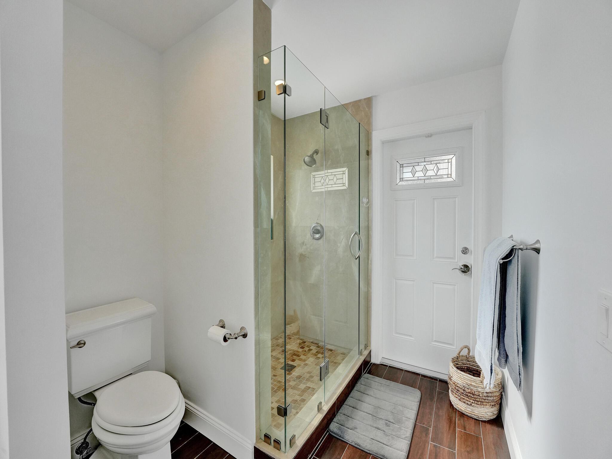 Rarely avail & highly sought-after Lakefront single-family home, corner lot, 1/3 Acre in the city limits of Boca Raton. Ranch style home w/ 4 bedrooms, 2.5 baths, 2 car garage, screened enclosure w/ saltwater pool & amazing sunrises, cabana bath, covered patio (47'x10' area) w/ direct lake views. Meticulously maintained home w/ spacious open floorplan, solid hardwood flrs in main living areas & bedrooms, newer kitchen w/ center island, granite & SS appliances, Huge Mstr w/ 2 walk-in closets, updated mstr bath, dual sinks, separate tub, & seamless glass shower. Fresh paint inside & out, high hat lights, ceiling fans, 2-A/C's, 2-skylights, 3-glass sliders to pool, covered front entrance (14'x8'), BRAND NEW ROOF w/ 10 year warranty, accordion hurricane shutters, hot water heater 1.5 yrs old.