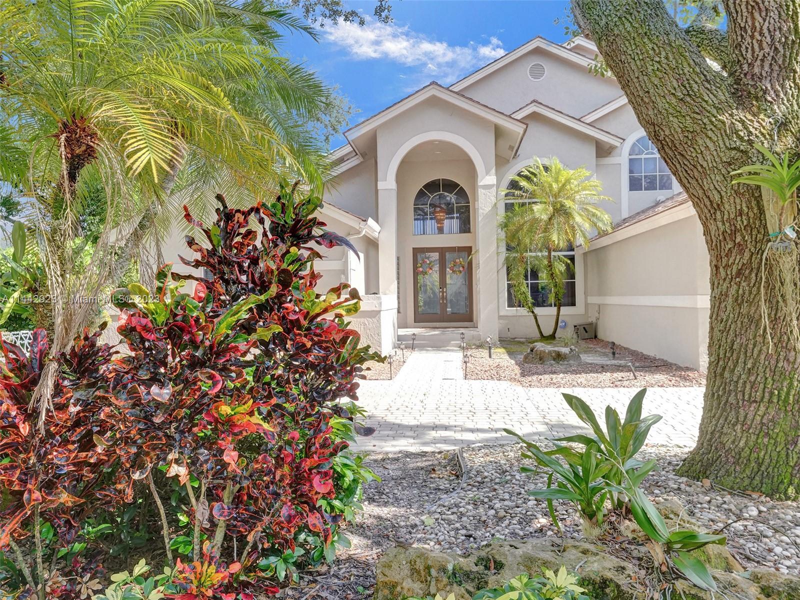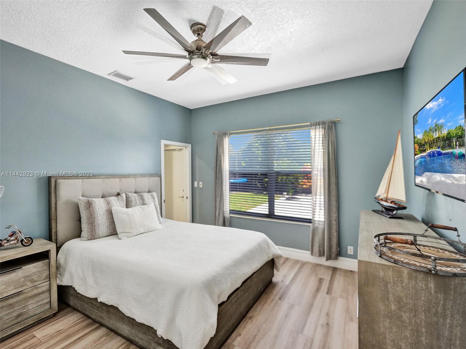 Welcome to this stunning custom 6 bed, 4 bath solar-powered home in the sought-after guard gated community of Eagle Trace. This luxurious home boasts an array of incredible features that are sure to impress. Inside, you'll find a spacious and inviting triple split floor plan with plenty of natural light & high-end finishes. Custom wood cabinets, vent, and quartz countertops in kitchen. Real wood-burning fireplace. Near the master there is a 6th room that could be used as a nursery, office, or just a quiet place to read or do some yoga. Step outside into one of the largest fenced yards in the community and you'll be greeted by a screened-in patio with bar and built-in kegerator, glass tiled pool w/waterfall, large screened, lots of green space perfect for children, pets, & entertaining.