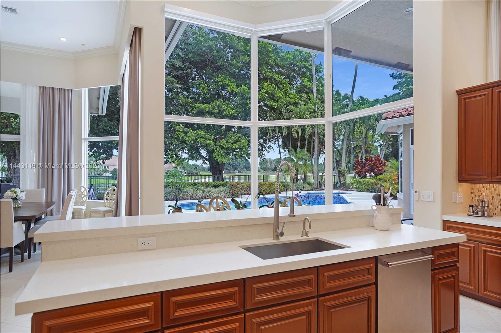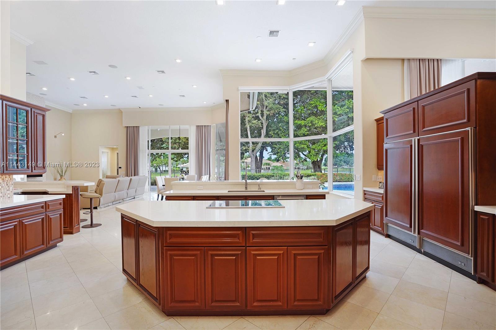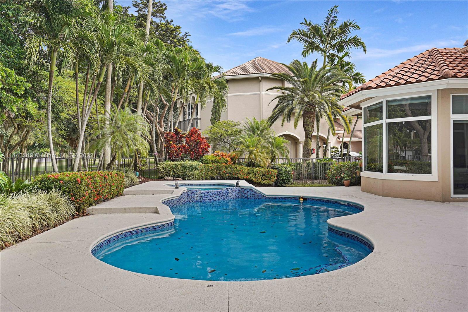 MAGNIFICENT CUSTOM MADE BREATHTAKING HOME WITH GOLF TO LAKE VIEW ON CUL-DE-SAC IN THE BEST COMMUNITY. AMAZING MASTER BEDROOM WITH ADDITIONAL BRAND NEW BUILT BEDROOM IN THE GARAGE. ELEGANT MARBLE FLOORS IN SPACIOUS LIVING AREA. 16FT CEILINGS AND HUGE HURRICANE IMPACT WINDOWS INSTALLED 2021. FABULOUS GOURMET KITCHEN, WITH ALL APPLIANCES, EXQUISITE FAMILY ROOM, WET BAR AND FIREPLACE. NEW ROOF, NEW A/C, ALL BATHROOMS REMODELED! ALL BEDROOMS WOODEN FLOORS AND CLOSETS. NEW EQUIPMENT FOR JACUZZI AND POOL. REMODELED GARAGE WITH A/C. SURROUND SYSTEM THRUOUT THE HOUSE.