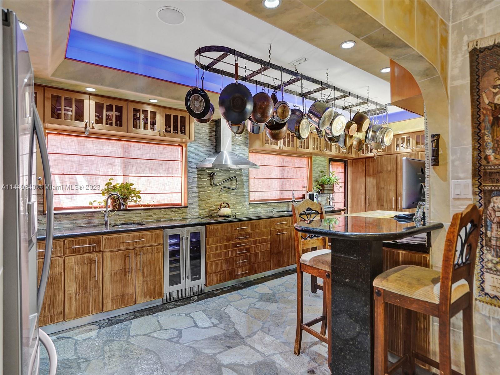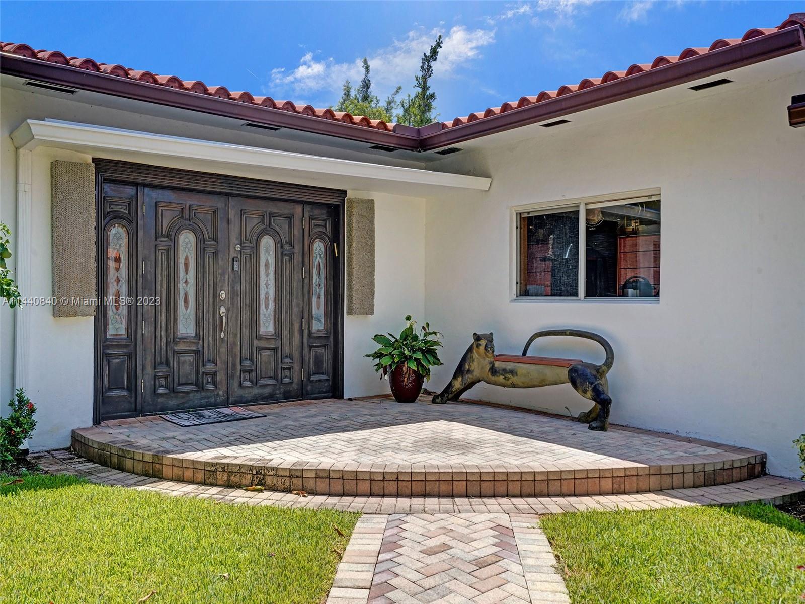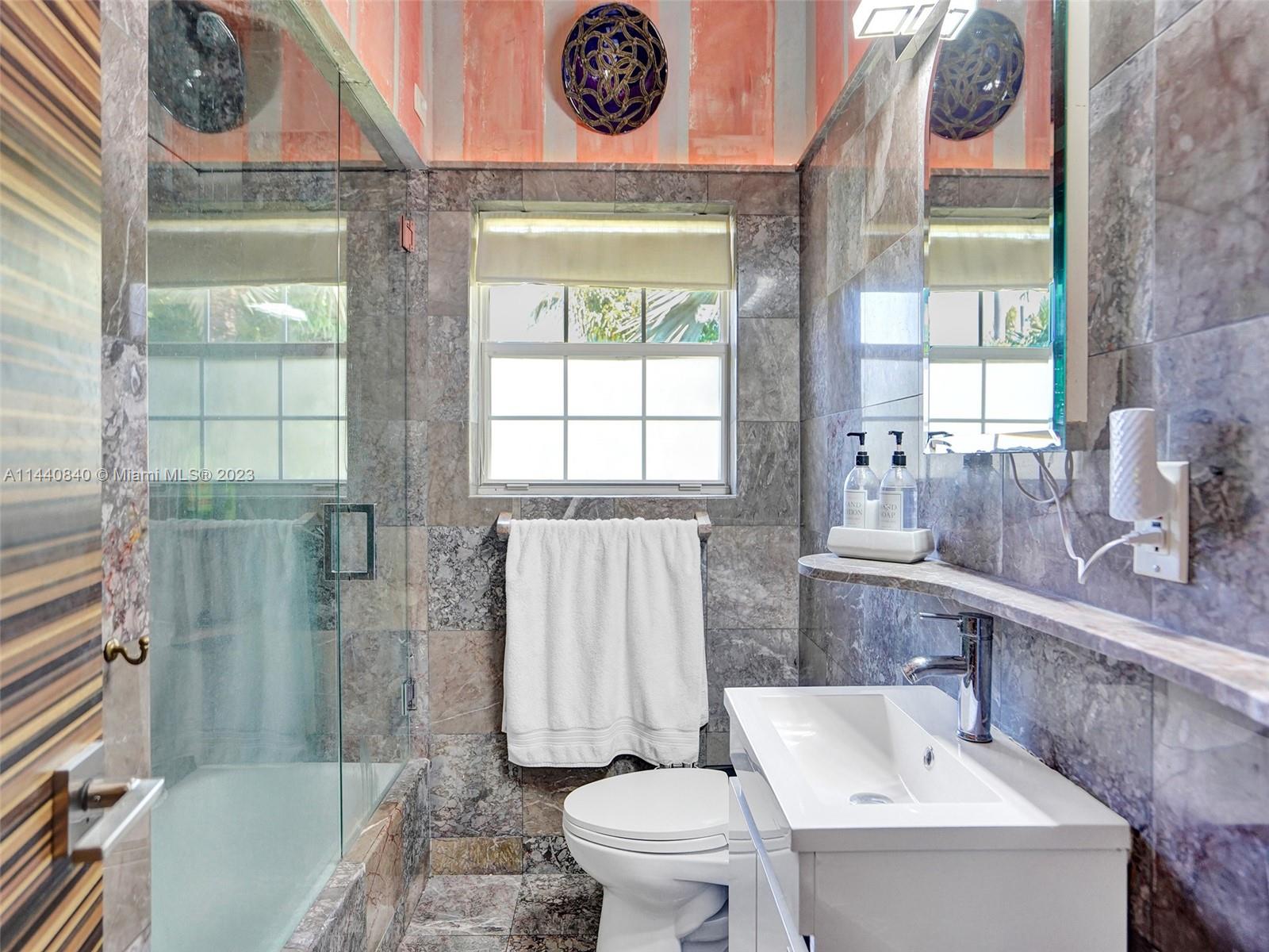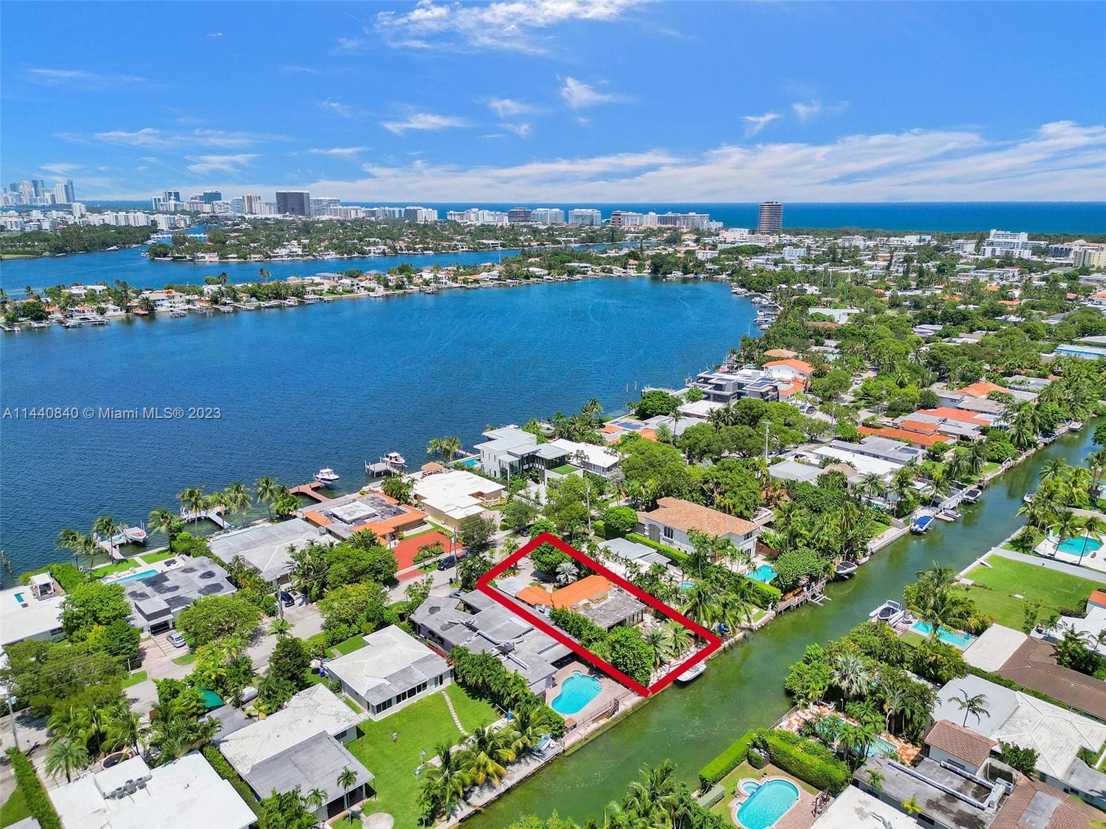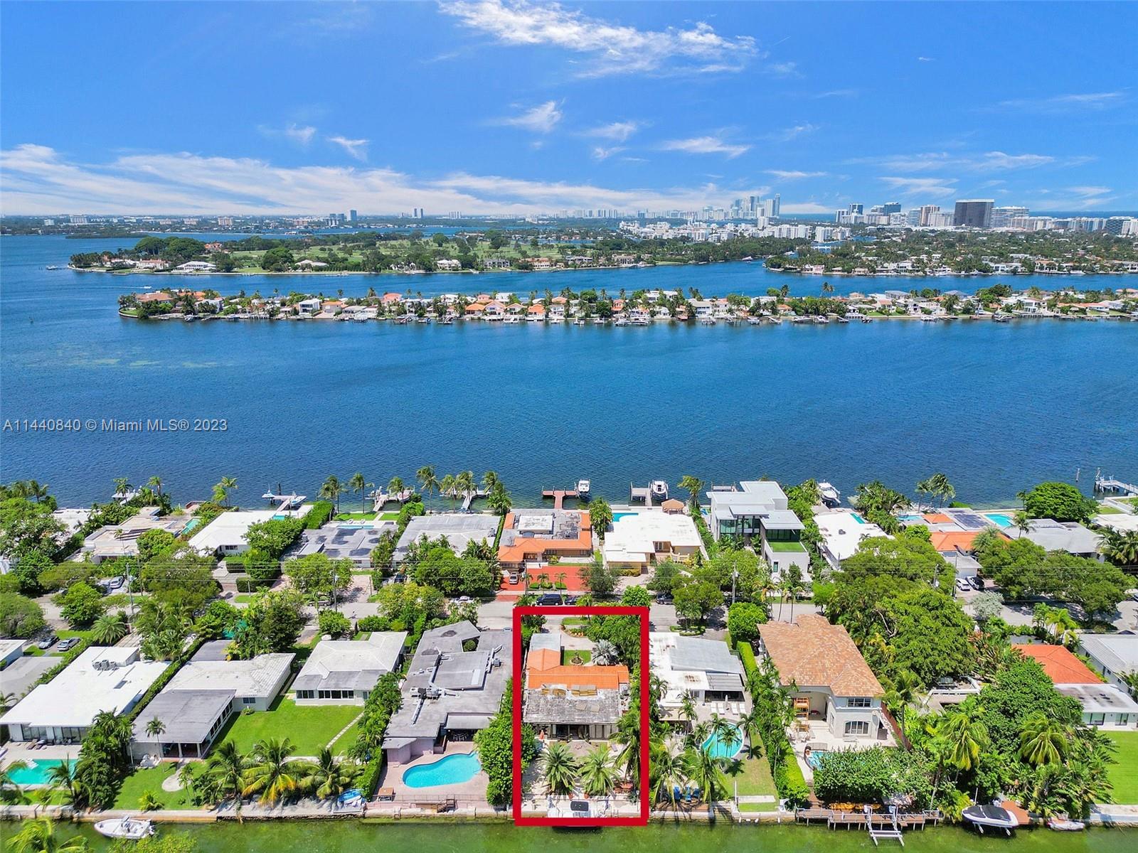 Unbelievably sought after Biscayne Point 60 ft waterfront smart home with 9ft ceilings, boatlift and only 1 bridge to the bay & ocean! Mid-Century Villa meets Moroccan Mosaic flair! Over $500K in renovations include impact windows, Bamboo kitchen, all 4 ensuite baths, full home theater projection & sound system, porcelain & field stone floors, custom solid wood doors, & electrical hurricane shutters, sprinklers & up lighting. Entertainers delight in your tropical oasis with covered tiki hut for 10 people, dining table, outdoor summer kitchen with BBQ, pizza oven. Investors will love the studio efficiency rented at $1,800 per month or use it as a guest, in-law or teenager suite! Brand new roof being installed with the potential to add 1250 sft of rooftop pleasure! All furniture negotiable.