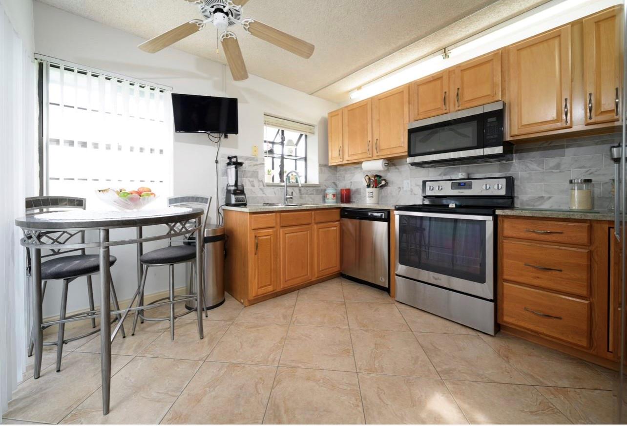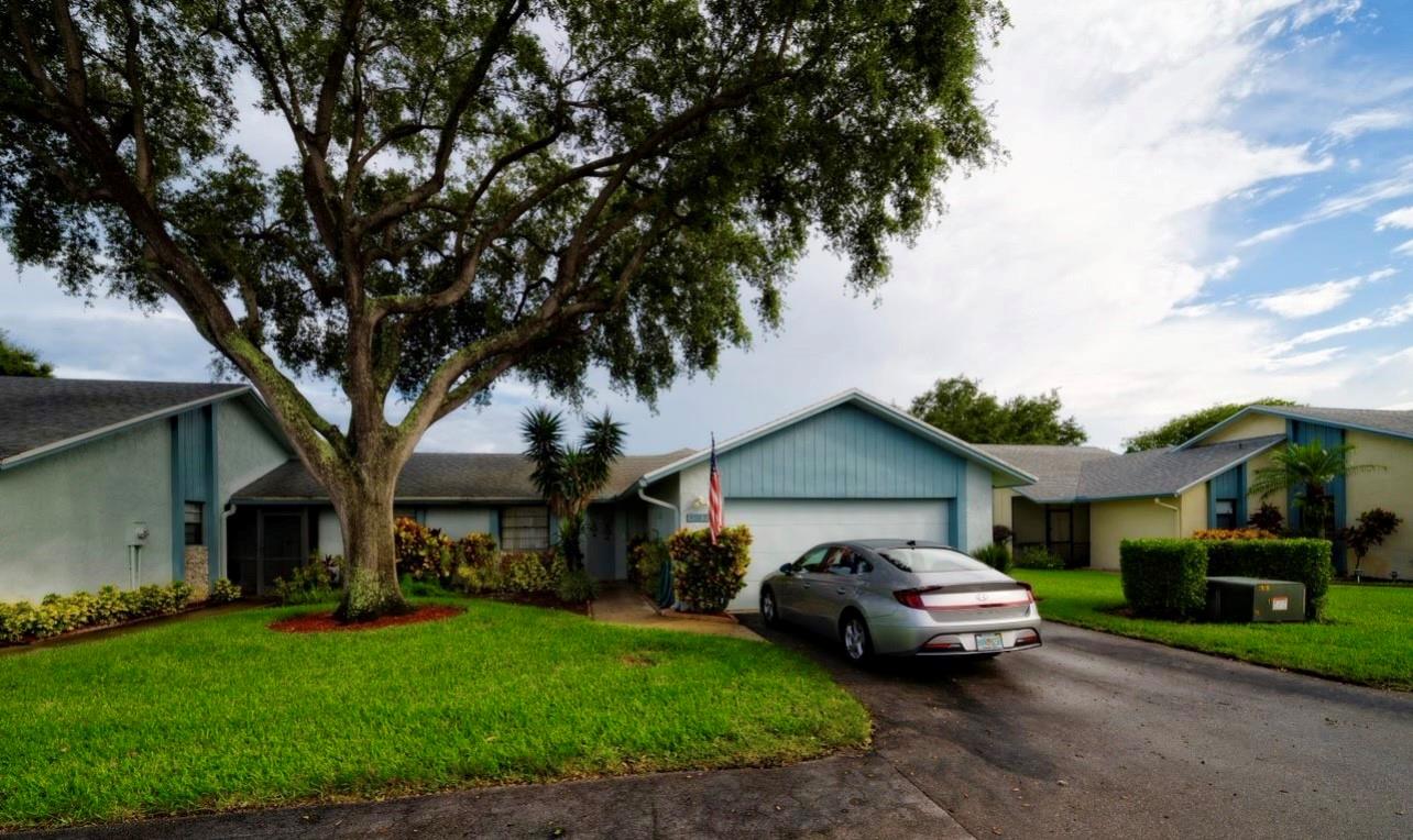Nicely updated 3/2 end unit villa with 2 car full size garage located Central Boca Raton. Unit has tons of natural light throughout along a remodeled kitchen. New AC unit, newer Washer/Dryer. The 3 bedrooms are very spacious with tile floor throughout. 2 outdoor areas include a beautiful atrium where you can relax and enjoy some fresh air and a large screened in patio. This end unit has great privacy and is located just minutes from fine shopping and restaurants, great schools, perfect for a family! River Oaks features a community pool, includes cable, lawn maintenance, and covers your roof.