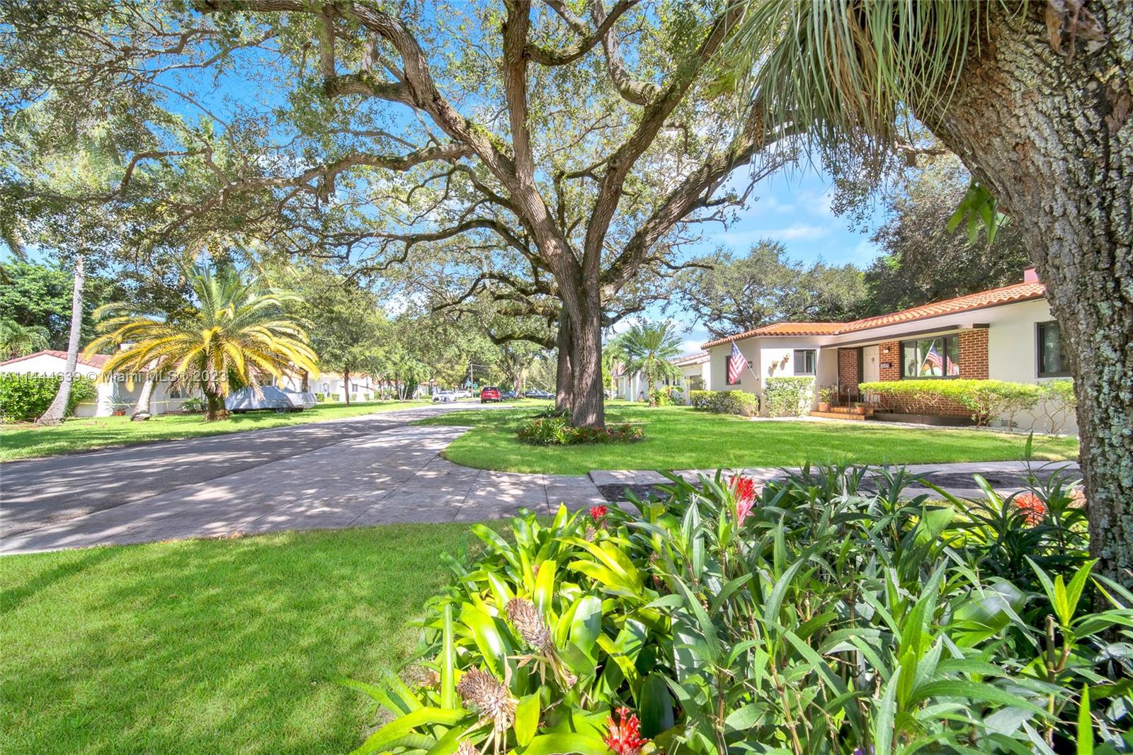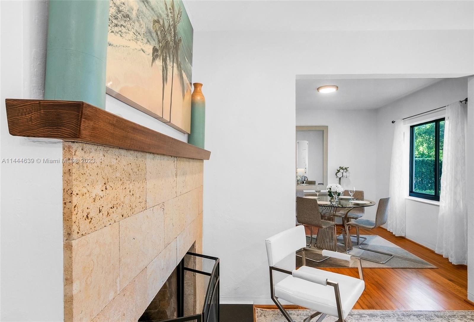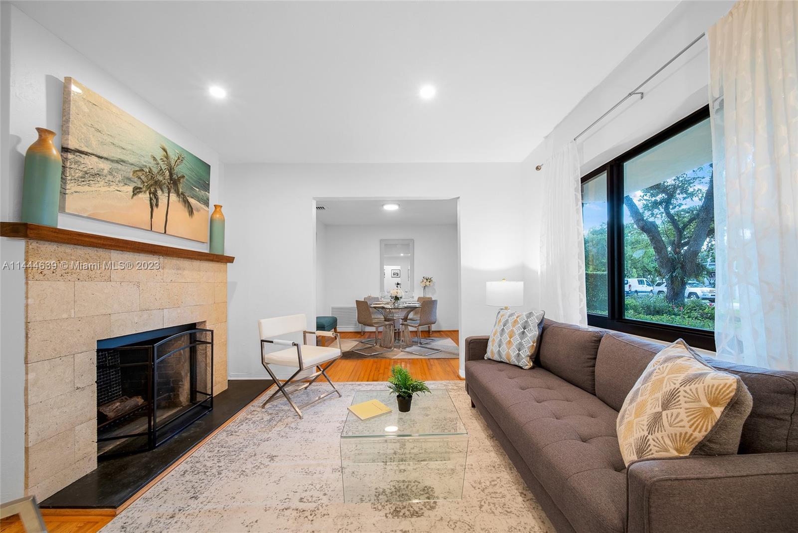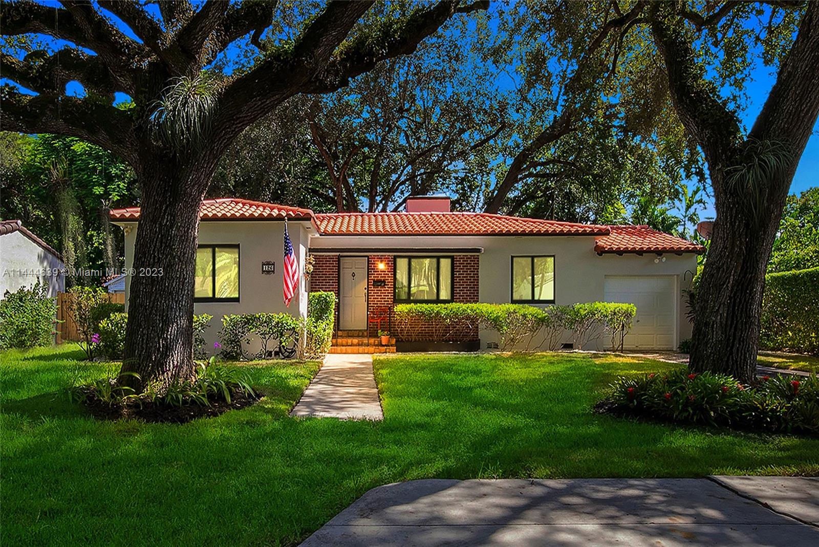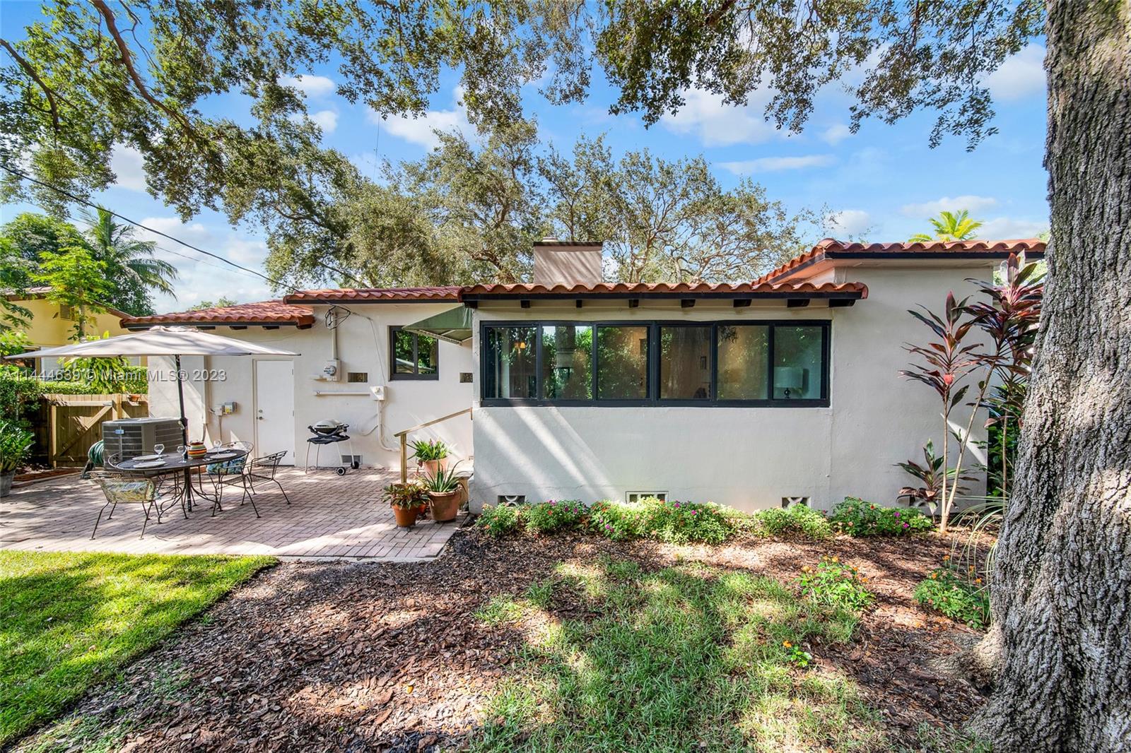 Welcome to Six Oaks, in the heart of Miami Shores. You’ll feel like you’re living in your own private sanctuary in this meticulously maintained and smartly updated early mid-century home, surrounded by six breathtaking majestic live oak trees. Enter into desirable open flow living with natural hardwood floors, working fireplace, separate dining room, generous kitchen and grand rear media-sun room opening to the lush rear gardens. A stately starter home or clever down-sizer, with two spacious bedrooms, two full baths, and a one car garage. Updates include new tile roof, upgraded electrical, impact windows-doors and brand-new appliances, with plenty of upside! Tranquility awaits in this must-see home on a quiet tree-lined cul-de-sac, a few blocks to downtown Miami Shores in a non-flood zone.