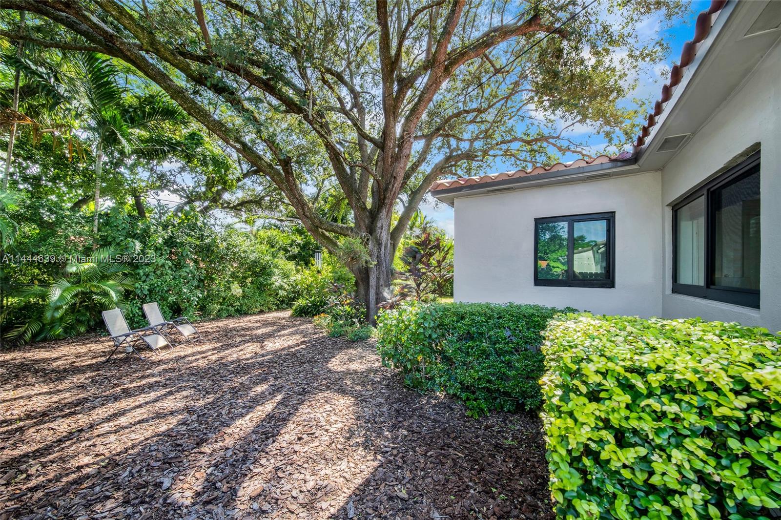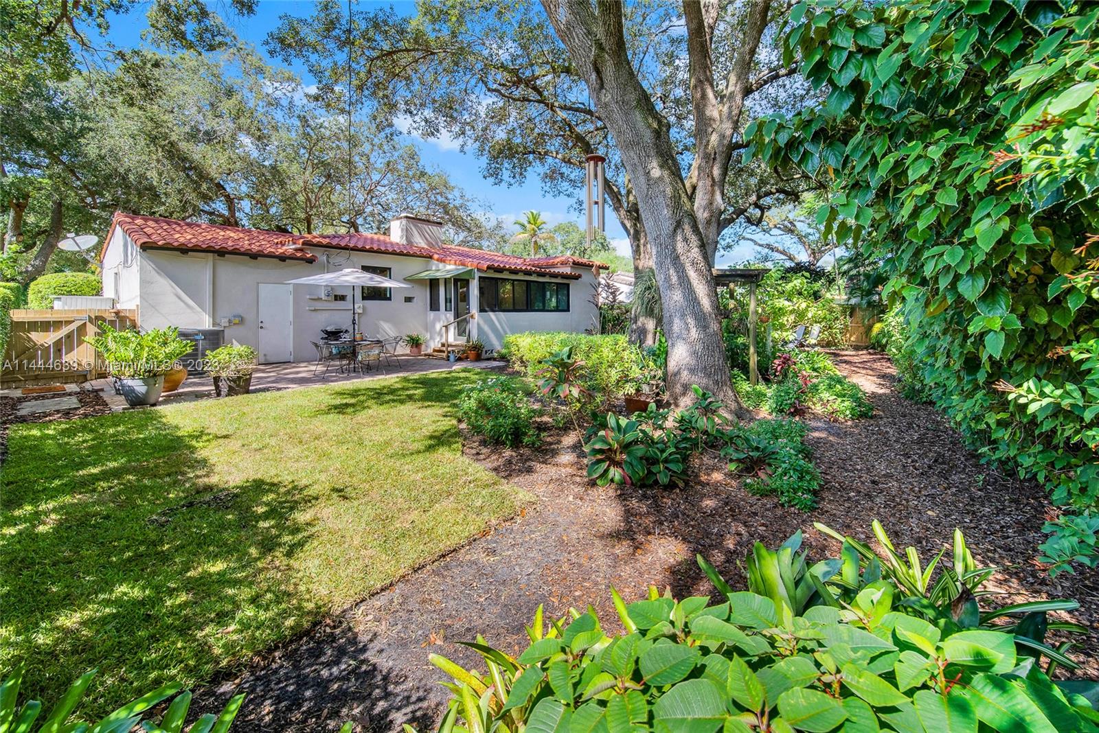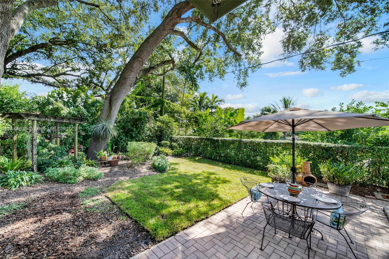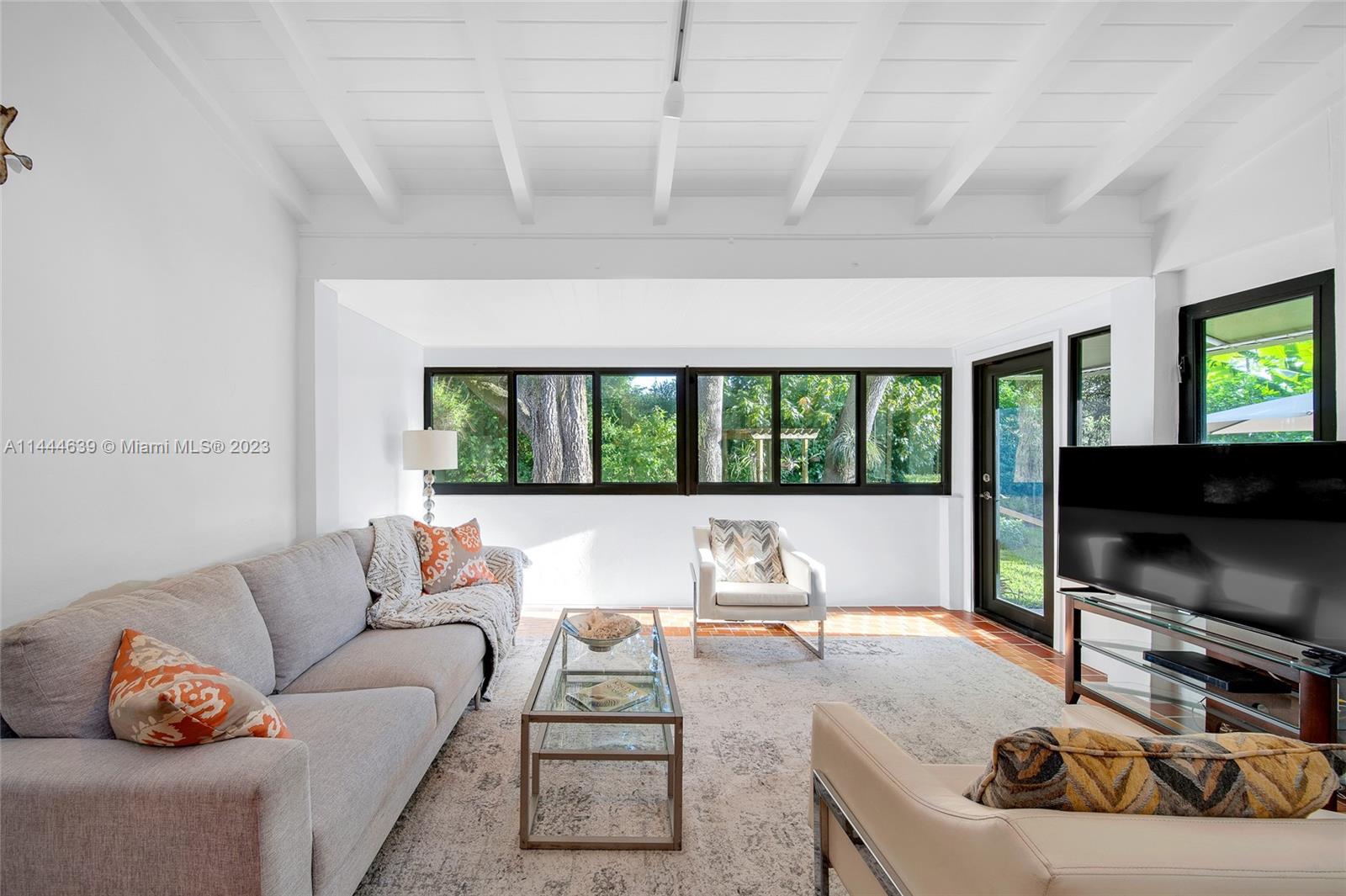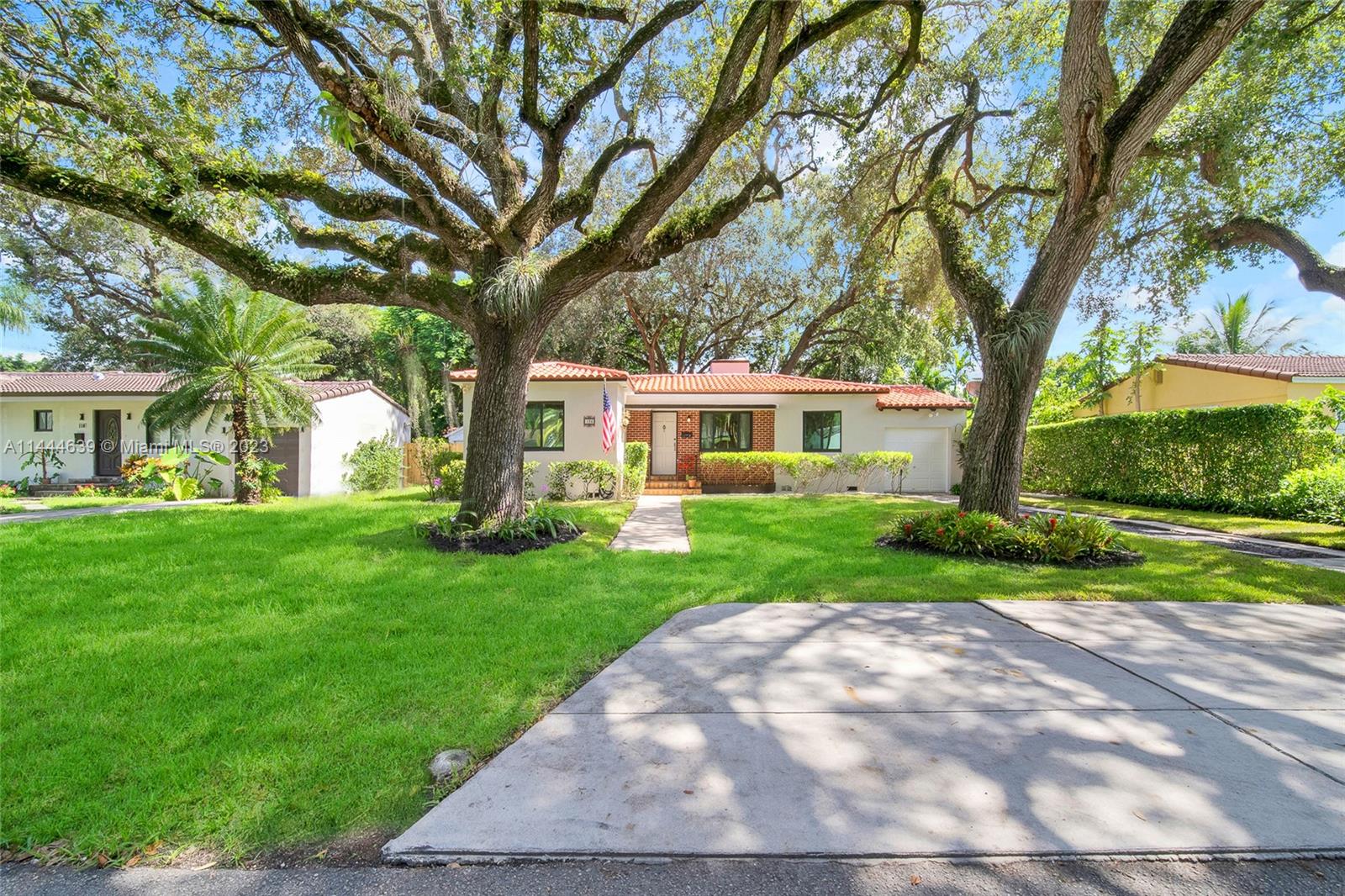 Welcome to Six Oaks, in the heart of Miami Shores. You’ll feel like you’re living in your own private sanctuary in this meticulously maintained and smartly updated early mid-century home, surrounded by six breathtaking majestic live oak trees. Enter into desirable open flow living with natural hardwood floors, working fireplace, separate dining room, generous kitchen and grand rear media-sun room opening to the lush rear gardens. A stately starter home or clever down-sizer, with two spacious bedrooms, two full baths, and a one car garage. Updates include new tile roof, upgraded electrical, impact windows-doors and brand-new appliances, with plenty of upside! Tranquility awaits in this must-see home on a quiet tree-lined cul-de-sac, a few blocks to downtown Miami Shores in a non-flood zone.