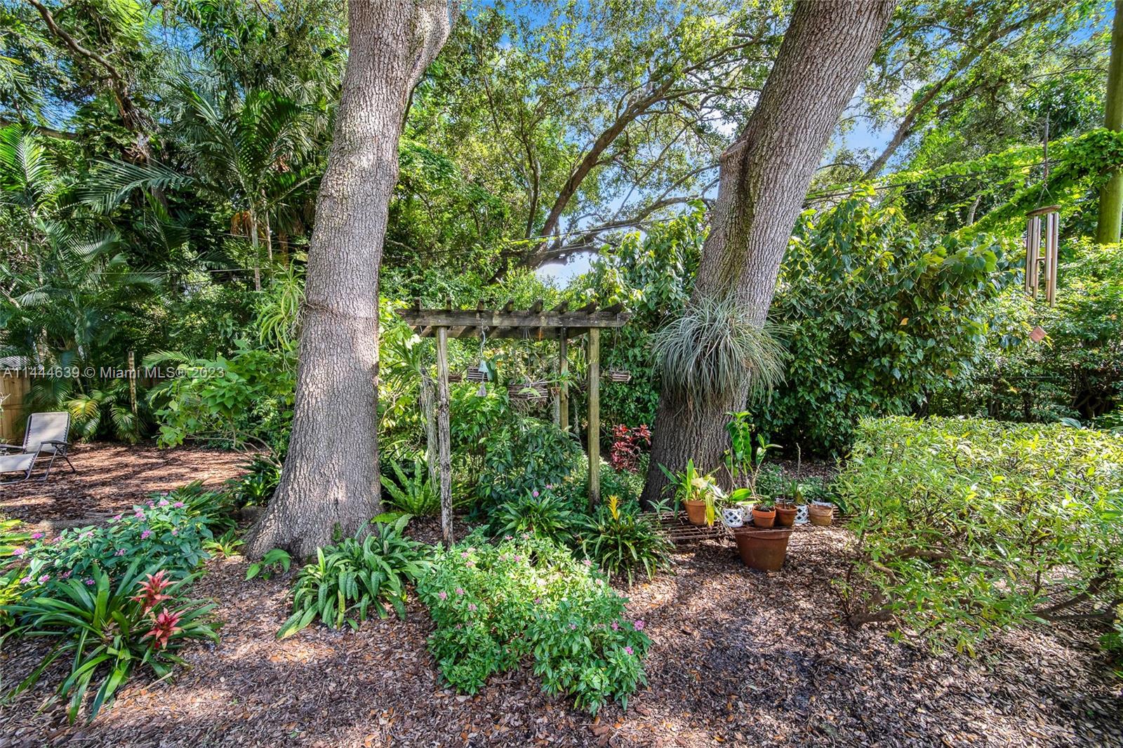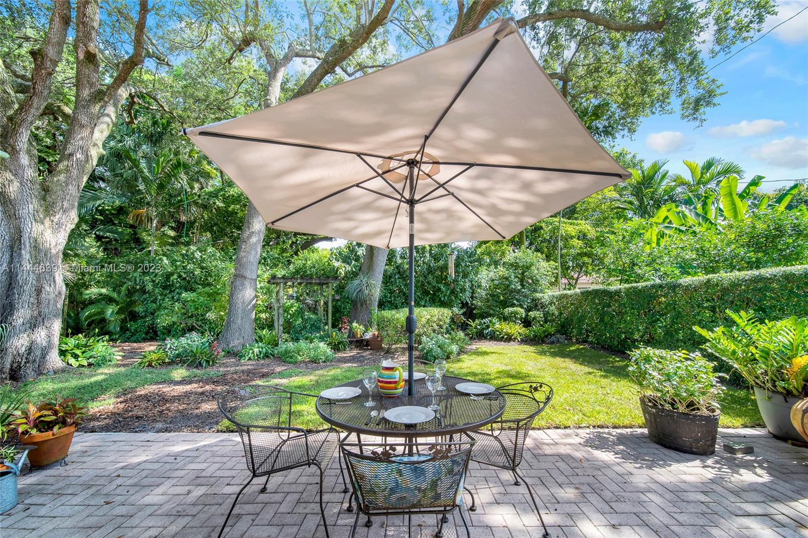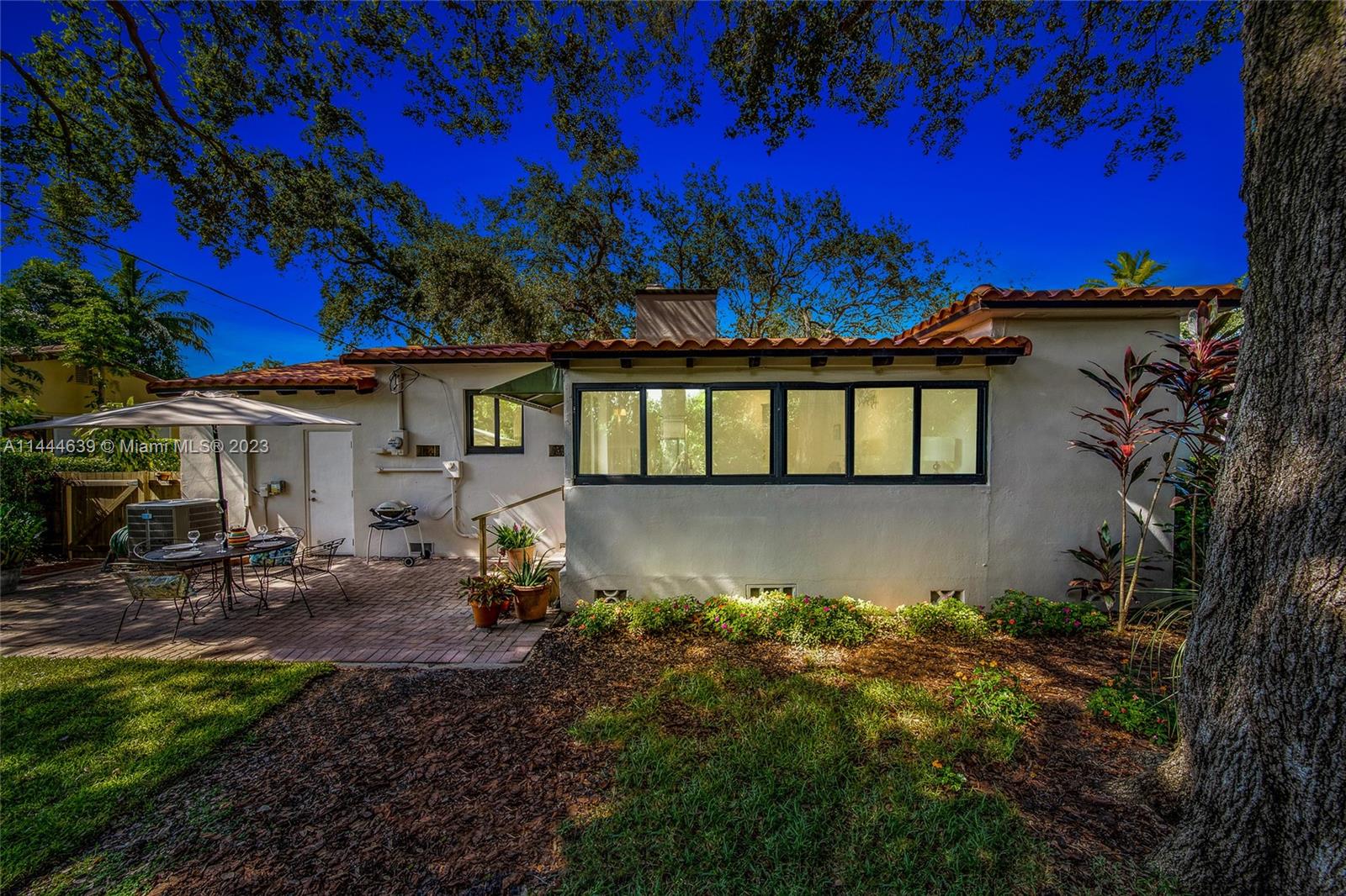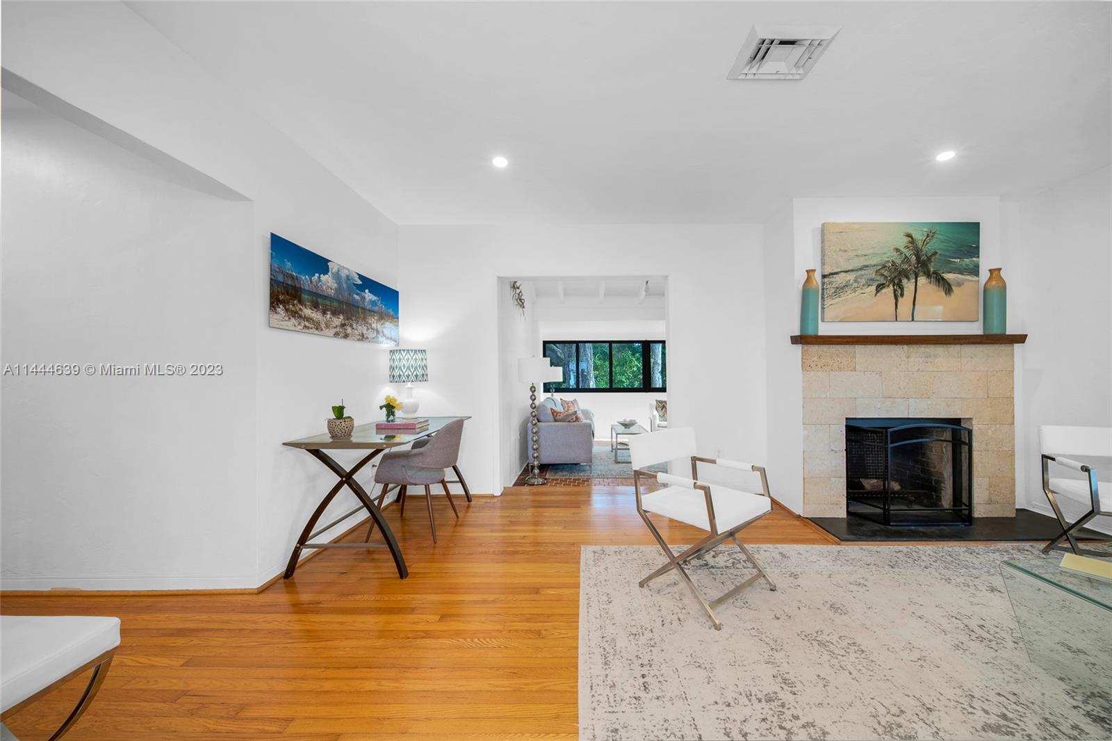 Welcome to Six Oaks, in the heart of Miami Shores. You’ll feel like you’re living in your own private sanctuary in this meticulously maintained and smartly updated early mid-century home, surrounded by six breathtaking majestic live oak trees. Enter into desirable open flow living with natural hardwood floors, working fireplace, separate dining room, generous kitchen and grand rear media-sun room opening to the lush rear gardens. A stately starter home or clever down-sizer, with two spacious bedrooms, two full baths, and a one car garage. Updates include new tile roof, upgraded electrical, impact windows-doors and brand-new appliances, with plenty of upside! Tranquility awaits in this must-see home on a quiet tree-lined cul-de-sac, a few blocks to downtown Miami Shores in a non-flood zone.