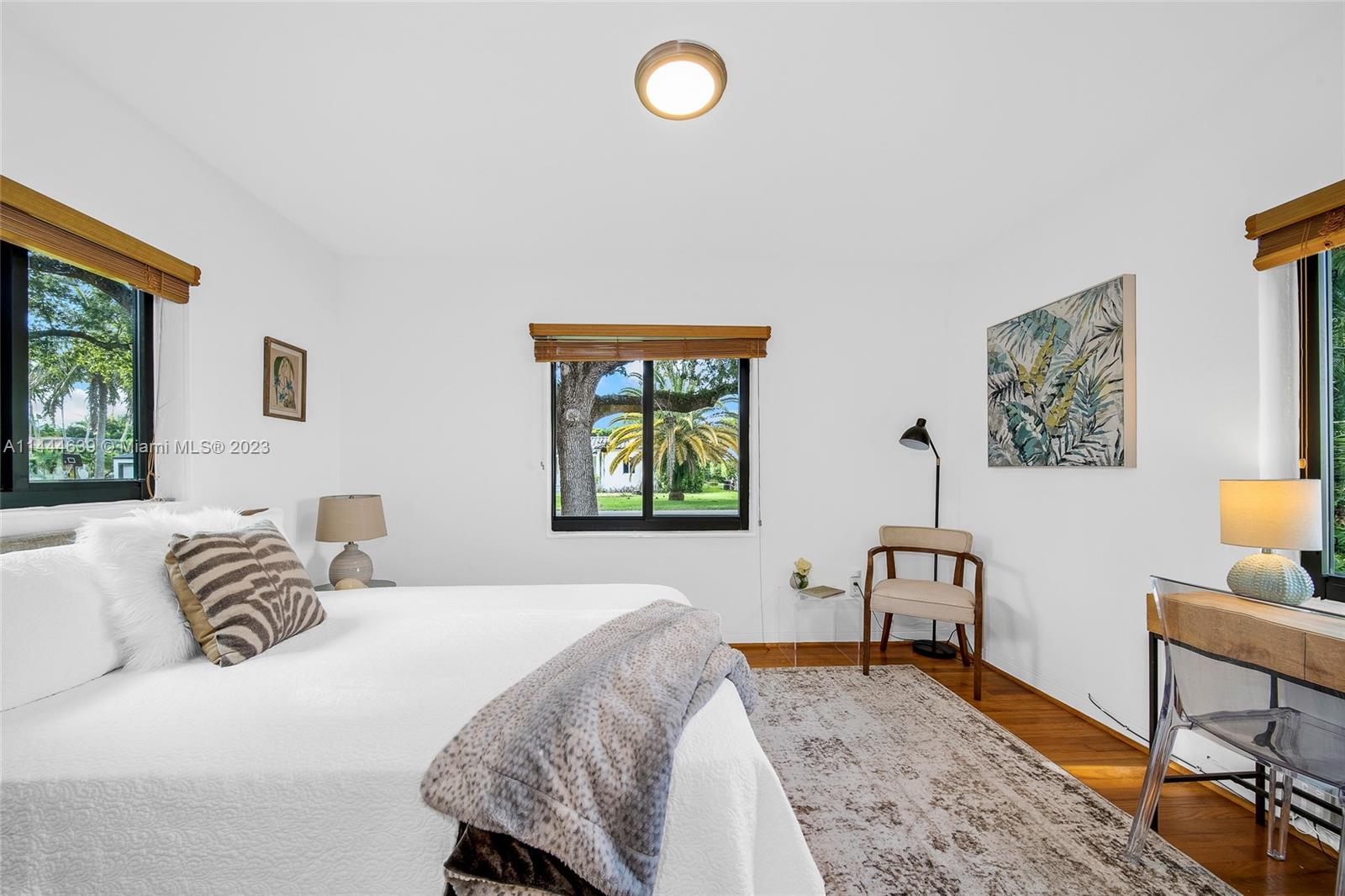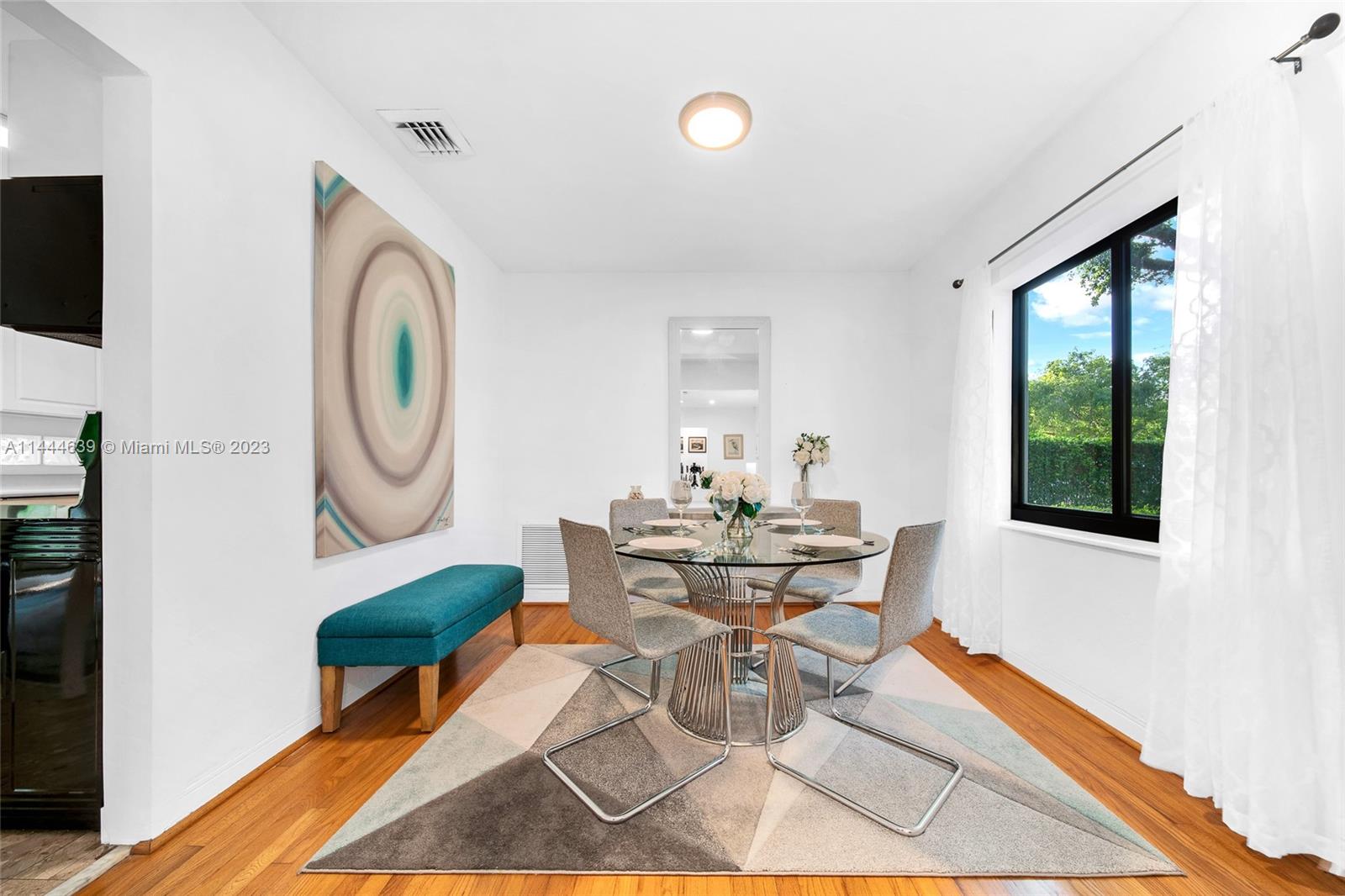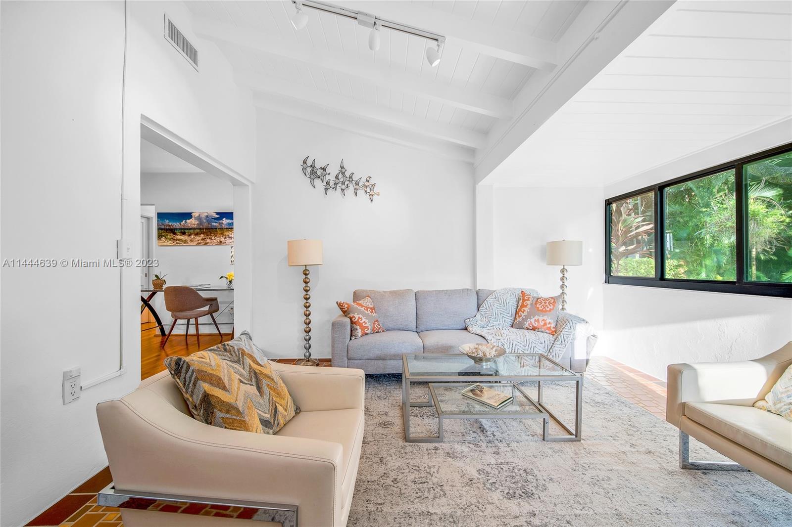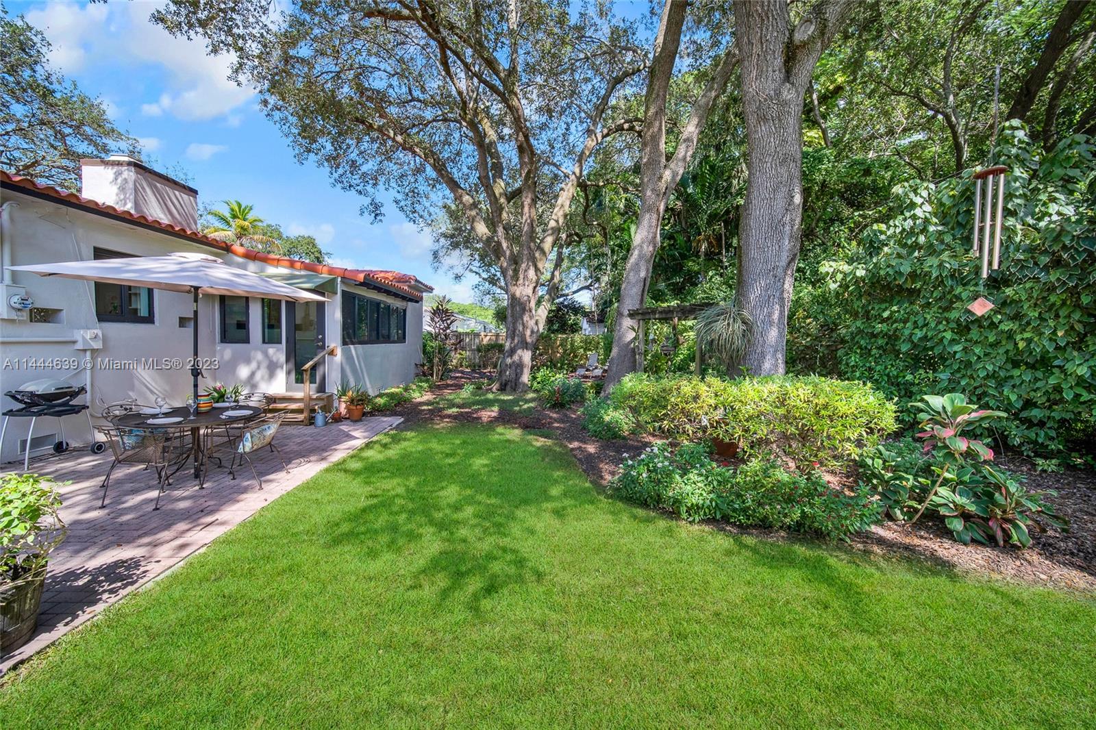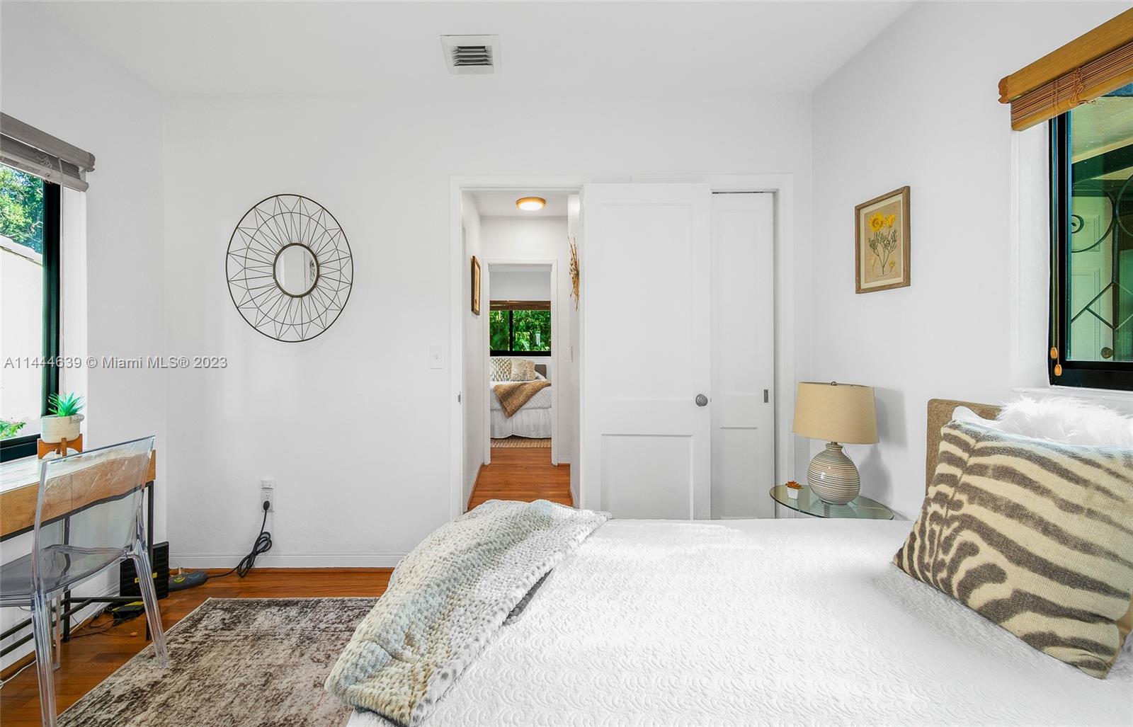 Welcome to Six Oaks, in the heart of Miami Shores. You’ll feel like you’re living in your own private sanctuary in this meticulously maintained and smartly updated early mid-century home, surrounded by six breathtaking majestic live oak trees. Enter into desirable open flow living with natural hardwood floors, working fireplace, separate dining room, generous kitchen and grand rear media-sun room opening to the lush rear gardens. A stately starter home or clever down-sizer, with two spacious bedrooms, two full baths, and a one car garage. Updates include new tile roof, upgraded electrical, impact windows-doors and brand-new appliances, with plenty of upside! Tranquility awaits in this must-see home on a quiet tree-lined cul-de-sac, a few blocks to downtown Miami Shores in a non-flood zone.