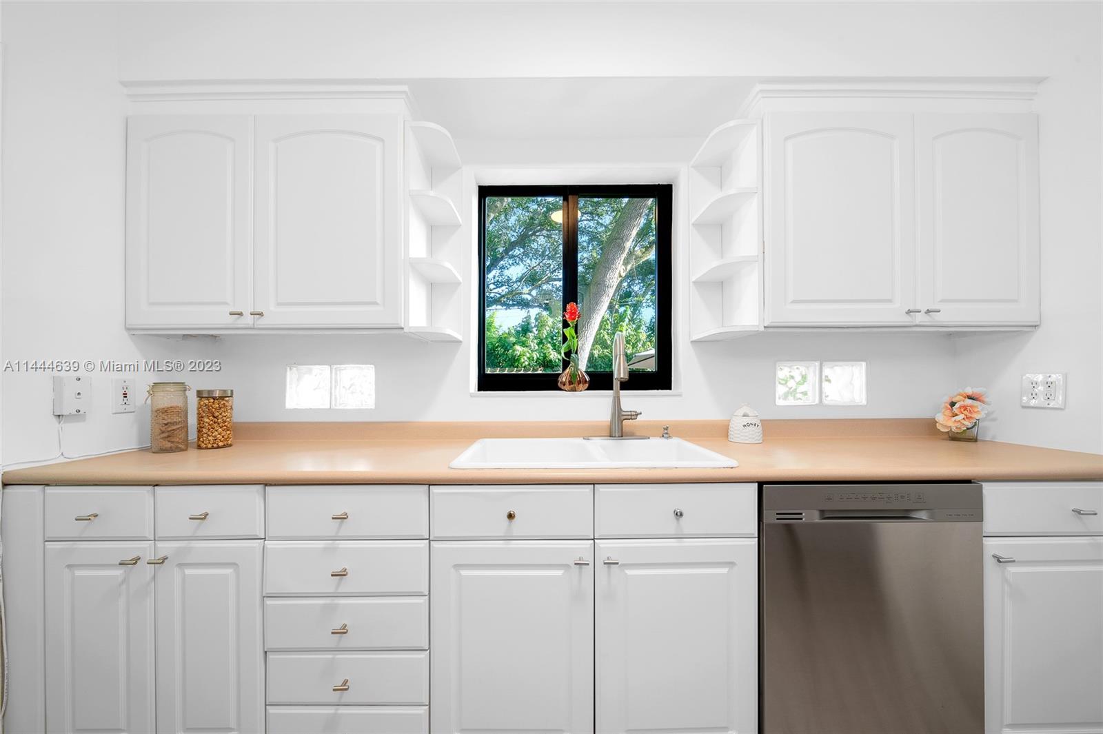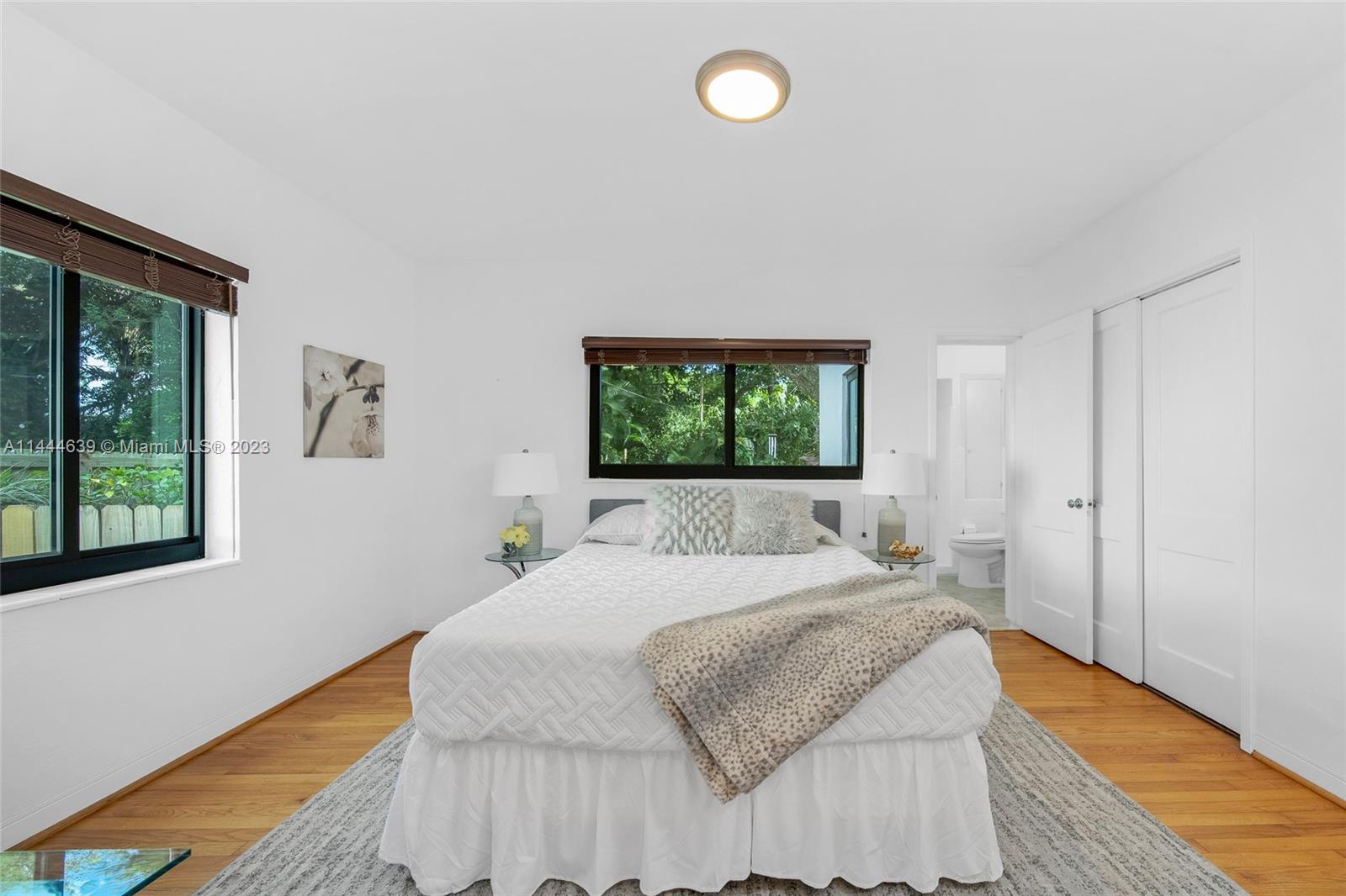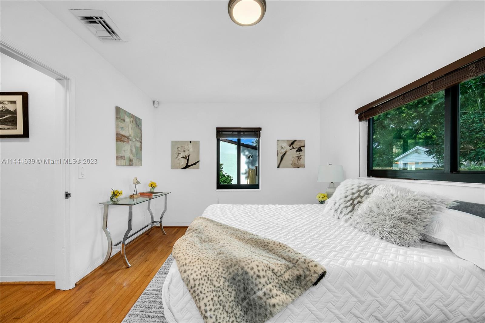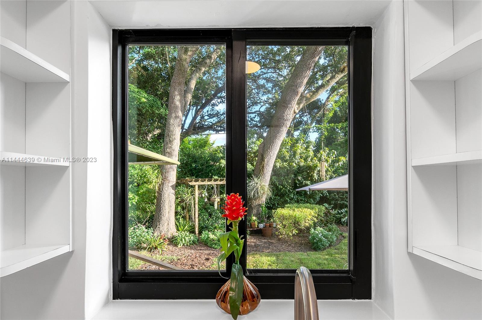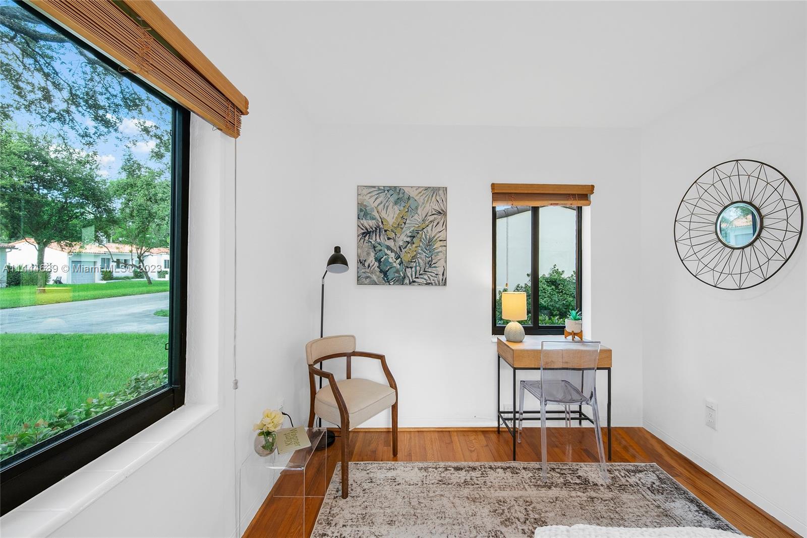 Welcome to Six Oaks, in the heart of Miami Shores. You’ll feel like you’re living in your own private sanctuary in this meticulously maintained and smartly updated early mid-century home, surrounded by six breathtaking majestic live oak trees. Enter into desirable open flow living with natural hardwood floors, working fireplace, separate dining room, generous kitchen and grand rear media-sun room opening to the lush rear gardens. A stately starter home or clever down-sizer, with two spacious bedrooms, two full baths, and a one car garage. Updates include new tile roof, upgraded electrical, impact windows-doors and brand-new appliances, with plenty of upside! Tranquility awaits in this must-see home on a quiet tree-lined cul-de-sac, a few blocks to downtown Miami Shores in a non-flood zone.