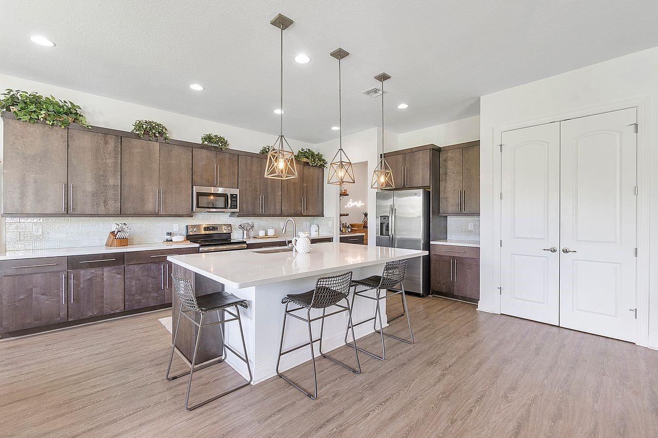 WELCOME HOME to THIS STUNNING HOME in GATED CORAL LAGO! This HOME still FEELS BRAND NEW. Built in 2019, features include a LARGE OPEN KITCHEN w/ 42" CABINETS, HUGE ISLAND, QUARTZ COUNTERS, and S/S APPLIANCES * The 3-BEDROOMS are UPSTAIRS with the 4th room being an OFFICE/DEN located downstairs * This property offers immaculate LANDSCAPING, VOLUME CEILINGS, a FOYER ENTRY and UPGRADED DETAILS such as MOTORIZED BLINDS along the back of the house! You will love the LUXURY VINYL FLOORING downstairs & PLUSH CARPET upstairs * MAIN BEDROOM features an EN-SUITE BATH, DOUBLE SINKS, OVERSIZED WALK-IN SHOWER, and WALK-IN CLOSET * LAUNDRY ROOM UPSTAIRS * PRIVATELY LANDSCAPED BACKYARD, with WATER VIEW, and COVERED PAVER PATIO * Amenities: CLUBHOUSE, COMMUNITY POOL, GYM, and PLAYGROUND, HOA covers LAWN!