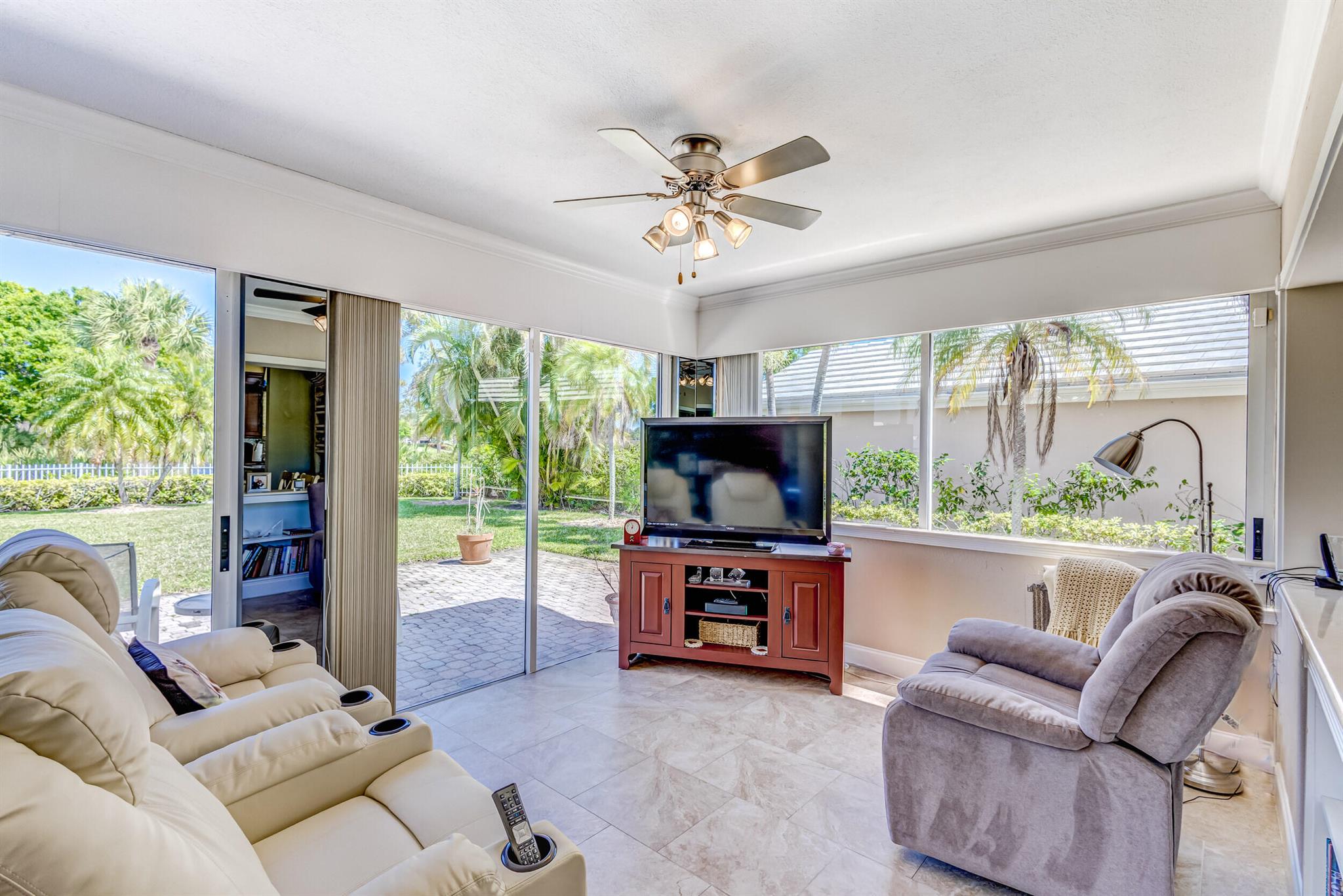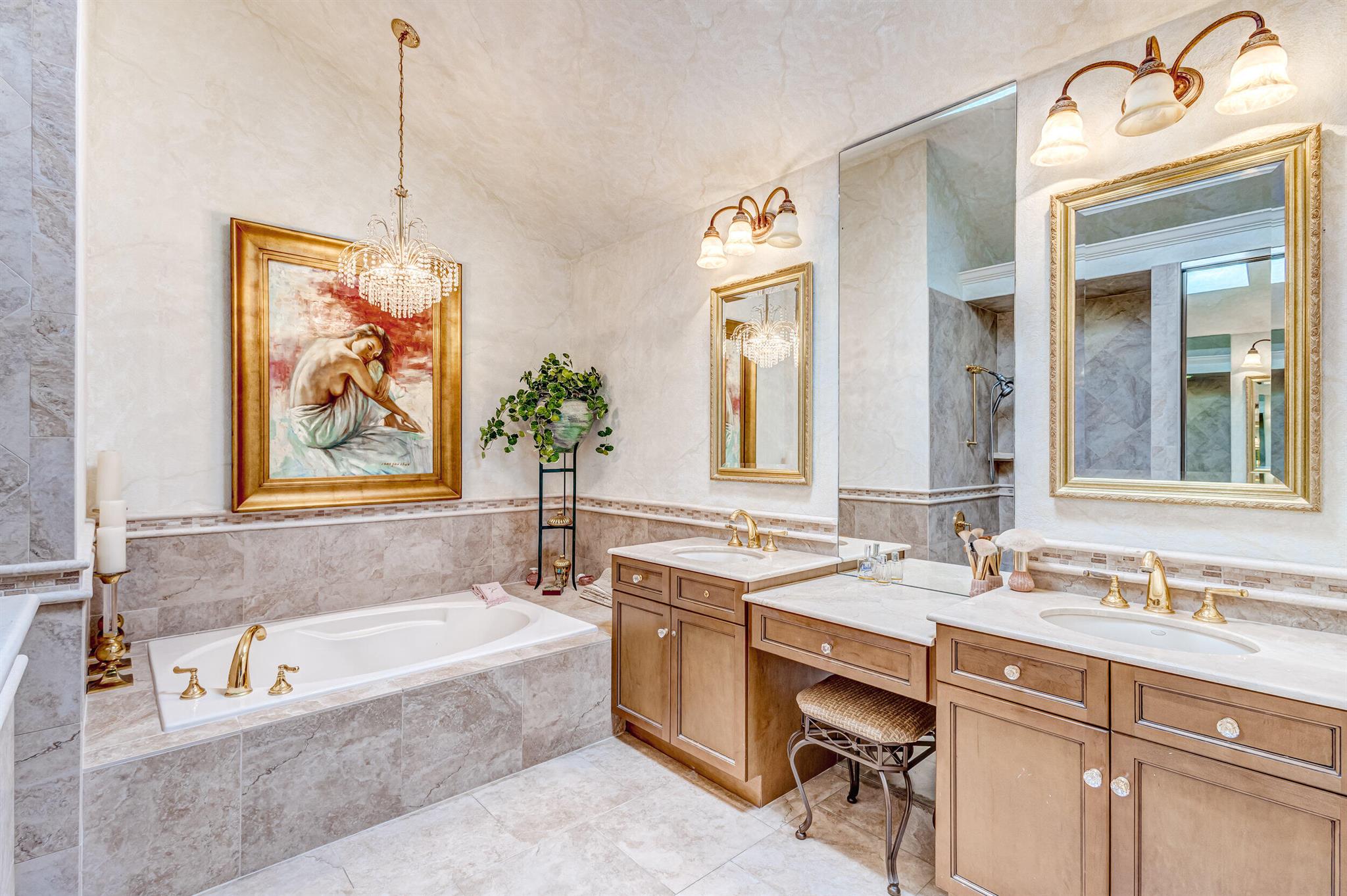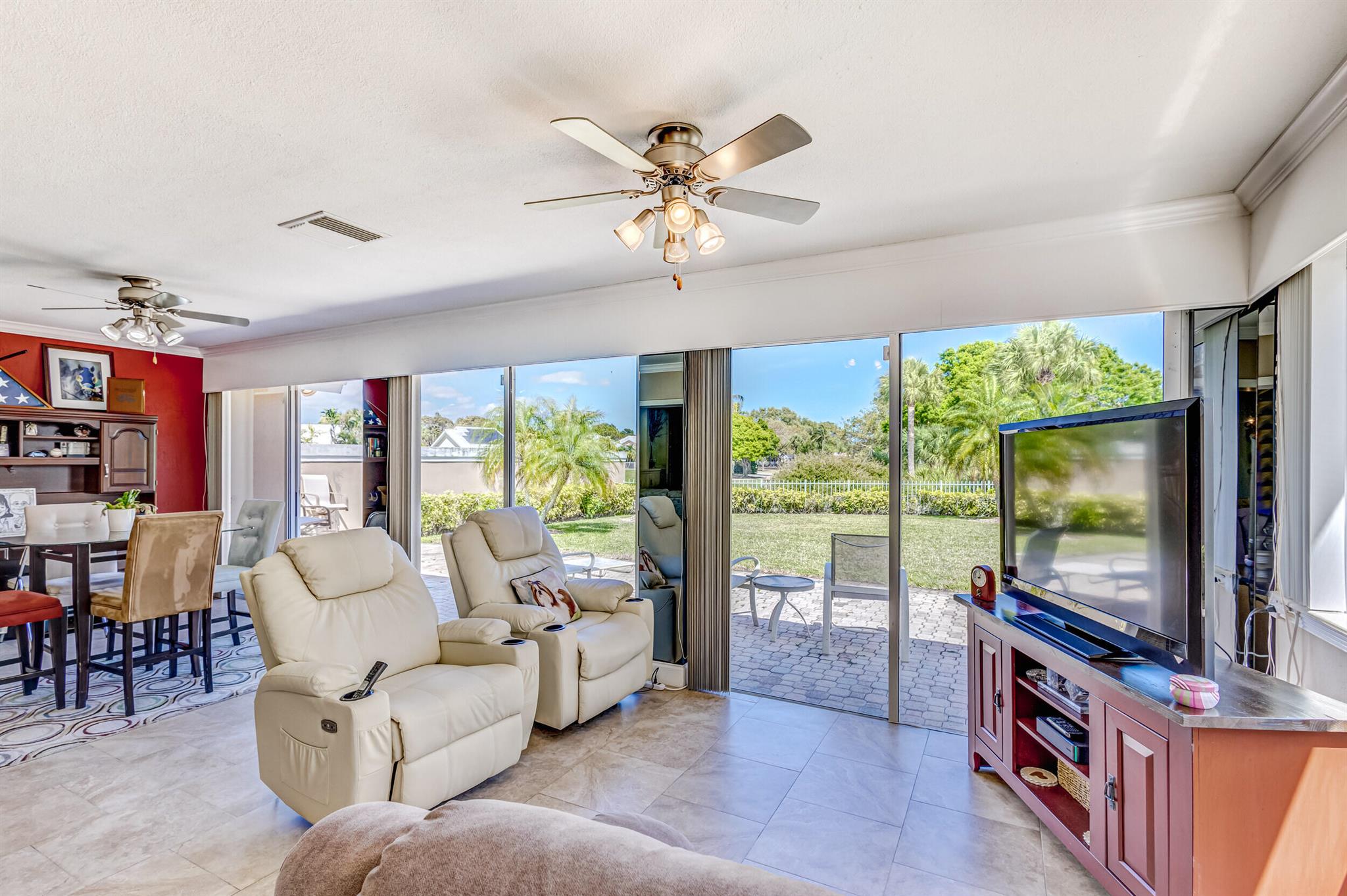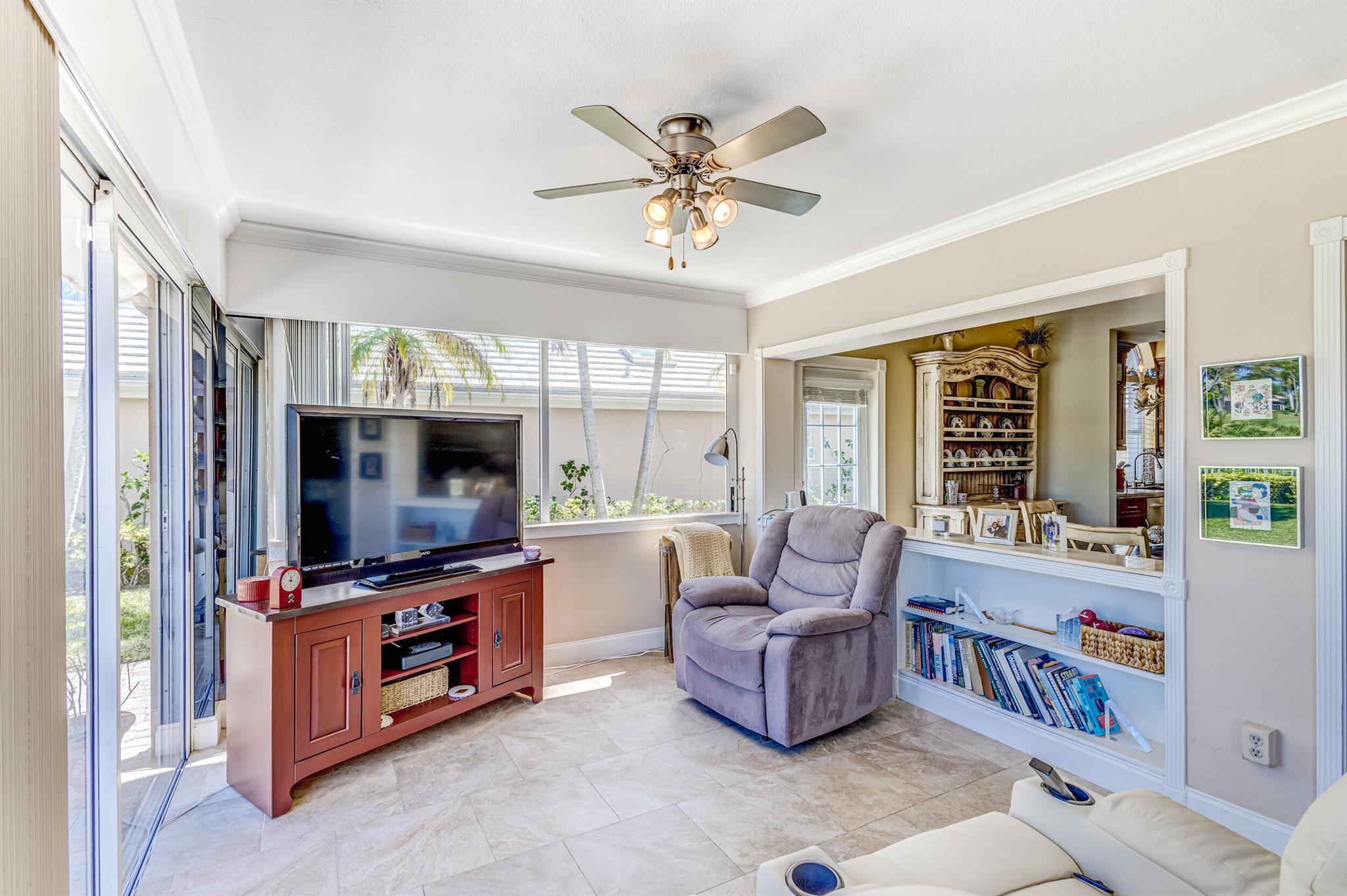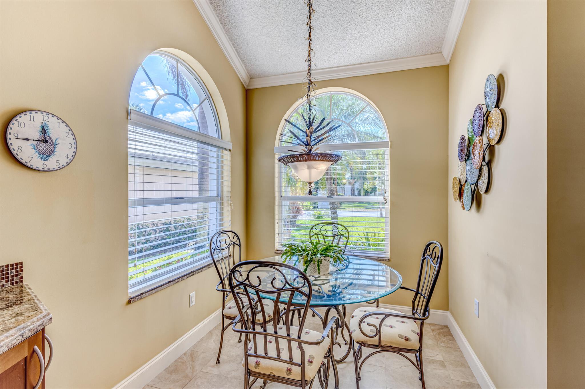 Lovely renovated home nestled on private OVERSIZED lot with sweeping views of the golf course and lake! This incredible single-story residence features 3 bedrooms, 2 full bathrooms, 2 car garage, extended lanai for added living area, located on one of the biggest lots in Saratoga Bay! Impressive upon entry, this open floor plan is awash with tons of sunlight and natural hues, vaulted ceilings, crown molding, beautiful tile inlay design at foyer, and separate dining and cozy breakfast areas. Spacious kitchen perfectly equipped with custom wood cabinets encased in matching crown, Kitchen Aid stainless steel appliances including French door refrigerator, granite counters and decorative tile backsplash. Generous living/great room offers built-in shelves and entertainment center, mirrors,