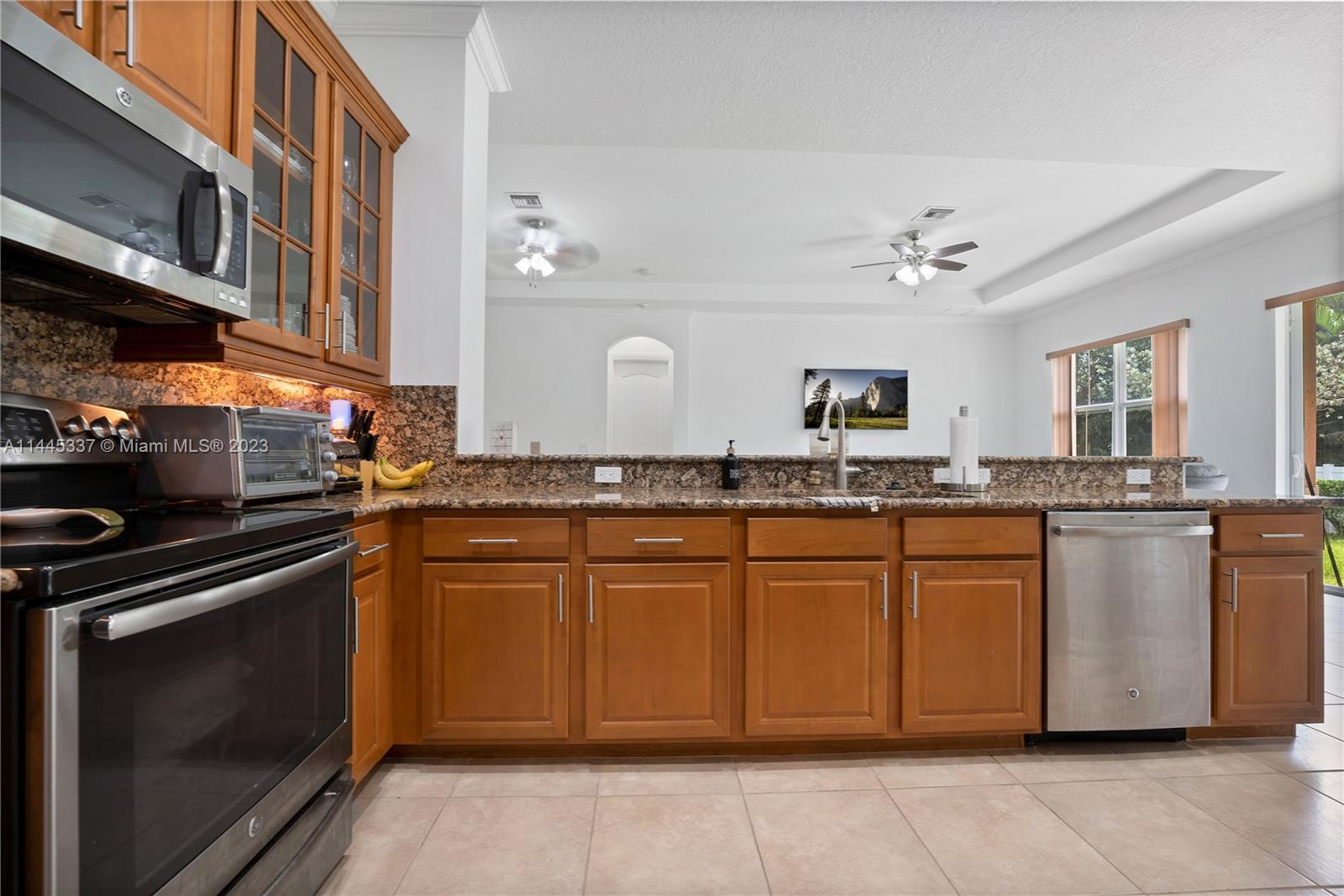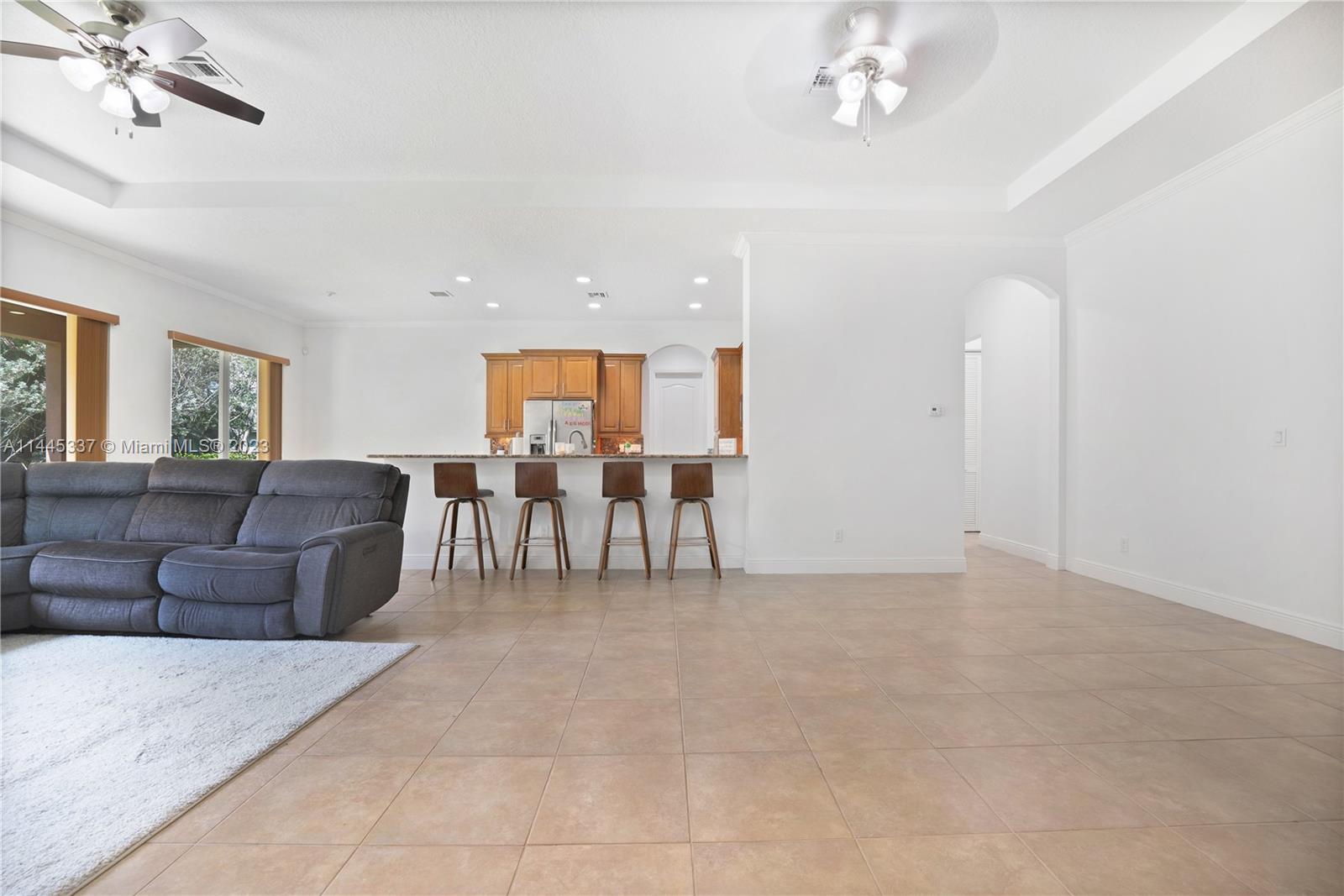Spacious move-in ready home located in the heart of Davie. Open space living room area and open kitchen with stainless steel appliances. Ceiling fans all throughout the home. Fenced backyard. Master bedroom has walk in his/hers closet, bathroom has his/hers sink, a soaking tub, and stand alone shower. Located on a corner lot surrounded by stunning greenery. Laundry room with washer/ dryer and storage space. Small room at the entrance of the home can be used as an extra bedroom/ office. Seminole Hard Rock Hotel & Casino can be seen from the driveway of the home and it is only a 5 minute drive from the property.
