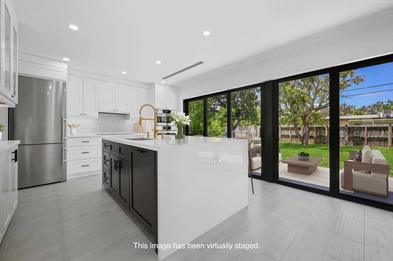 This is a Must-See! Mid-century charm loaded with modern luxuries, offering you the best of both worlds. This home has been completely renovated with high-end finishes & fixtures! Step inside to discover wood-like ceramic floors throughout, complementing the open-concept design. The custom kitchen's top-notch appliances make this home an entertainer’s dream. Looking to extend your living space beyond the confines of the interior? Look no further than the two sets of triple sliders that lead to the expansive backyard with plenty of room for a pool! Embrace the Florida lifestyle as you entertain family and friends or create your personal sanctuary. You can rest easy knowing that the Electrical, Plumbing, and HVAC systems were all redone in 2023. (Impact windows and sliders throughout)
