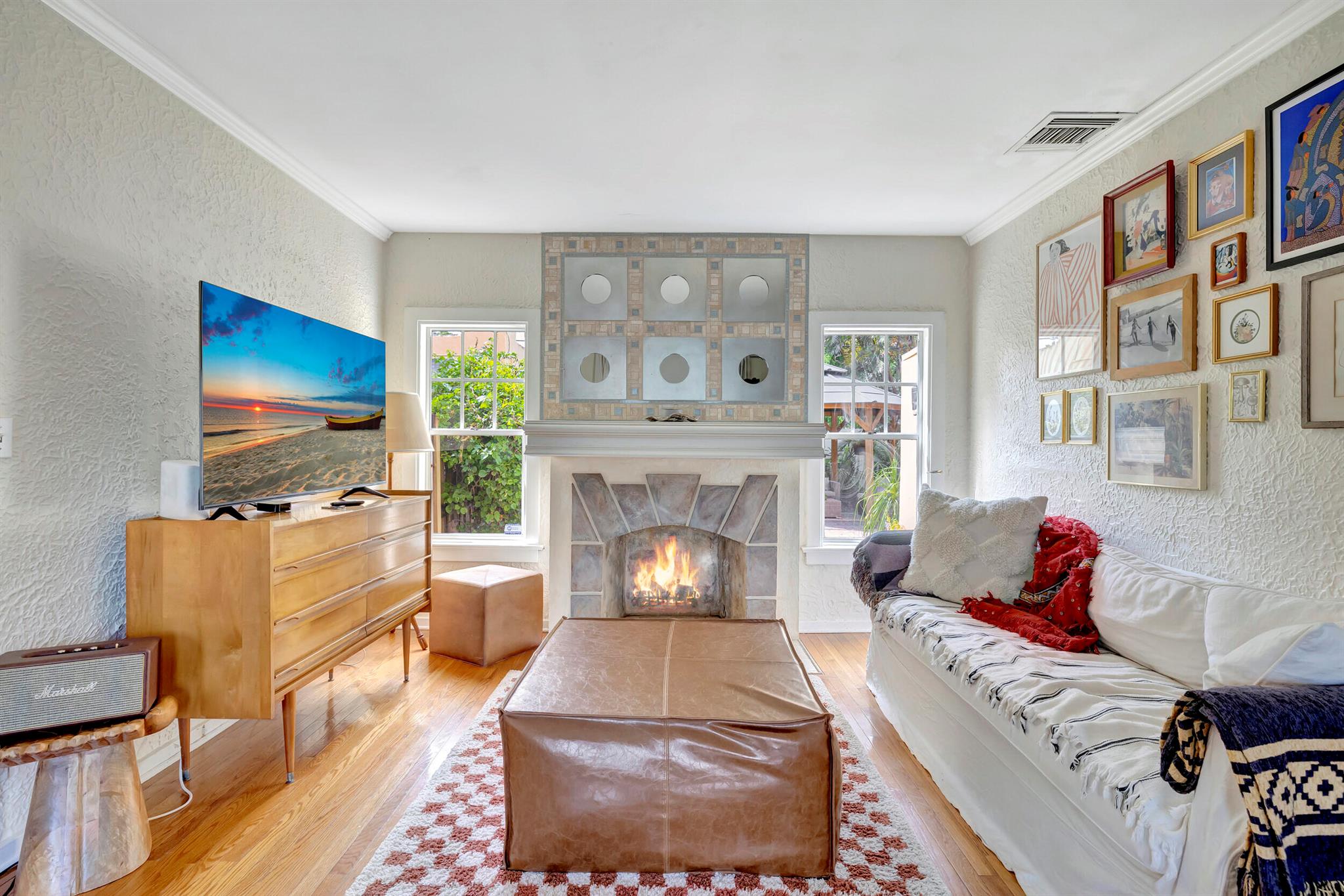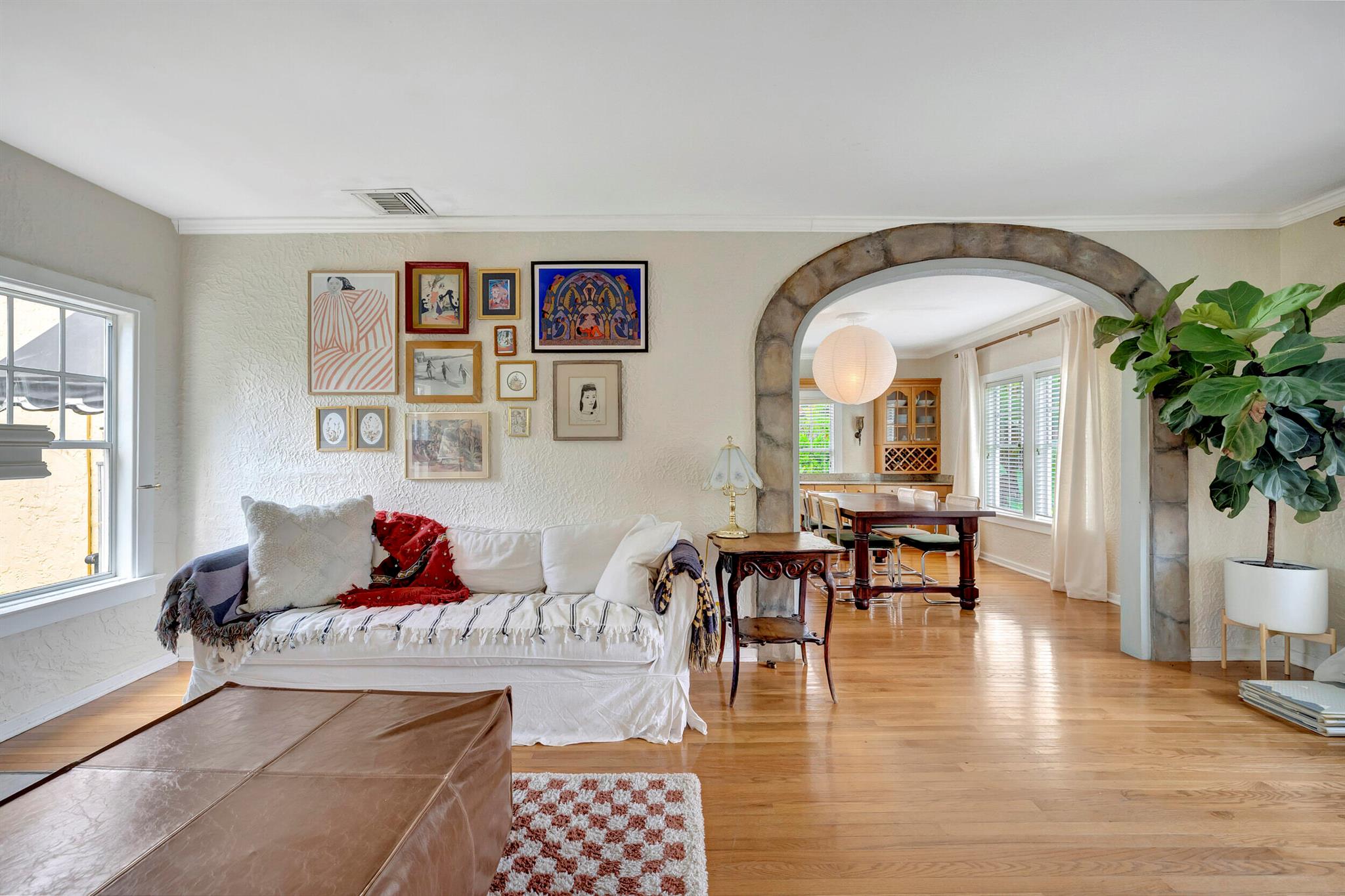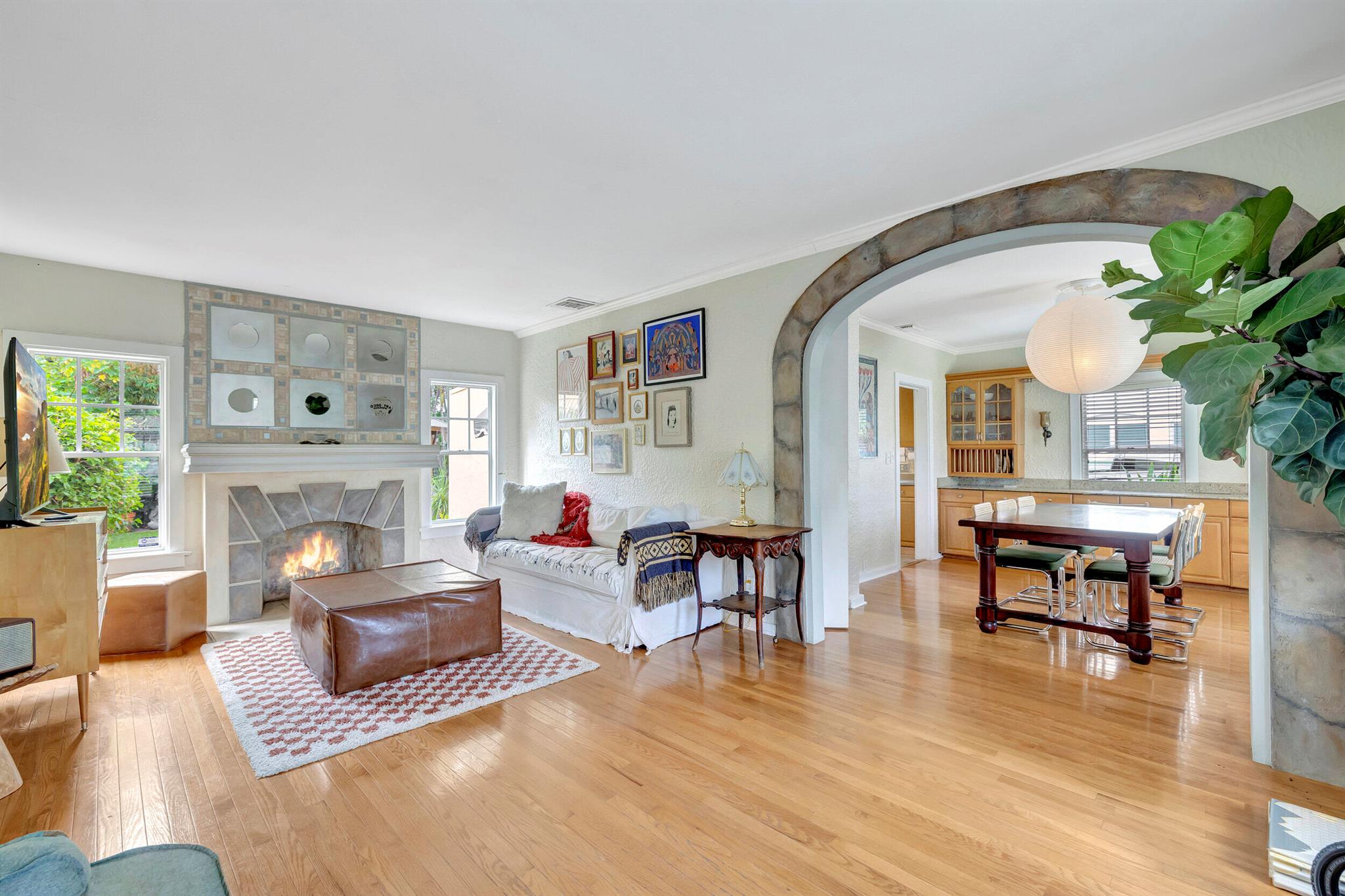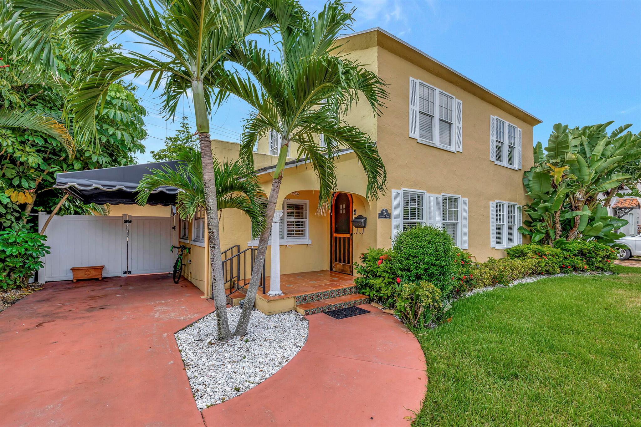 Welcome to a Spanish-inspired sanctuary nestled in the heart of West Palm Beach. This enchanting two-story home captures the essence of timeless elegance, blending the allure of classic architecture with modern comforts. With 3 bedrooms, 2 baths, and a host of remarkable features, this residence offers a truly exceptional living experience. From the moment you approach, the distinctive Spanish design draws you in through arched entryways and intricate detailing showcasing the craftsmanship that defines this home. Step inside to discover a world of warmth and sophistication, where hardwood floors grace both levels, adding an inviting touch to every room.The main living spaces effortlessly flow from one to the next, creating an open and airy atmosphere. The living room has a stone