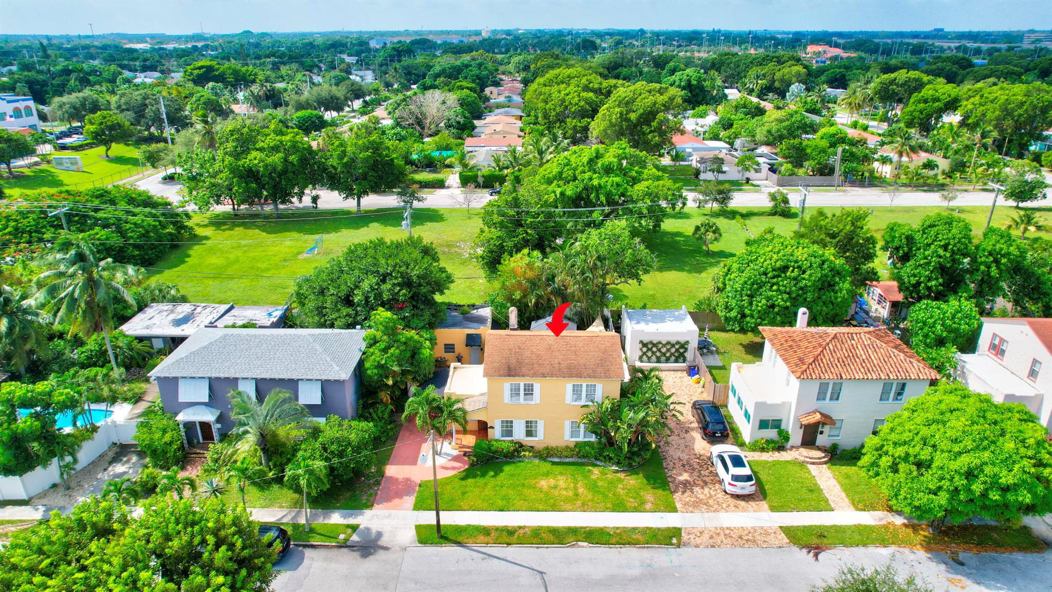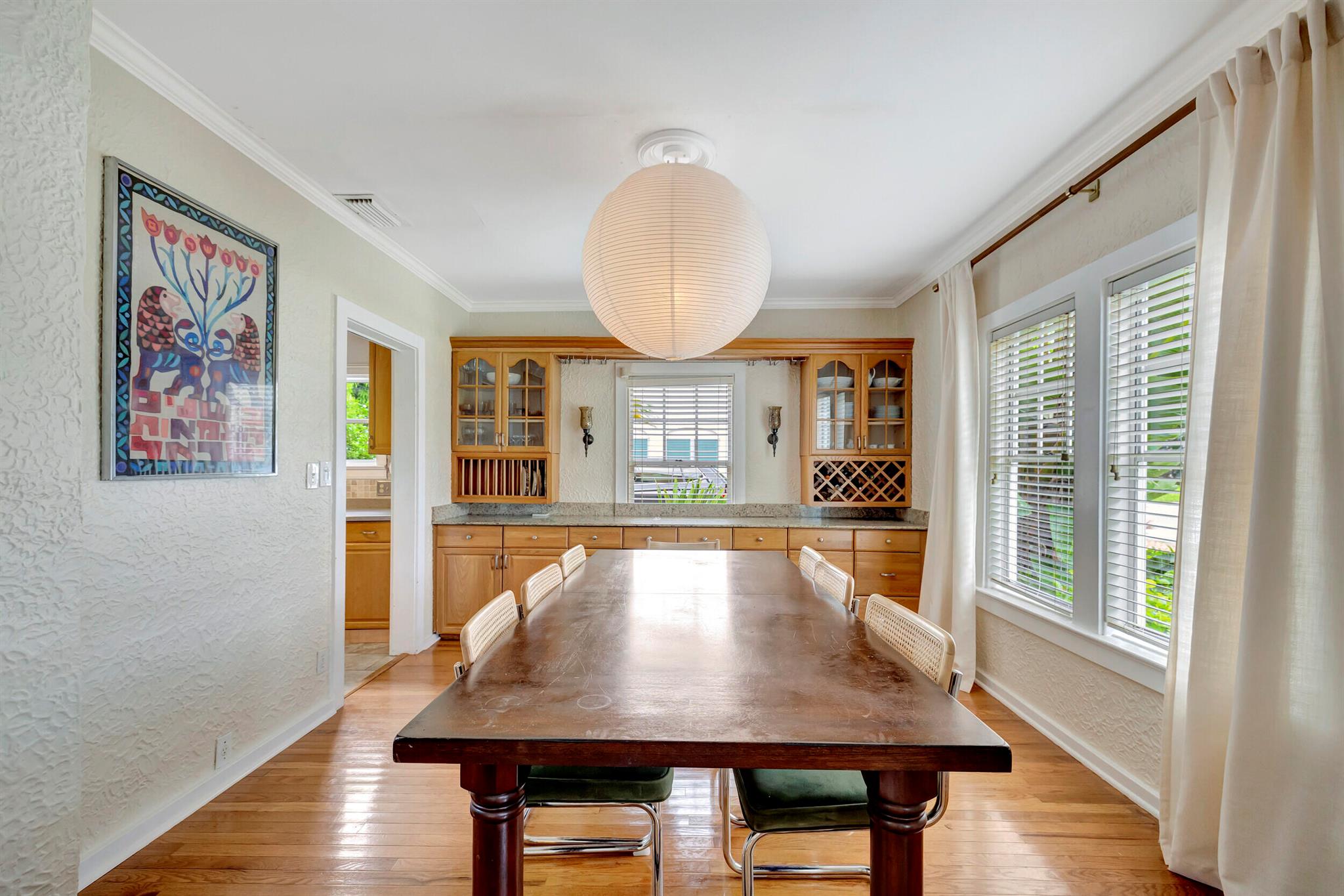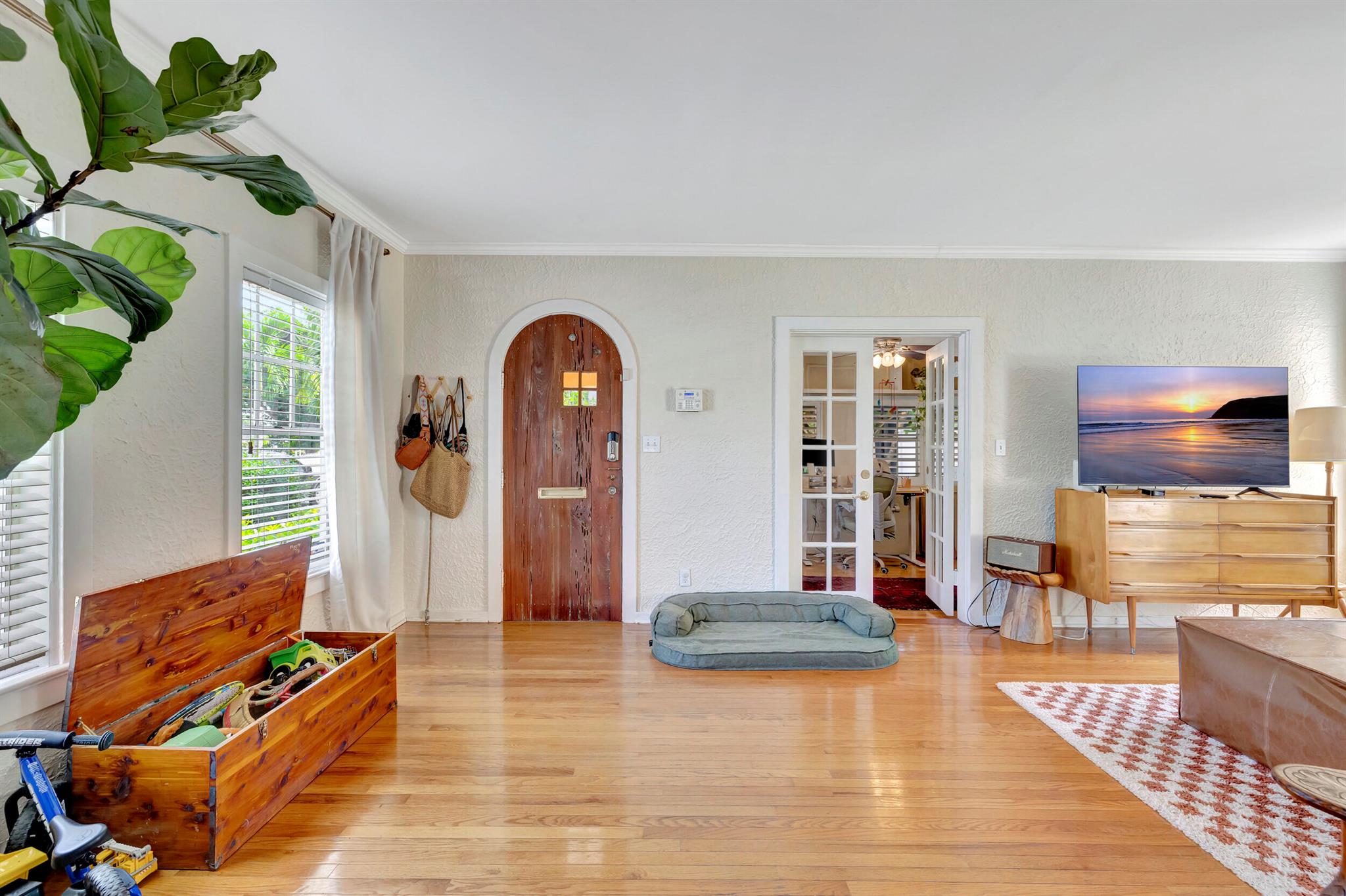 Welcome to a Spanish-inspired sanctuary nestled in the heart of West Palm Beach. This enchanting two-story home captures the essence of timeless elegance, blending the allure of classic architecture with modern comforts. With 3 bedrooms, 2 baths, and a host of remarkable features, this residence offers a truly exceptional living experience. From the moment you approach, the distinctive Spanish design draws you in through arched entryways and intricate detailing showcasing the craftsmanship that defines this home. Step inside to discover a world of warmth and sophistication, where hardwood floors grace both levels, adding an inviting touch to every room.The main living spaces effortlessly flow from one to the next, creating an open and airy atmosphere. The living room has a stone