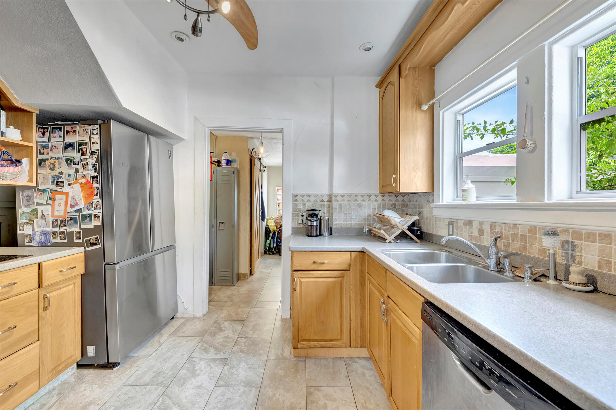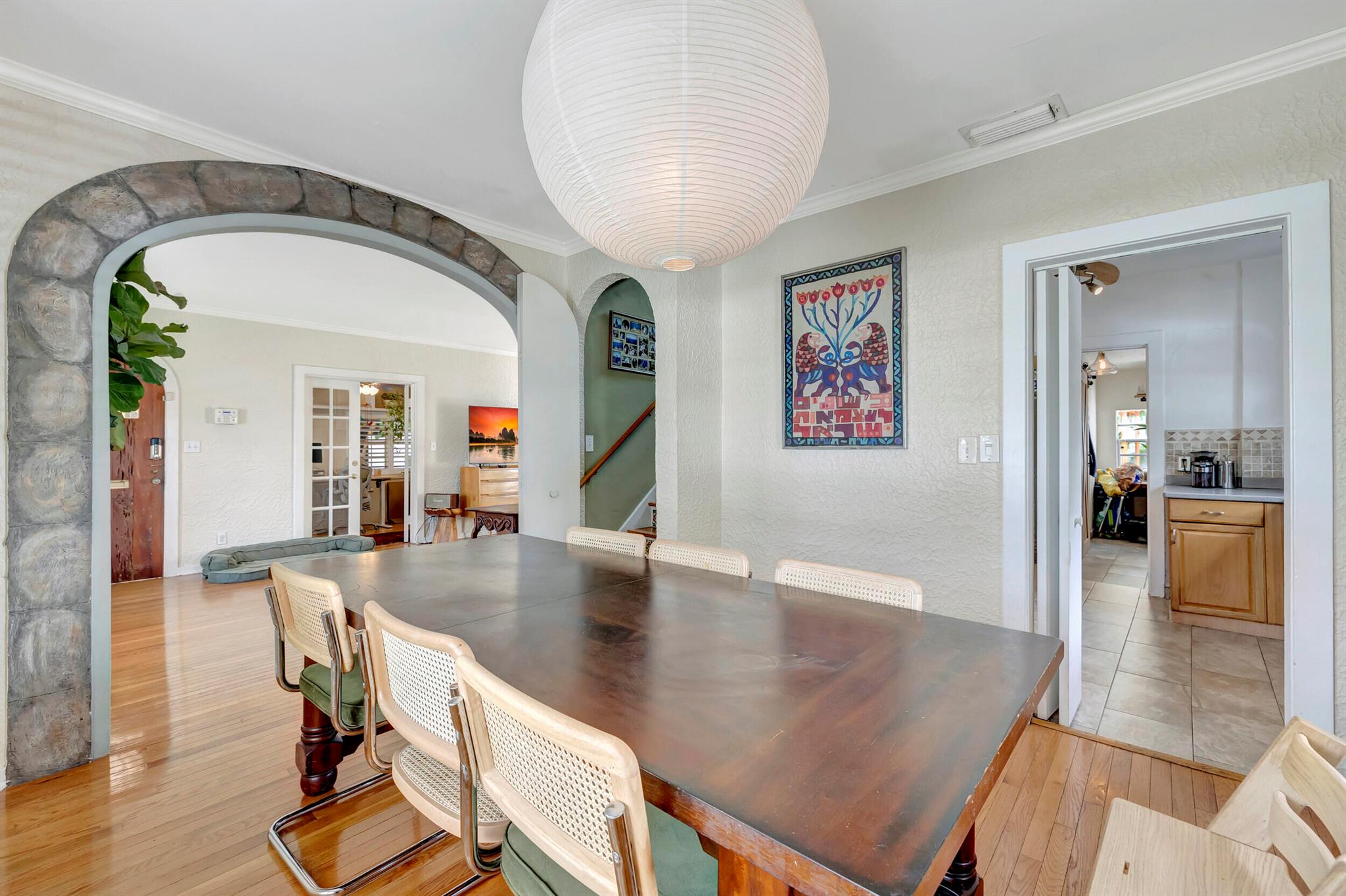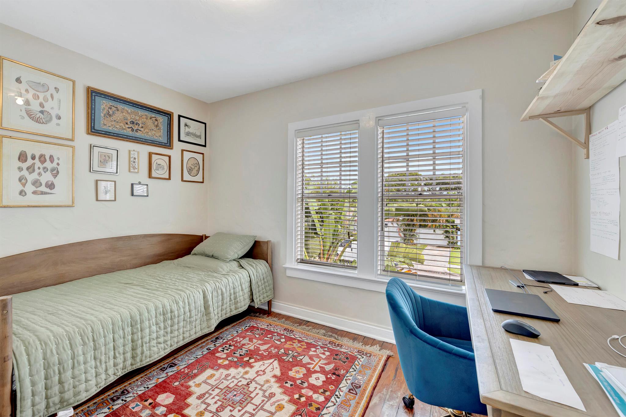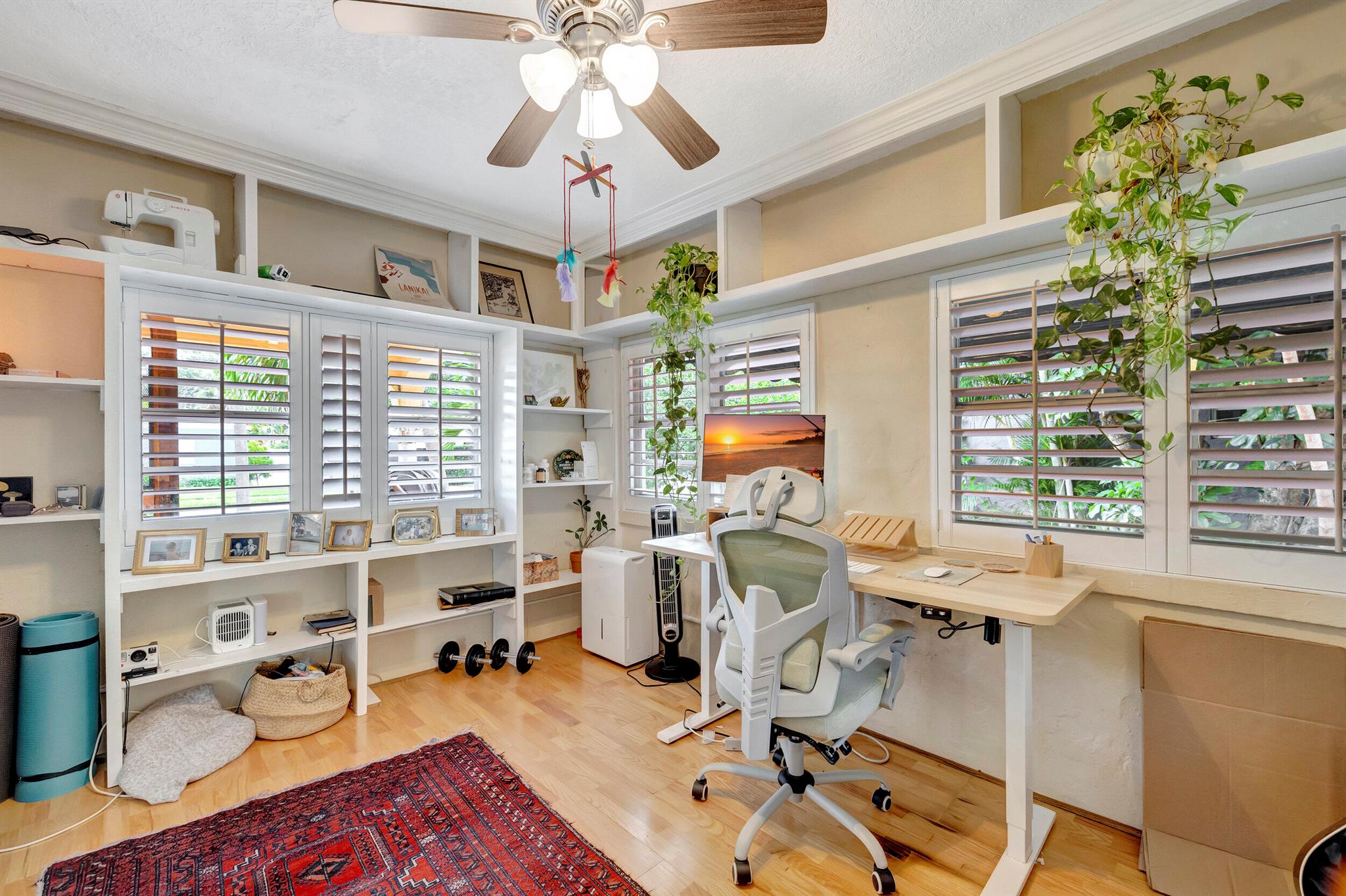 Welcome to a Spanish-inspired sanctuary nestled in the heart of West Palm Beach. This enchanting two-story home captures the essence of timeless elegance, blending the allure of classic architecture with modern comforts. With 3 bedrooms, 2 baths, and a host of remarkable features, this residence offers a truly exceptional living experience. From the moment you approach, the distinctive Spanish design draws you in through arched entryways and intricate detailing showcasing the craftsmanship that defines this home. Step inside to discover a world of warmth and sophistication, where hardwood floors grace both levels, adding an inviting touch to every room.The main living spaces effortlessly flow from one to the next, creating an open and airy atmosphere. The living room has a stone