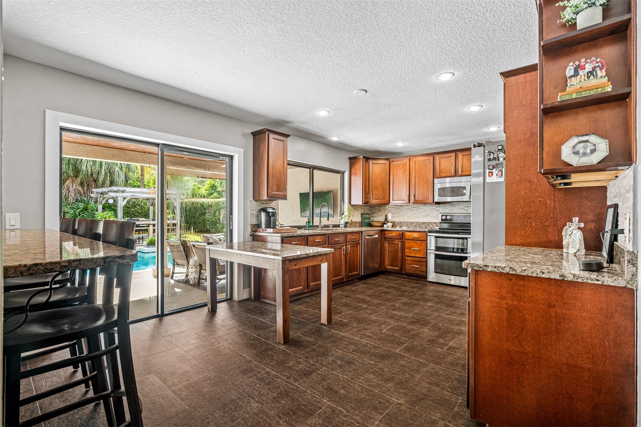 Welcome to your dream home! Nestled in a PRIME LOCATION, this exquisite 5-bed/2-bath features: Spacious 2-Car garage. High ceilings. Inviting living space. Kitchen with granite countertops and plenty of space for meal prep, Window overlooking the pool with a breathtaking view that's sure to inspire your culinary creations or to keep an eye on the kids. Charming custom home bar. Master bedroom with walk-in closet, double sink, a tub & separate shower, side door conveniently opens up to the pool area allowing you to step out for a refreshing dip or unwind poolside. Spacious bedrooms. Guest bath with double sink & relaxing bathtub. Plenty of space for an office. Pool area entices with its irresistible charm, pergola & more. NO HOA, A rated schools, Schedule a showing today.