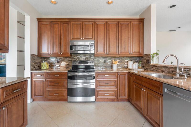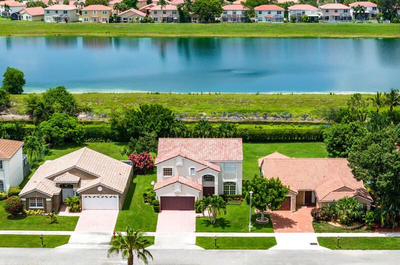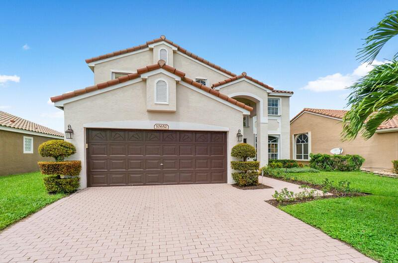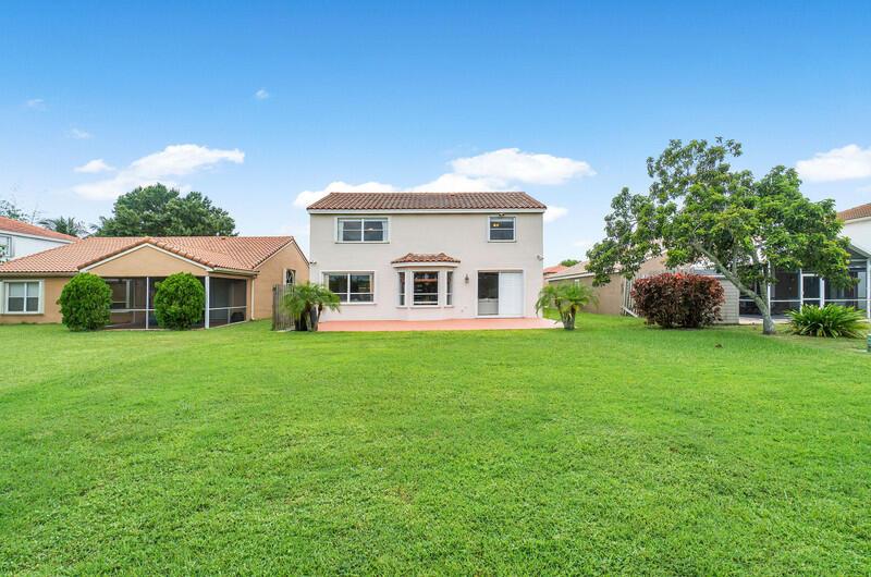 Beautiful and spacious 4 bedroom, 2.5 bath, single family home in highly desirable Port Cayman, a subdivision of Lakes at Boca Raton. This home with a freshly painted exterior features a remodeled kitchen w/ wood cabinets, granite countertops, & stainless steel appliances. The first floor features a separate living room, family room, dining room and half bath. Upstairs has four spacious bedrooms & two full baths, including a remodeled guest bathroom. Huge patio & backyard makes this home a great house for entertaining. Add'l upgrades include crown molding, newer a/c unit, new washer and dryer, & accordion shutters. Large paved outdoor patio with a huge open common greenspace area behind. Beautiful pool, BBQ & clubhouse within walking distance from house. Zoned for A rated schools.