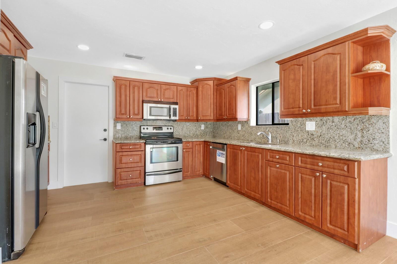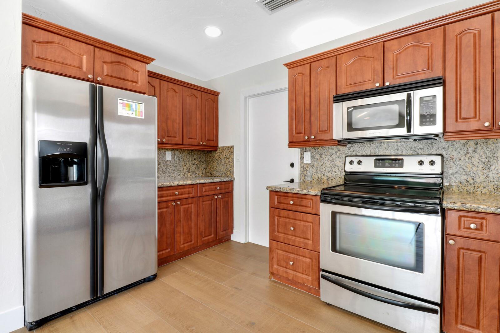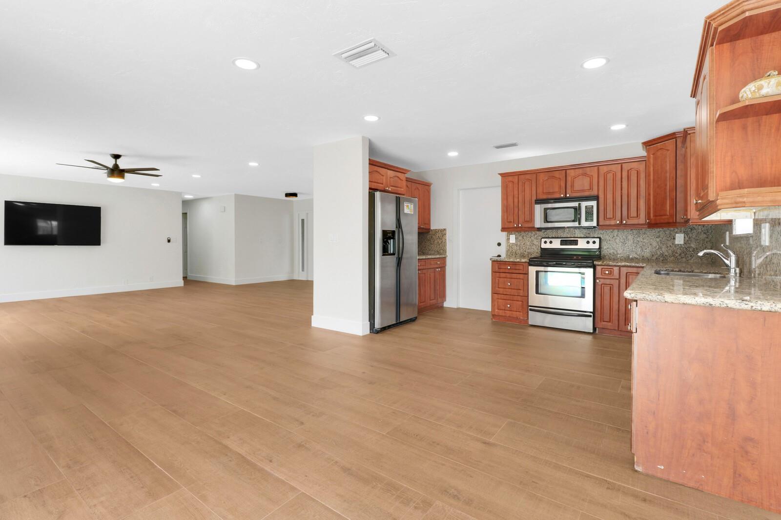 Welcome home! This rarely available Pine Lake 3-bedroom, 2-bathroom beauty has been substantially remodeled! Stunning new wood look tile floors and completely remodeled bathrooms are just the beginning of the incredible features of this home. The open floor plan and sliders out to the pool make this house bright and inviting. Enjoy the best of south Florida living in your tropical back yard complete with an in-ground pool. Don't forget the 2-car garage, accordion shutters and whole house Generac generator! Notice the great curb appeal, with the newly painted exterior, double front doors and manicured lawn from the moment you pull up. No HOA. This house is truly move-in ready and will not last!