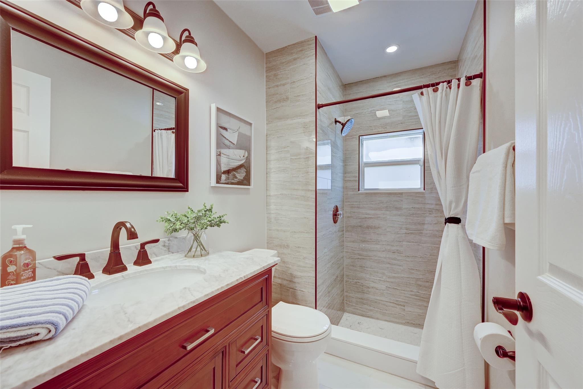 With full price offer, Seller will credit buyer $5,000 towards closing costs. Built in 1989 & COMPLETELY remodeled in 2022. This 3/3 pool home is east of US1 & only 1.5 miles from the ocean. The homes features; Heated Saltwater Pool & Spa with water features, Full Impact windows/doors/sliders/garage doors, 2 car oversized garage. HVAC is 2017. THE UPDATED FEATURES REMODELED IN 2022 ARE AS FOLLOWS: New roof & Fascia Boards. New gutters. New Tile floor Throughout. All New Baths. New Water Heater. New Paint Exterior & Interior. New LED Pool & Spa Light. New Hayward Pool Salt System. New Hardwood kitchen cabinets w/soft-close doors & Brazilian granite. New Frigidaire appliances. New washer/dryer. New ceiling fans. New landscape lights. New sprinkler timer. New Ring floodlights w/cameras