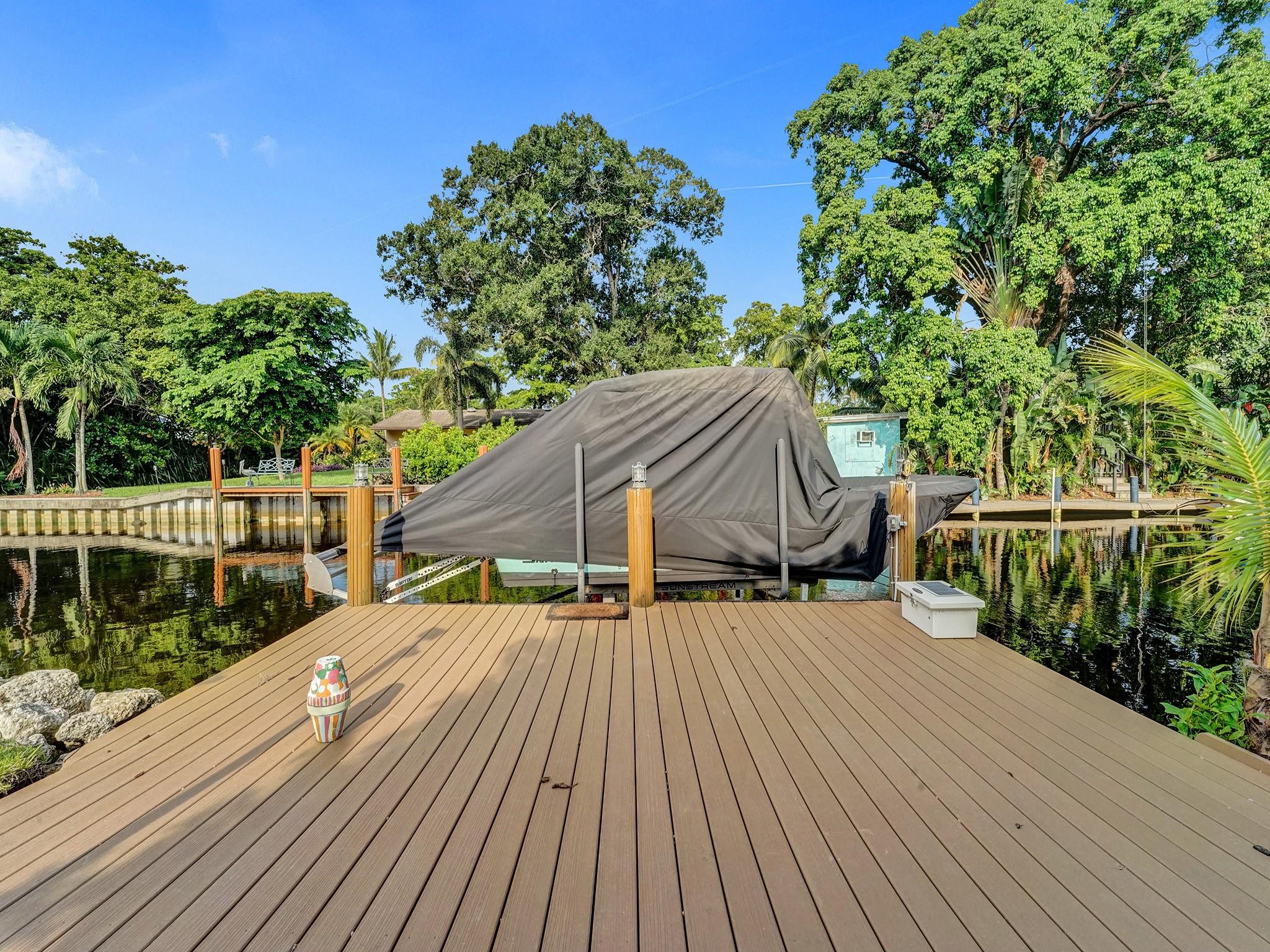 TOTALLY RENOVATED PRIVATE, TROPICAL, DOUBLE POINT LOT WATERFRONT HOME LOCATED IN CUL DE SAC W/ 215 FEET ON WATER.....NEW BOAT LIFT.....SALT WATER HEATED POOL....OCEAN ACCESS W/ 1 LOW FIXED BRIDGE W/ 6 FT CLEARANCE.....TOP OF THE LINE KITCHEN W/ 13 Ft QUARTZ CENTER COOK TOP ISLAND W/ SEATING FOR 8, BOSH & FRIGIDAIRE APPLIANCES OPENING TO LIVING ROOM.....HI HAT LIGHTING & WIDE PLANTATION SHUTTERS THRU-OUT, LG FAMILY ROOM & BONUS ROOM FOR OFFICE.....STUNNING OVERSIZED MASTER BATH W/ QUARTZ COUNTERTOPS & DOUBLE SINKS, TOUCH LITE MIRROR, HUGE SHOWER W/ DECORATIVE WAVE TILE & GLASS TILE INSERTS, DUAL SHOWER HEADS & H20 WANDS......ALL NEW 24 KW WHOLE HOUSE GENERATOR, RETRACTABLE AWNING, SOLAR PANELS & SOLAR HOT WATER HEATER....SOLID WOOD FRONT DOOR & 2 CAR GARAGE DOOR ARE NOT IMPACT RATED