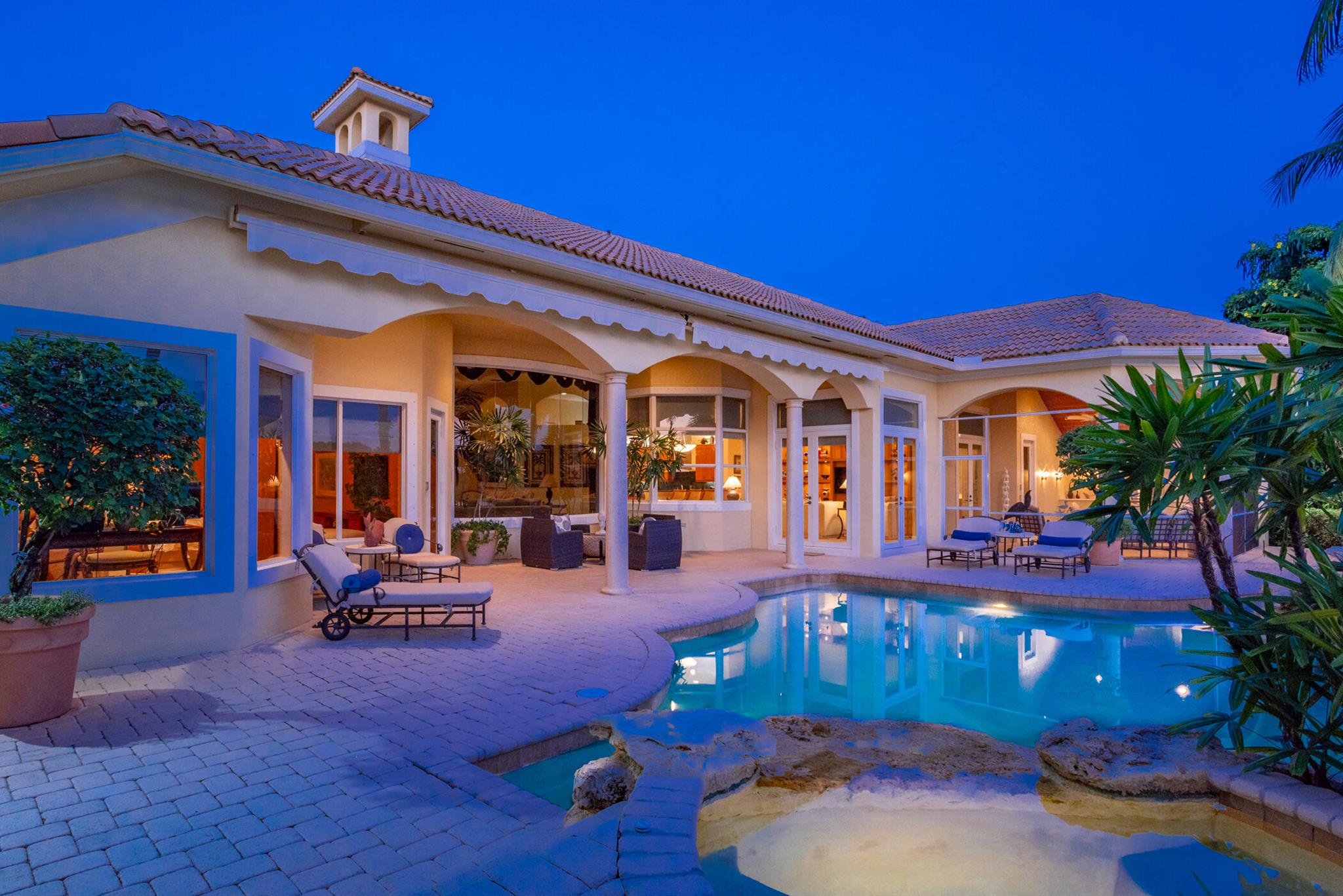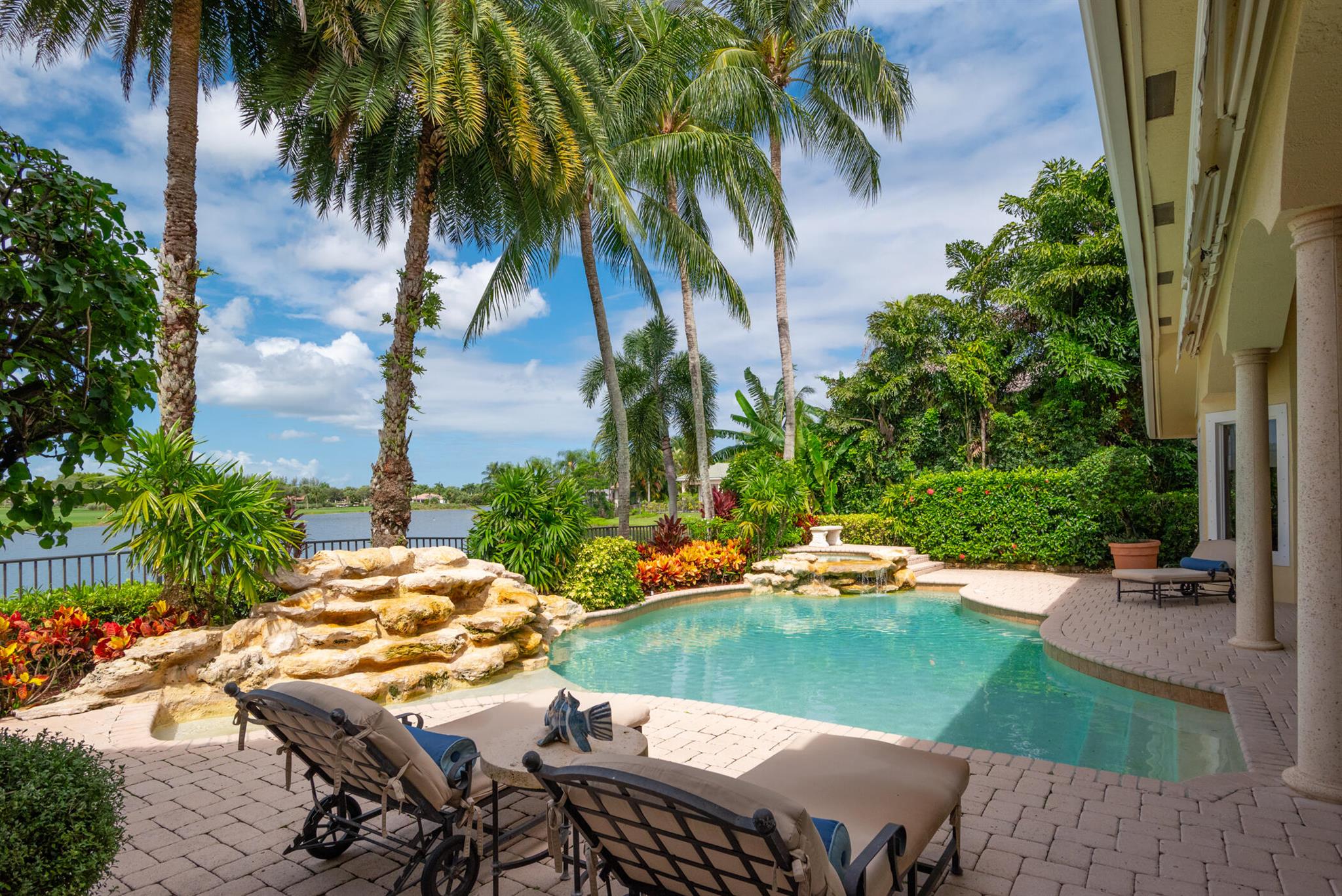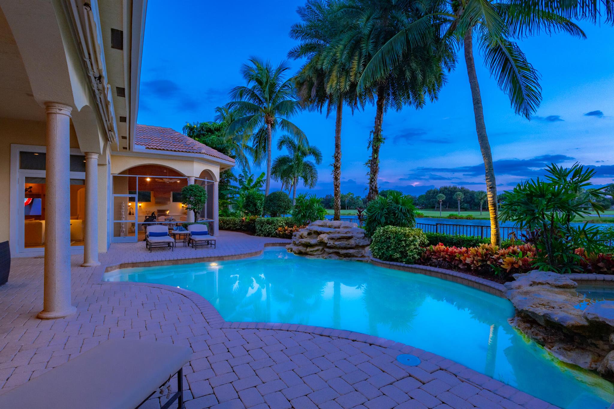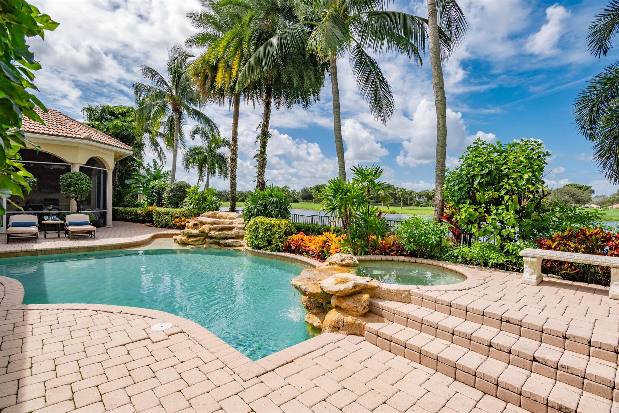 Grand port cochere and beautifully landscaped circular driveway welcome you to this stunning 3BR/3.5BA Plus Den estate home at The Club at Ibis! Spectacular lake and golf views from one of the best lots within the community. This highly upgraded home has top quality finishes throughout including Saturnia marble flooring in the main living areas, top of the line appliances and wood shaker cabinetry in the kitchen, large walk-in closets in each bedroom with California Closet built-ins and a beautiful rock waterfall pool and spa! Easy living, open floor plan inside and incredible sunset views from both the screen enclosed and open patios. Live the dream experience at Ibis with amazing golf, tennis, fitness and pickleball plus four restaurants on site and a very active social calendar!