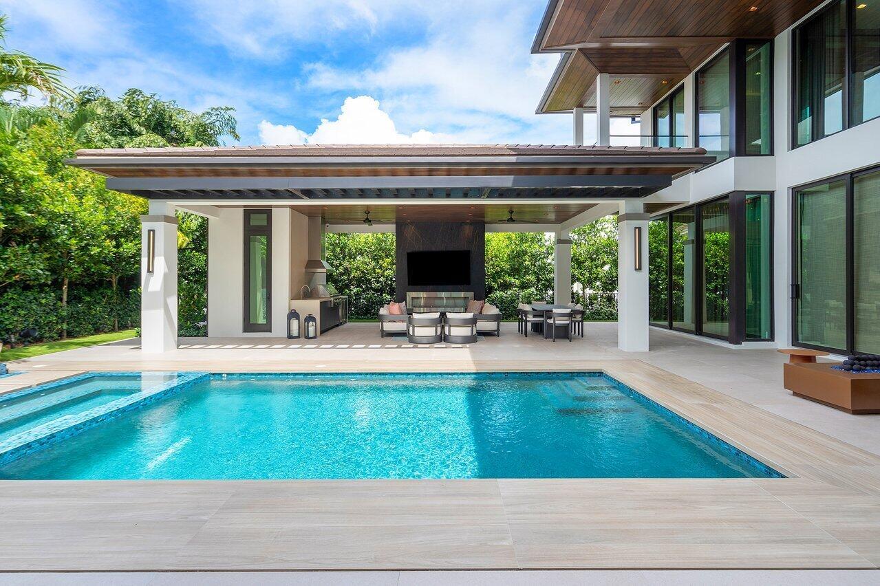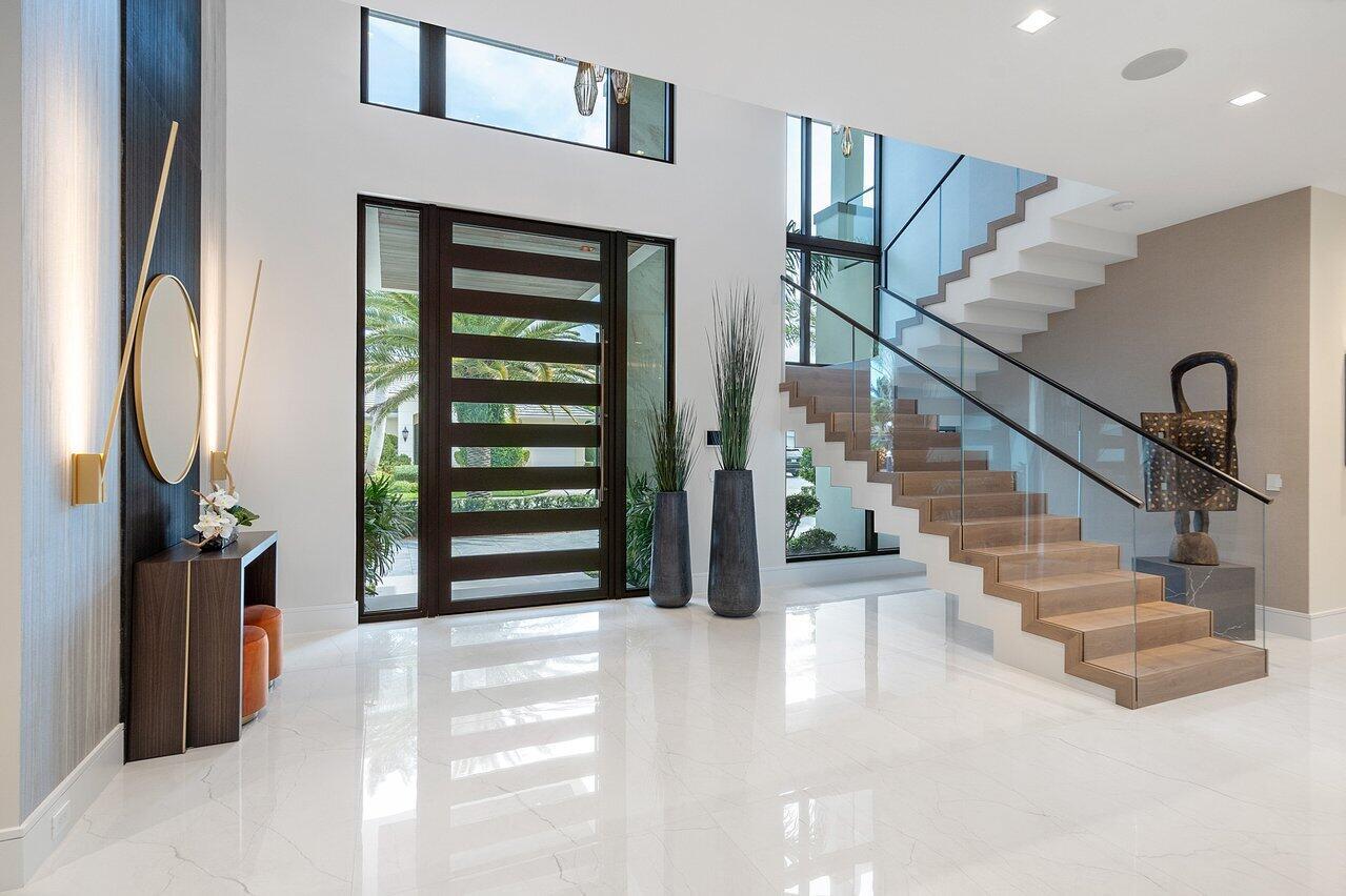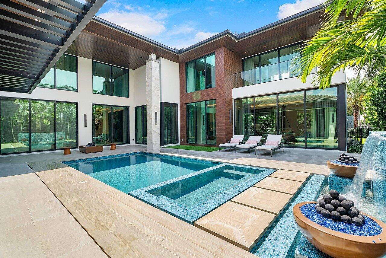 2398 Areca Palm Road | Brand new exquisite custom over-sized interior corner lot in the Prestigious Royal Palm Yacht & Country Club,Boca Raton. Built & designed by Albanese & Sons Builders and BE Design. This estate features 9,960 total sq ft, 6 BD's and 9 BA's. Enter the two-story foyer & great room w/marble floors, fireplace & views of the incredible resort style pool & spa w/ waterfall & custom fire features, summer kitchen, separate cabana bath, & lush landscaping that creates a private & serene getaway like never seen before. The 2 story living room w/ amazing finishes throughout club room w/ wet bar, office,w/access to the 1st floor private guest suite. The 2 way-temperature-controlled wine wall & custom entertaining area leads too the chef's kitchen w/Lit Cristallo Polished Marble