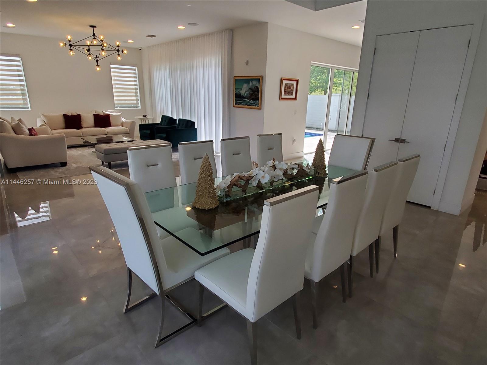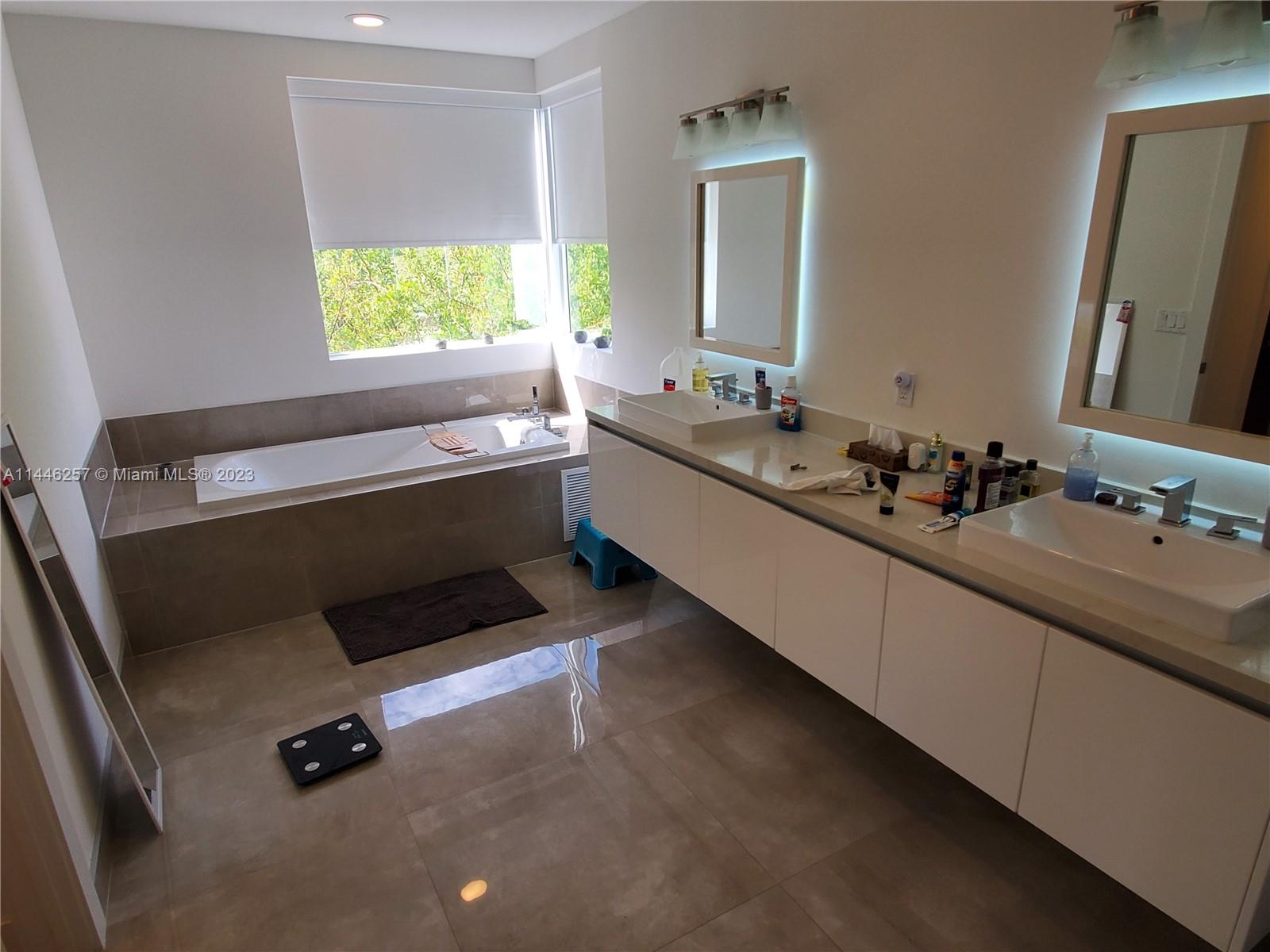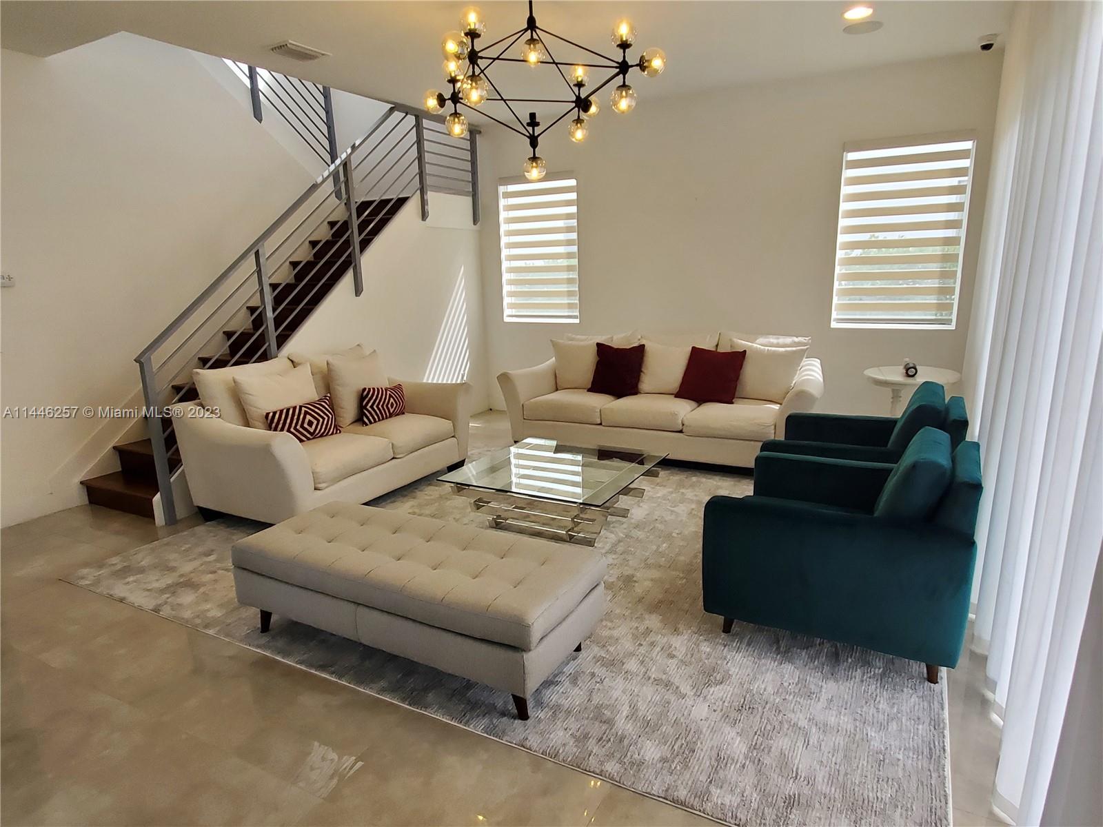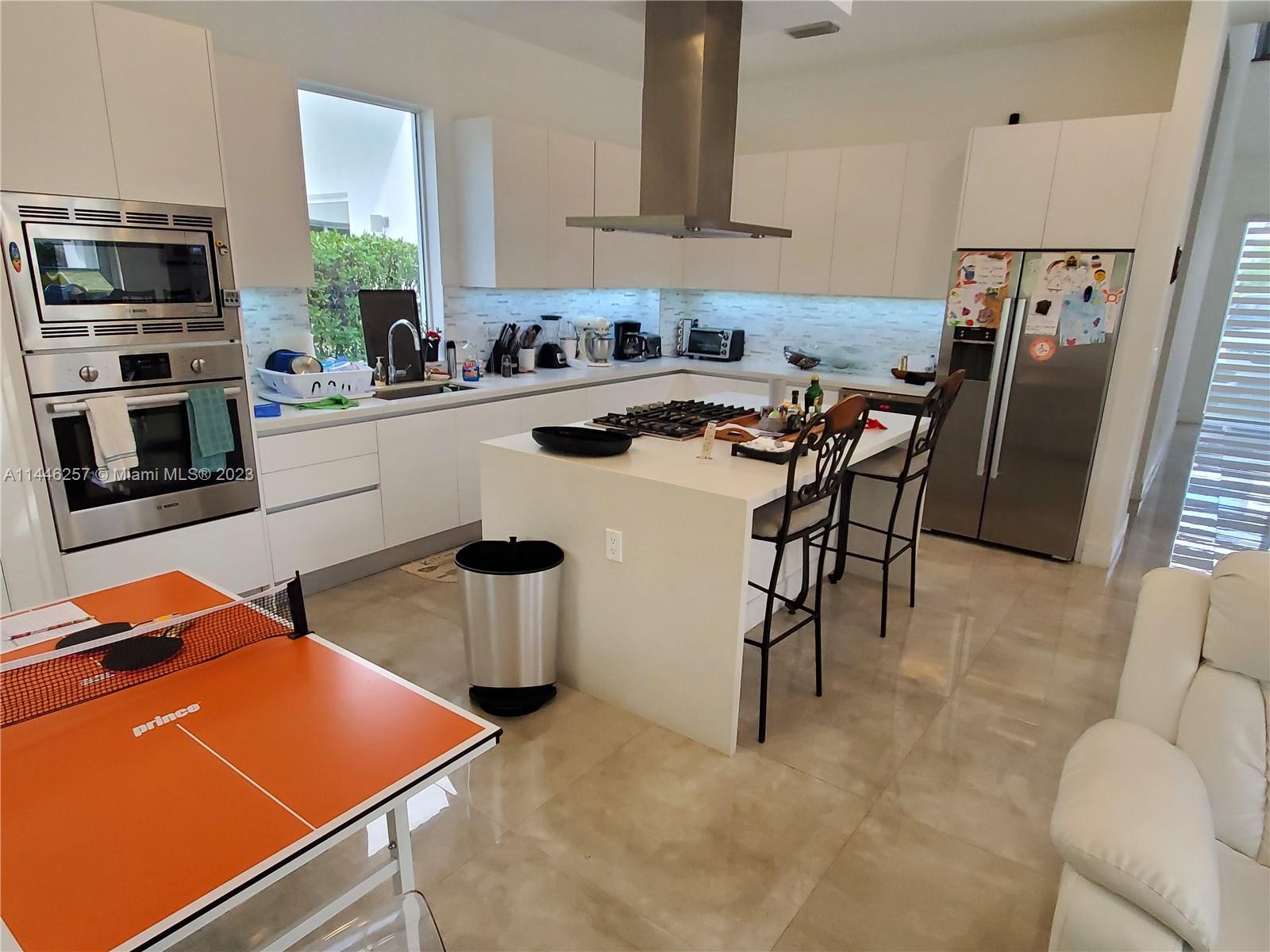 Beautiful Modern furnished 5 bedroom 5 bathroom "Modern Doral 60 B" home with all the excellent features: Carrara quartz countertop, gas stove, dryer, heater & pool heater. Master bathroom with shower rain head valve, 4 wall body spray nozzles, and lighting fixture upgrades. The whole house has a water filtration system with a carbon filter drinking water faucet in the kitchen. The patio offers a pool deck with travertine-honed pavers, a gas outdoor grill with a sink, and a lovely pergola. Creston audio/video system and Sonos. Pool salt water chlorination system. Beautiful flooring on the second floor and big porcelain on the first floor. Nice rubbery garage epoxy floor surface. 1 bedroom downstairs and 4 upstairs. All bedrooms have their respective bathrooms. More than $150k in upgrades.