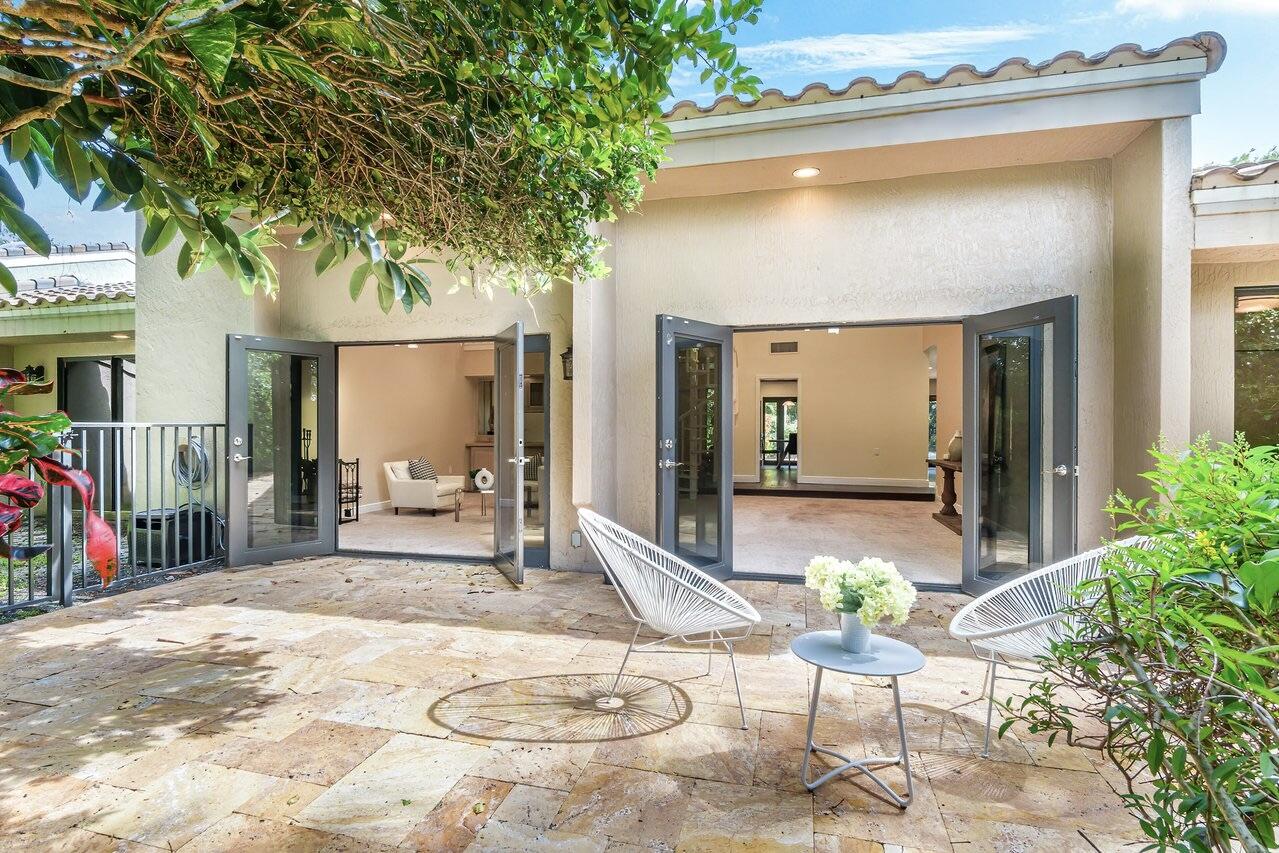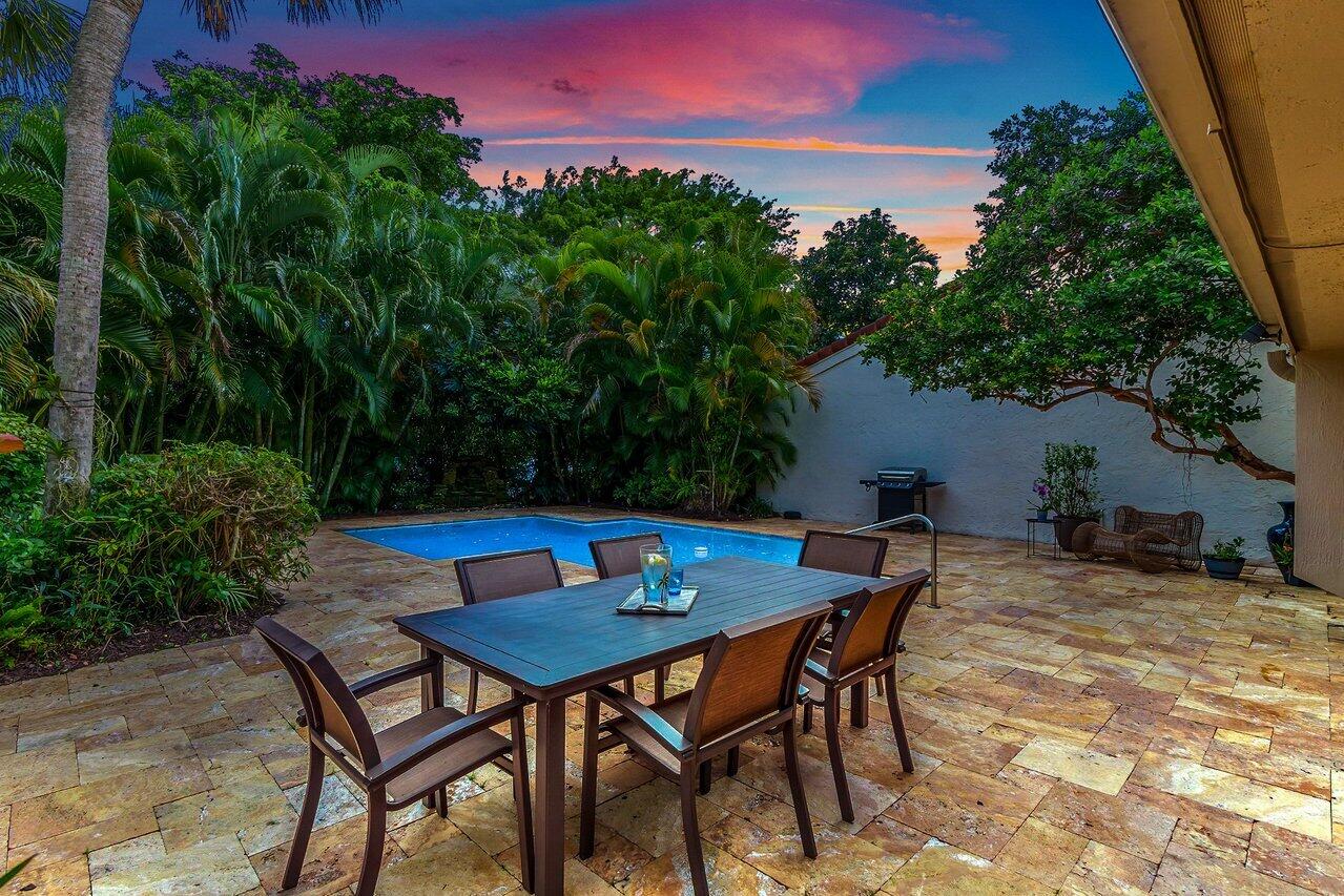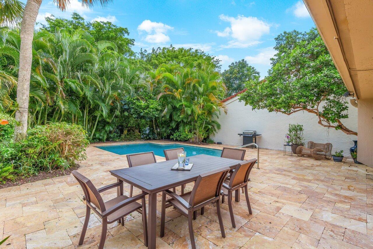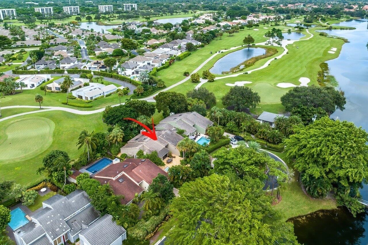 Nestled in the sought-after Cedarwood subdivision of Boca West, this golf-front courtyard pool home is a slice of paradise. A palm tree-lined drive leads to the home, situated on a cul-de-sac. Across the street is a picturesque lake w/ gazebo. The house was thoughtfully designed w/ 2 bdrms plus a den/convertible 3rd bdrm & upstairs loft, dramatic vaulted wood-paneled ceilings, skylights throughout & an abundance of natural light. The true heart of the home is the courtyard pool & lounge area, a tropical oasis wrapped in lush 30+ ft tall hedges, ensuring absolute seclusion & luxury. The idyllic blend of indoor/outdoor living is epitomized by the open kitchen/den, which seamlessly leads to the pool area. Renovations in 2016 include a new roof, patio around pool, bathrooms, and more.