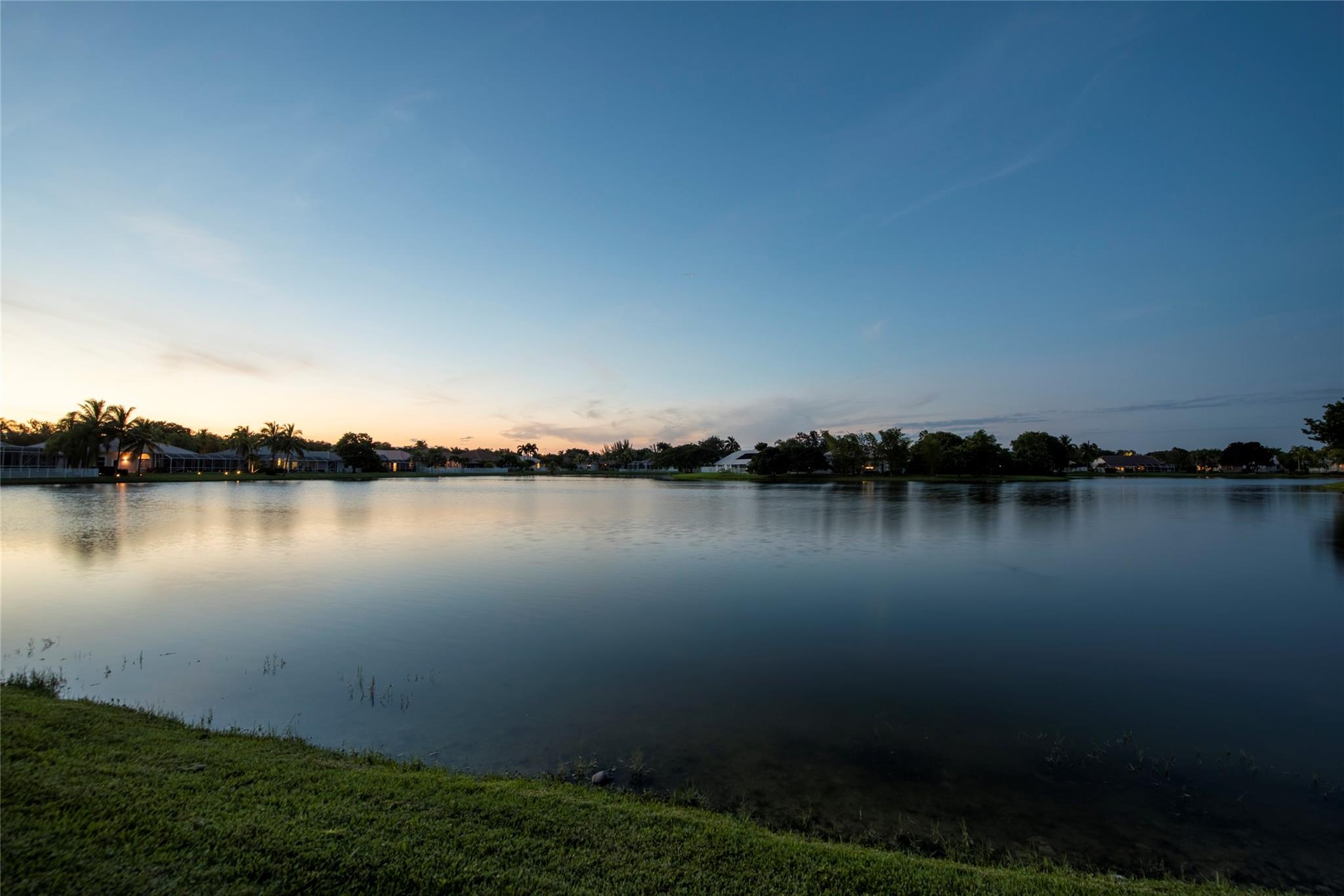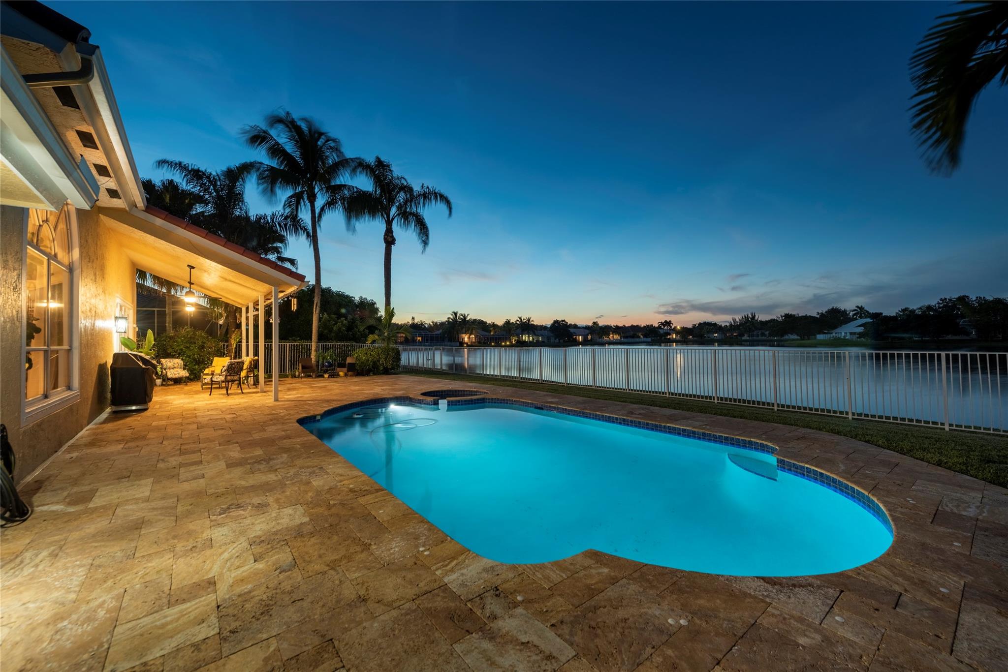 Beautiful 2-story lakefront home WITH PRIMARY BEDROOM SUITE DOWN...NEW ROOF IN 2023. This 5-bedroom, 4-bath, 3-car, Catalina model is rarely available. Large family & living rooms. Stunning, upgraded hardwood kitchen, stainless appliances w/double ovens, granite countertops & cooking island highlight this chef's delight. An executive office (or additional bed) downstairs & a full cabana bath adds versatility to this wonderful model. The split-level upstairs features 3 additional bedrooms, 2 more full baths & a study-loft, making for a perfect kid's retreat. All this coupled with an expansive fenced backyard & lakeside pool/spa. Premium gated community with all "A" schools.