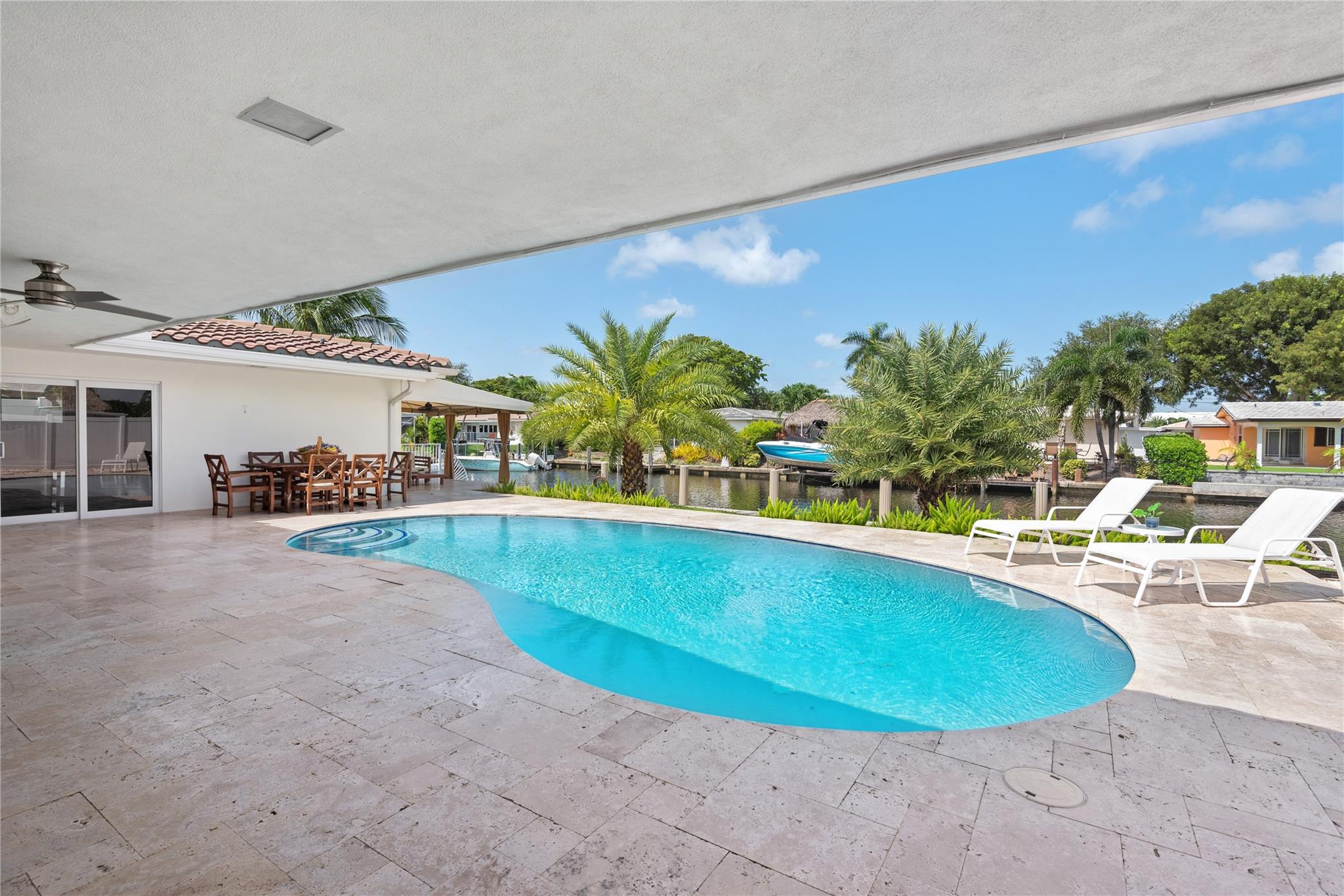 "WATERRONT BEAUTY IN IMPERIAL POINT!" PRIVATE DOCK WITH OCEAN ACCESS** OVER 2300 SQ FT ** 3 BEROOM 3 BATH* 2 CAR GARAGE * REMODELLED RESORT STLYE POOL/PATIO AREA WITH OUTDOOR KITCHEN *DESIGNER TILE FLOORS* LUXURY KITCHEN WITH LARGE EAT-IN AREA, SNACK BAR ,GRANITE COUNTERTOPS,CUSTOM CABINETS ** NEW AC * NEW UNDERGROUND PIPES* NEW COMPOSITE DOCK *SEAWALL REPAIRED **IMPACT WINDOWS & DOORS*INSIDE LAUNDRYROOM*PLANTATION SHUTTERS**WAIT TILL YOU SEE THE EXTRA LARGE WALK IN MASTER BEDROOM CLOSET ! OPEN CONCEPT LIVING ** CUL-DU SAC STREET *2 MILES TO BEACH ** SIDEWALKS** NEIGHBORHOOD PARK !! SEE VIRTUAL TOUR~