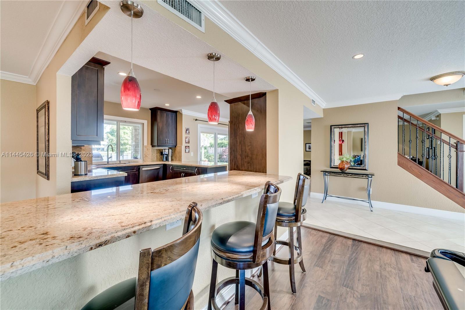 Welcome to Crossbow's most STUNNING Property! This 4 Bedroom 2.5 Bathroom 2 Story house has everything you could possibly want! INTERIOR FEATURES: Diagonal Tile & Wood 1st Floors•CUSTOM Granite & Stainless Kitchen w/OPEN Views to Sunken Living Room•Crowned Cabinets w/soft Close & Pot/Pan Drawers•Pass through to Outside Kitchen•LOADS of Recessed Lighting•Updated & Upgraded Bathroom Tiles/Vanities/Plumbing/Mirrors•6' Baseboards•Crown Moldings Throughout•Upstairs Bedrooms w/Wood Floors/Crown/6" Base•CUSTOM Master Suite w/Balcony Overlooking HUGE Lake/Tiki/Fenced CUSTOM Pavered YardMEXTERIOR FEATURES: IMPACT WINDOWS&DOORS•HUGE Tiki Hut w/TV & Electric•Fire Pit•Custom & Extensive Paver Work and Mortared Landscape Borders•Circular Drive•Gutters•Outside Shower•Tongue&Groove Covered Patio + MORE!