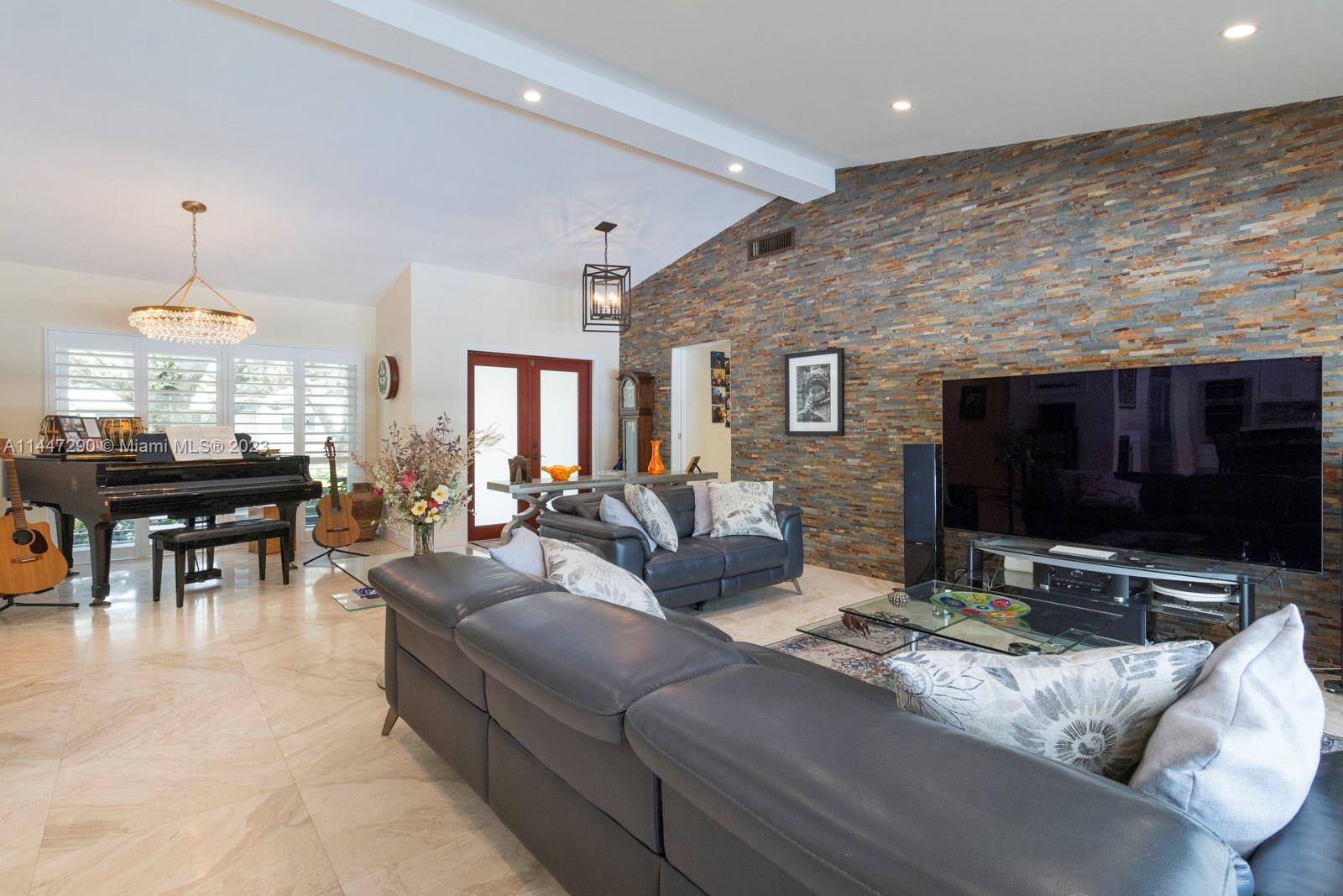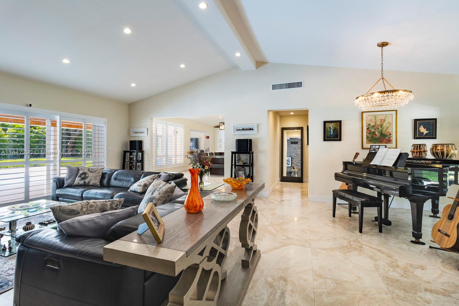 This very special central Pinecrest 4/3 family home is a top-of-the-line remodel with expensive exquisite finishes, excellent taste, and a practical well thought-out floor plan. All work fully permitted and approved and customized within the last 10 years including: metal roof, CGI impact glass windows and doors, marble and porcelain floors, vaulted ceilings in great room, plantation shutters, large laundry room and more. Gorgeous large kitchen w/Wolf & Subzero appliances, Cambria quartz, and tons of cabinetry and storage. Beautiful new bathrooms including a master bathroom fit for the most discerning buyer. Fully rebuilt pool-patio area with special non-slippery Ivory Pearl marble floors (that do not get hot in the sunshine!) and plenty of yard space too. All Pinecrest schools.