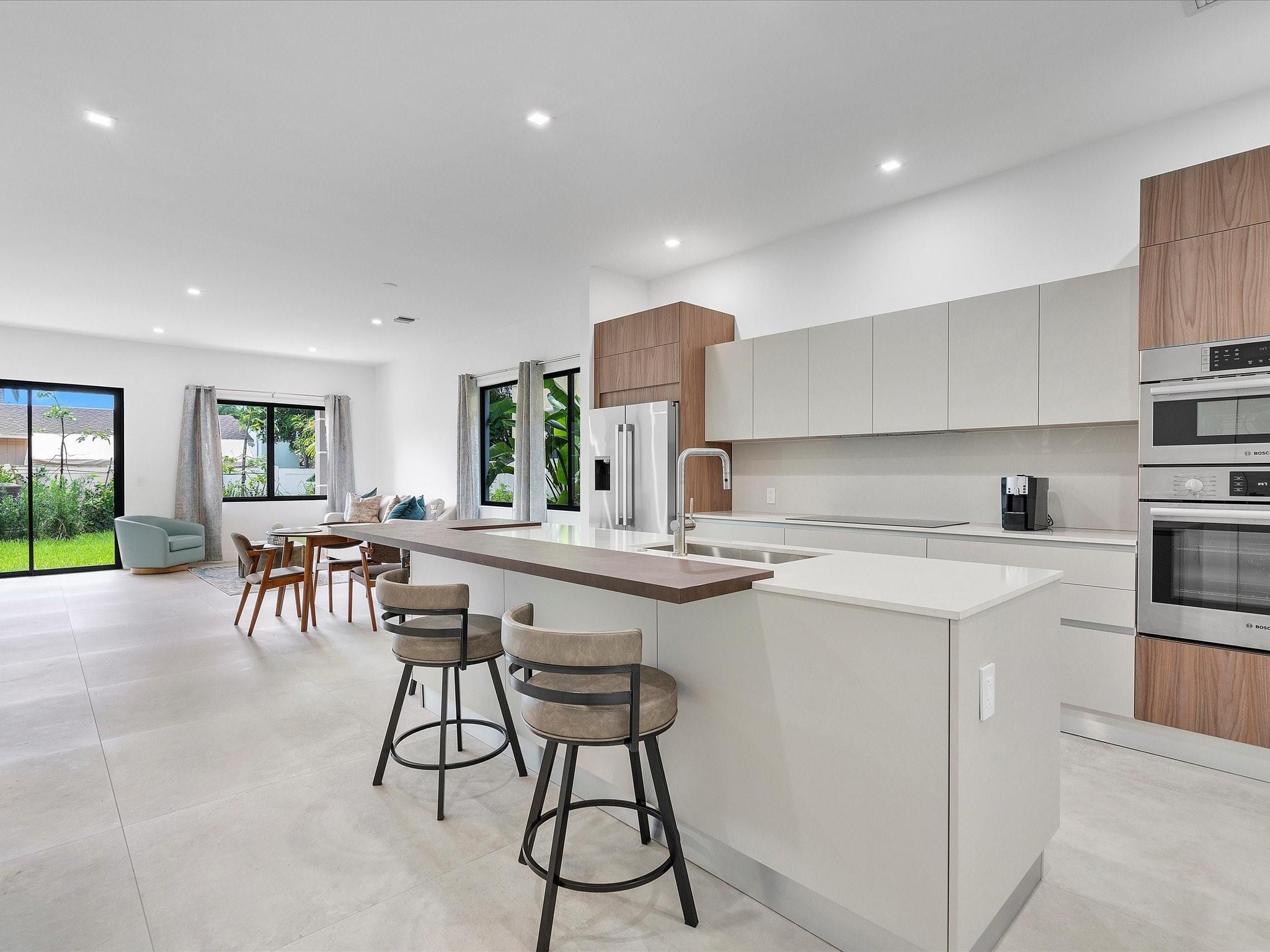 New Construction End-Unit 3 Bedroom 4 Bath Plus Office/Den Townhouse in Tarpon River. Sellers never moved in so everything is brand new! Features ensuite in every bedroom, rectified porcelain tile, open floor plan & full bath on the 1st level. The kitchen is custom designed by Scavolini w/quartz countertops, Bosch appliances & pantry. Primary Suite has room for a seating area, a large covered patio & two closets. Each bathroom has floating cabinets & rainfall showers tiled to the ceiling. Enjoy the outdoors on one of the balconies, covered patio or spacious backyard that has room for a pool. Tarpon River, named one of Florida's Best Neighborhoods with restaurants, coffee shops & lots of parks. Here you're only minutes to the beach, Las Olas, Downtown, the airport shopping & more! No HOA