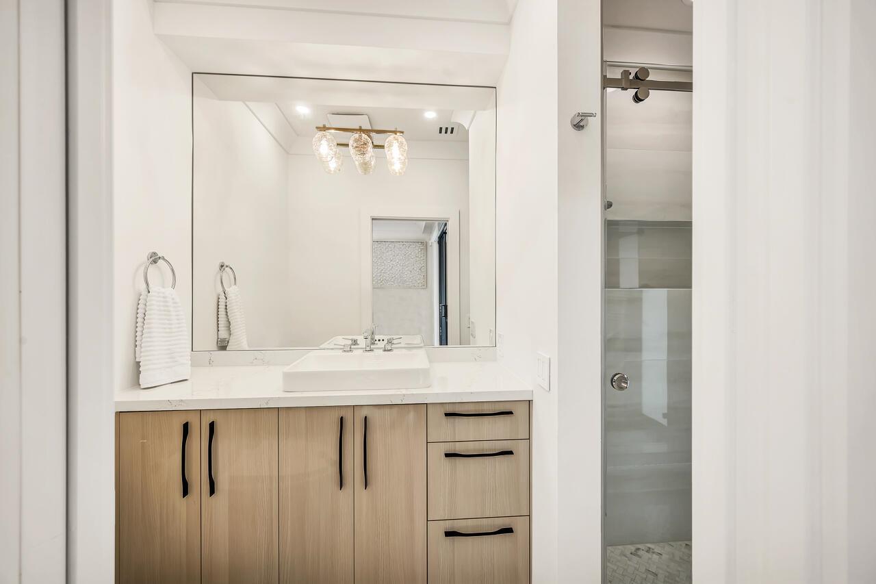 Spectacular remodeled home in the desirable development, the Colonnade. This 4 bed 4.5 bath home offers a modern lifestyle that exceeds all expectations. Sophisticated elegance is within this newly remodeled, contemporary home with 4X4 porcelain tile floors, soaring ceilings, open floor plan & large impact windows that allow for an abundance of natural light. The stylistic chef's kitchen features two-tone custom cabinets, stunning grey quartz counters, sleek center island and plenty of storage space. The luxurious master suite is decorated with tasteful custom builtins, his & her baths & closets, freestanding soaking tub & a rain shower. The picturesque setting outback has tranquil lake views, marble pavers, on a beautiful private lot. This is a masterpiece you won't want to miss