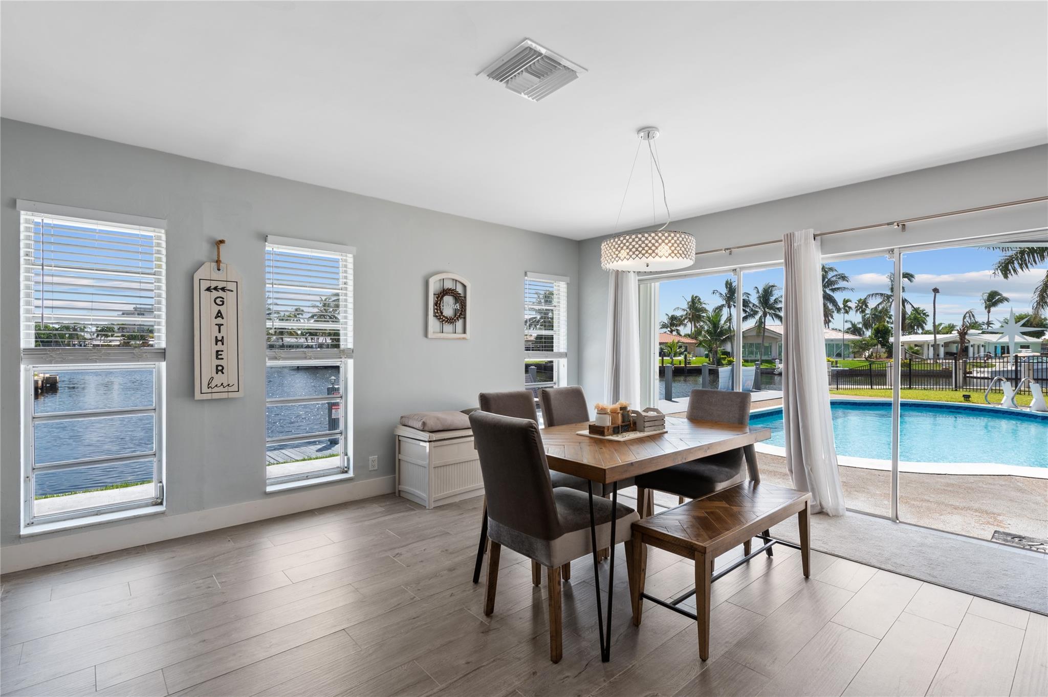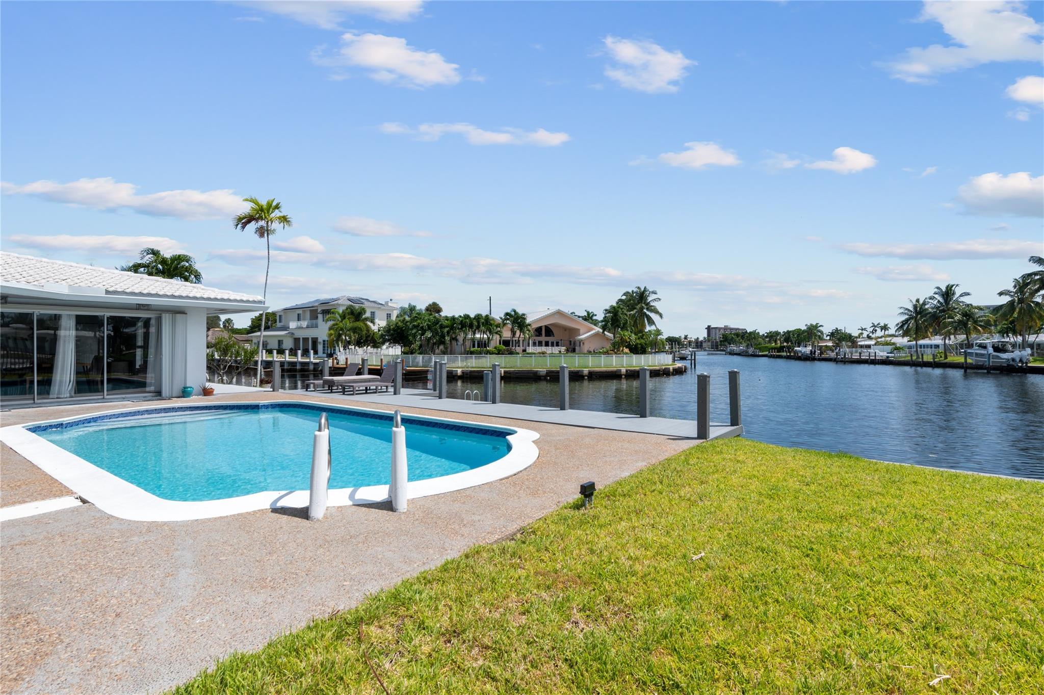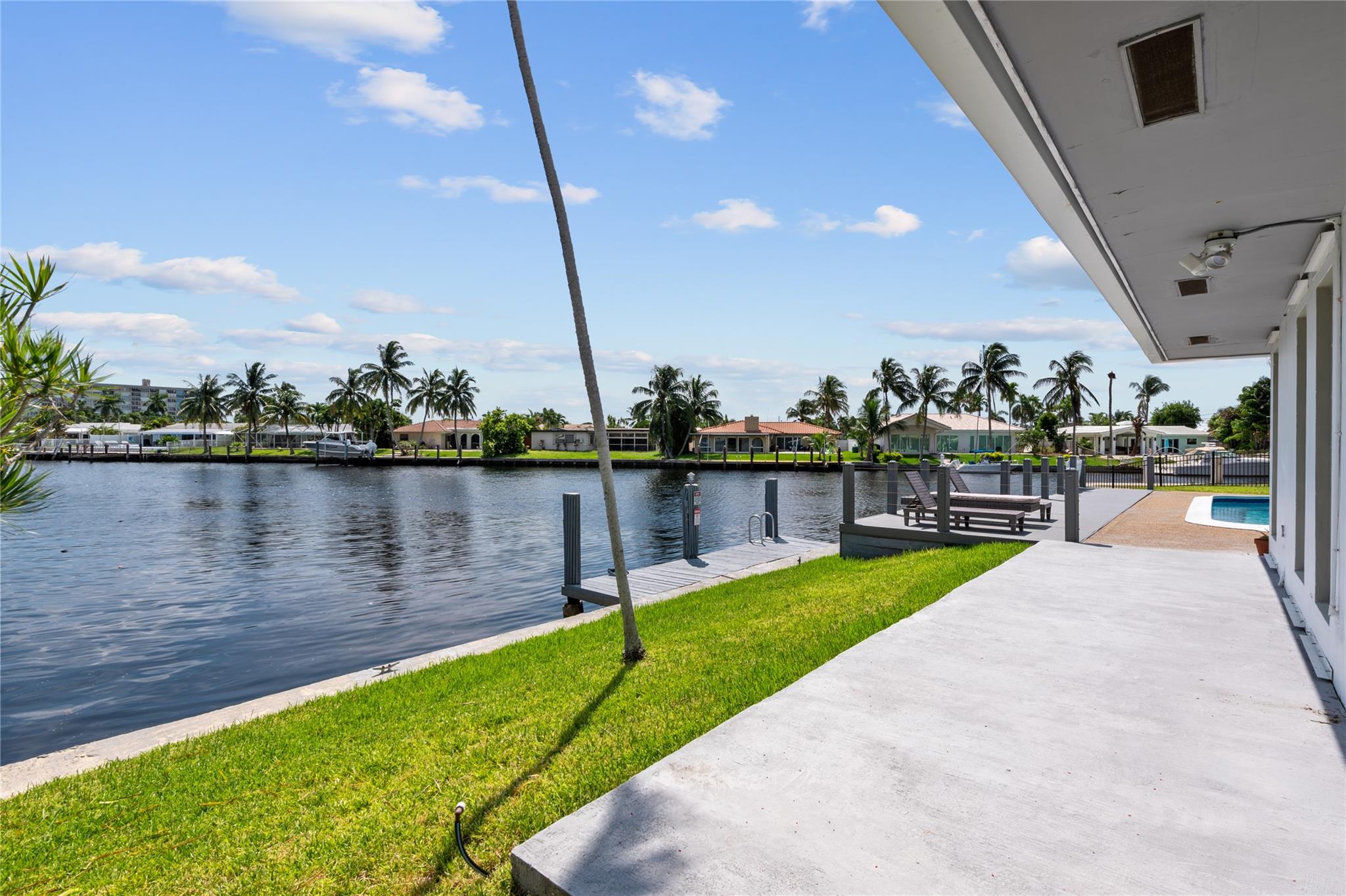 Beautifully updated 3 bedroom, 3 full bathroom waterfront pool home with a 2 car garage located on a wide canal in Cypress Lake Estates. Enjoy 110 feet of waterfrontage with a serene wide water view. This home features an open modern kitchen with quartz countertops, white cabinets, and stainless steel appliances. Roof was replaced in 2020. Electrical, plumbing and AC have all been updated. Newer tile flooring thoughout, bathrooms have been updated with new tile, vanities, lighting and fixtures. Spacious backyard with plenty of green space around the pool area, perfect for entertaining. This home is located on a cul de sac. One fixed bridge at Federal Highway.
